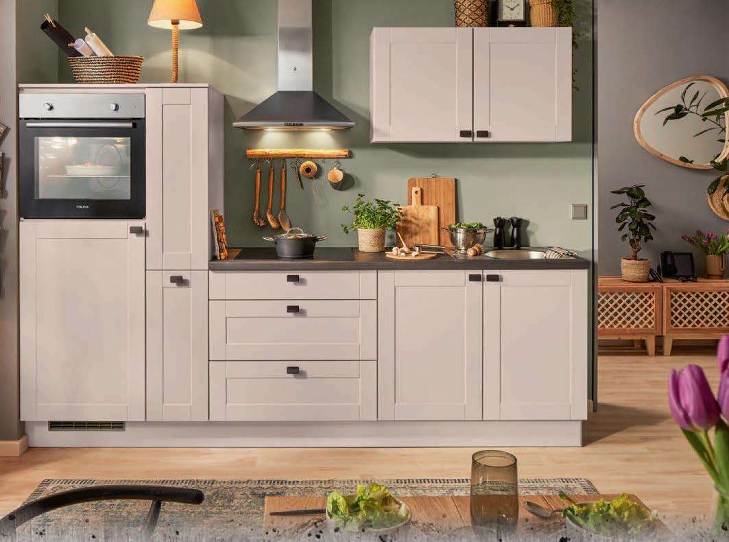 PN435 ca. 270 cm breit, Front/Korpus: Kaschmirgrau, Geräte-Abb.