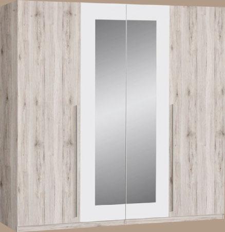 Kleiderschrank 3-türig mit 2 Schubkästen und 1 Spiegel, B/H/T: ca. 139,2 x 200,8 x 59,6 cm