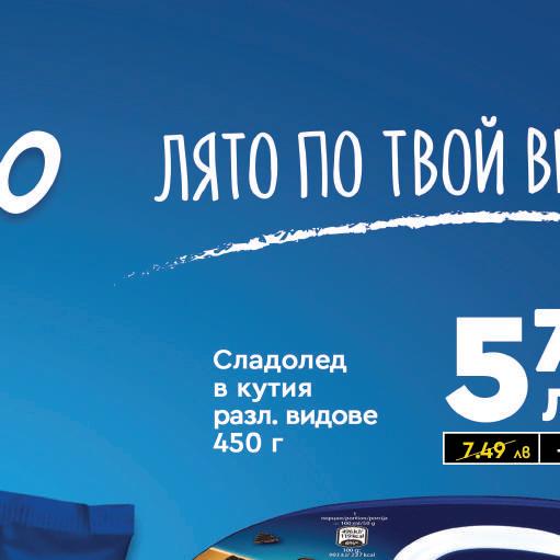 Каталог за период от 26 август до 01 септември 2022 г. www.promarket.bg 399лв 119лвФинШоколадмлечен или с 80лешнициг 1.79 лв -33% 6.49 лв -38% 349лв 279лв 279лв Разтворимо кафе Nescafe Classic 50Nestleг Бонбони 105NestleшоколаддражетаSmartiesсмлеченг 4.29 лв -18% 3.79 лв -25% 3.39 лв -17% 129лв 2.39 лв -45% Шоколад аеро разл. 80Roshenвидовег195BelgianМорскобонбониШоколадовиДъноGourmetг 209лвБисквити Мираж разл. 200Престижвидовег 3.09 лв -32% дражетаШоколадовиPop Choc Lion или Kit Kat Pops 140Nestleг 219лв 2.89 лв -23% Халва 250ЛюбимкаВанилиятахановаилиКакаог 459лв 5.99 лв -23%870UncleилиКакаоСладоледспортокалСтрачителаCharlyмл 569лв 9.29 лв -38% Сладолед Aloma разл. 1Nestleвидовеоп