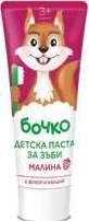 Грижа за дететоwww.remedium.bg БОЧКО Детска паста за зъби ягода, 75 мл Предотвратява развитието на кариес и се грижи за здравето на венците посредством включения флуор. БОЧКО Детска паста за зъби с аромат на дъвка, 75 мл Специалната формула се грижи за ежедневната хигиена на детските зъбки и венци. БОЧКО