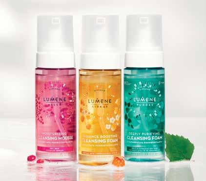 Грижа за лицето www.remedium.bg ЧИСТОТА И СВЕЖЕСТ ОТ АРКТИЧЕСКАТА ПРИРОДА Почистването на кожа е основната стъпка в правилната грижа. Деликатните формули от Lumene са обогатени с натурални съставки от арктическата природа. Ефективно премахват грима и оставят кожата свежа и сияйна. [KIRKAS] ОЗАРЯВАЩА ПОЧИСТВАЩА ПЯНА С ВИТАМИН C За нормална кожа Почиства нежно и ефективно, без да изсушава кожата. Поддържа естествената хидролипидна бариера на кожата и в същото време й придава усещане за чистота, мекота и свежест. [HELLA] ОВЛАЖНЯВАЩА ПОЧИСТВАЩА ПЯНА за суха и нормална кожа Ефективно премахва гримa, замърсяванията и излишния себум. Поддържа водния баланс на кожата и не нарушава естествената защитна бариера на епидермиса. [PUHDAS] ДЪЛБОКО ПОЧИСТВАЩА ПЯНА за мазна и комбинирана кожа Ефективно почиства запушените пори, предотвратявайки появата на черни точки. Премахва излишното омазняване, оставяйки кожата, гладка, матирана, с естествено сияен тен. | 150 мл Произведено във Финландия 17 32 2309