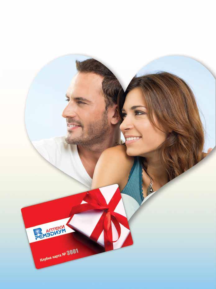 използвате натрупания кредит в картата Ви за лоялност. Това е нашият начин да Ви благодарим, че ни избрахте и се връщате отново при нас. 1 точка = 1 стотинка При всяка покупка точките се калкулират по следния начин: 0.8% от стойността на покупката до достигането на 50 точки; 1.2% от стойността на покупката при над 50 точки. • Клубната карта може да получите от близката до вас аптека Ремедиум, след подаване на попълнен регистрационен формуляр или да я заявите онлайн чрез попълване на формуляр