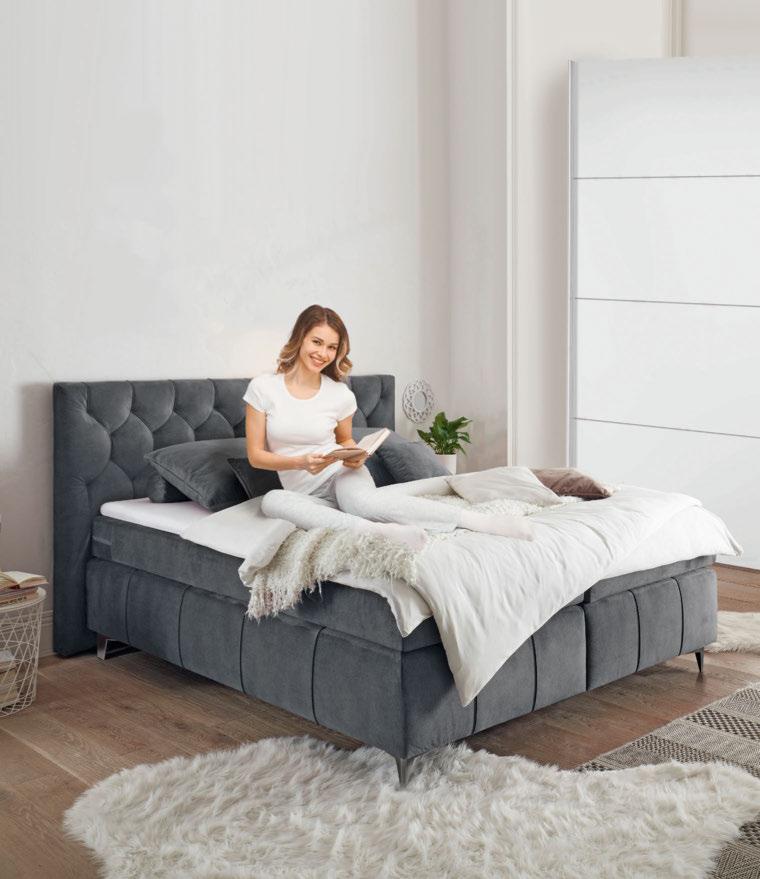 Riesen-Auswahl an Bezugsstoffen, Farben und Zierkissen im Markt und auf roller.de ca. 67 cm 1 + 2) Infos auf Seite 10/11 Boxspringbett anthrazit, Federkernmatratze, Liegefläche ca. 180 x 200 cm, 1206002500 Boxspringbett Liegefläche ca. 180 x 200 cm,1345001200 Topper Bettkasten Federkernmatratze Boxspringbett Stoff grau, Liegefläche ca. 90 x 200 cm, 1206002000 Boxspringbett anthrazit, Liegefläche ca. 180 x 200 cm, 1016001700