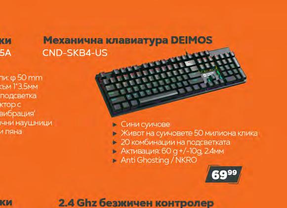3499 2699 2999 3499 4499 3499 3499 2699 3499 3499 3499 10999 Игра SLIME RANCHER Игра HITMAN 2 Игра SEGA MEGADRIVE CLASSICS Игра THE CREW 2 Игра MARIO & RABBIDS KINGDOM BATTLE Игра SNIPER ELITE 4 Игра NARUTO ULTIMATE NINJA STORM TRILOGY Игра FAR CRY 5 Игра HORIZON ZERO DAWN COMPLETE EDITION Игра UNCHARTED COLLECTION Игра SNIPER GHOST WARRIOR 3 Игра SPLATOON 3 379 999 29999 33999 789/989* Саундбар SN5 • 5.1 канала, Мощност: 510 W • Безжичен съраунд звук с 5.1 и с 10 часа време за възпроизвеждане • Dolby Digital, Virtual Surround Sound • HDMI 3 вход / 1 изход, Оптичен, AUX • Безжичен субуфер • Мощност: 300 W • Свързване с Bluetooth, NFC • D.Bass Beat • 2-посочна система с 3 високоговорителя • DJ ефекти и LED светлинно шоу • Радио тунер FM 30 станции памет • USB, AUX, 2x Вход за микрофон – караоке функция • Мощност 240 W • Original Pro Sound • Светлинни и звукови ефекти • Живот на батерията до 18 часа • Вход за микрофон, IPX4 • Технология: 3LCD • Яркост: 3000 лумена • Резолюция: WXGA / FULL HD* Саундбар BAR 5.1 • 2.1 канала • Мощност: 400W • Hi-Res audio • Dolby Digital • Безжичен субуфер • Bluetooth • HDMI, USB, Оптичен вход Аудио система PARTYBOX 310 Аудио система SC-UA30E-K Мултимедиен проектор CO-W01/ FH02* Саундбар HW-Q700B 749 • 3.1.2 канален звук • Мощност: 320 W • WiFi и съвместимост с Chromecast и Airplay2 • Dolby Atmos, DTS: X • Bluetooth • HDMI 1 вход / 1 изход, Оптичен вход • Брой клавиши: 61 • Брой октави: 5 • Запаметени мелодии: 112 • Запаметени тонове: 400 • Запаметени стилове: 130 • Изход за слушалки, AUX in Синтезатор YPT-260 Bluetooth колонка GO 3 • Обща мощност 4.2W • Bluetooth интерфейс • До 5ч. издръжливост на батерията с едно зареждане • IP67 сертифициран - прахо и водоустойчив при потапяне в сладка вода до 1м., до 30 мин. 7299 4999 7990 • Истински 360° звук с максимално качество • Съвместимост с Google или Siri асистент • IP55 сертифициран - устойчив на водни пръски Лесен за употреба с удобни контроли • Bluetooth, До 13ч. издръжливост на батерията с едно зареждане Bluetooth колонка SOUNDLINK REVOLVE II 39999 99 579 Bluetooth колонка XTREME 3 • Обща мощност 50W • Bluetooth интерфейс, PowerBank функция • PartyBoost, Li-Ion батерия до 15ч. с едно зареждане • IP67 сертифициран - прахо и водоустойчив при потапяне в сладка вода до 1м., до 30 мин. • Преносимо радио с ретро дизайн • Обхват FM/SW/MW • MP3 възпройзвеждане от USB/ MicroSD • Bluetooth v4.2 за стриймване на музика • AUX вход, Телескопична антена Ретро радио BOX BT 7500 Радио часовниk RC-800EG-K • Мощност: 1 W • Цифров FM тунер • Двойна аларма • Повторение на сигнала за събуждане Безжичен микрофон SP 20 Слушалки BH316 BT ANC • Високачествена микрофонна звукова глава • Дисплей на приемника • Честотен обхват – 40Hz~20KHz±3dB • Работна дистанция – до 100 метра • Работна честота 610-860 MHz • Безжични с активно шумопотискане • Чувствителност 121 dB • Честотен обхват 20–20 000 Hz • Импеданс 32 Ohm • До 23 часа издръжливост на батерията с едно зареждане Слушалки HAS65BNBU Слушалки QUIETCOMFORT 45 DUALSENSE WIRELESS CONTROLLER и ваучер за игра FIFA23 6999 6499 Слушалки RB-HF420BE • Чист и динамичен звук с плътен бас • Безжични, Сгъваем и удобен дизайн • До 50ч. издръжливост на батерията с едно зареждане • Бързо зареждане: 15мин. зареждане - до 3ч. слушане на музика 749 22999 Конзола NIntendo Switch OLED WHITE Игра RALLY RACERS + 1299 • X-Balanced говорители и фронтално разположени пищялки • Рейтинг IPX4 за водоустойчивост • До 20ч издръжливост на батерията • Бързо зареждане • Зареждане на смартфон • Party Connect • Парти светлини • Дръжка за удобно пренасяне SRS-XP500 Преносим говорител IPX4 MDR-EX155AP Слушалки с микрофон • Вградено дистанционно управление и микрофон за разговори • Честотен обхват 5 - 24 kHz • Кабел без заплитане • Hands-free обаждания • Дълъг живот на батерията • Бързо зареждане • Магнитни слушалки WI-C310 Б