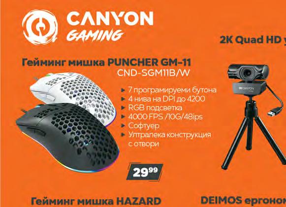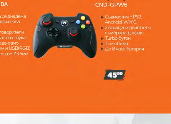 285 20999 24999 3399 3099 Монитор 241E1SCA Монитор SA220QBBIX • AMD FreeSync съвместим, Резолюция: 1920x1080 • Честота на опресняване до 75 Hz • Яркост: 250 cd/m2 Статичен контраст: 3 000:1 • Ъгъл на виждане: 178°/178° • Време за реакция GTG: 4 ms • Говорители: 2 x 3 W • Интерфейс: D-Sub, HDMI • Аудио изход за слушалки • Екран: 21.5" (54.6 cm), IPS, Матов • AMD FreeSync съвместим, Резолюция: 1920x1080 • Честота на опресняване до 75 Hz • Яркост: 250 cd/m2, Статичен контраст: 1 000:1 • Ъгъл на виждане: 178°/178° • Време за реакция: 1 ms • Интерфейс: D-Sub, HDMI • Аудио изход за слушалки Екран: 23.6" (59.9 cm), VA, Извит, Матов 1920 Честотанаопресняванедо75Hz + Wi-Fi 1 ² / / ** 12999 • A4 мастилено-струен принтер, скенер и копир • Резолюция на печат: до 4800х1200dpi • Скорост на печат: до 9.9 ipm черно • Скорост на печат: до 5.7 ipm цветно • Резолюция на сканиране: до 1200х2400 dpi • Консумативи: PG-540/540XL,CL-541/541XL • Автоматичен двустранен печат • USB 2.0 и Wi-Fi интерфейси • Цвят: Черен/Червен Мултифункционално устройство PIXMA MG3650/S BK Гейминг стол FURY AVENGER L • Ергономичен дизайн • Висококачествена пяна, стилна кожа • Газов амортисьор с издръжливост до 150 kg • Механизъм за регулиране ъгъла на наклон • Корекция на височината • Регулируеми подлакътници • Устойчиви, гумирани колела • • • • • Комплект X1960 • Мултимедийна клавиатура • Мишка с резолюция 1000 DPI • Общ USB предавател 2899 8999 • 2 тихи вентилатора • Регулиране на наклона • Размер 390x280x27.5 mm • USB захранване Охладител UPAL • 2.1 мултимедийа система • Мощност: 14 W + 2x14 W • Дистанционно управление • Bluetooth /USB /AUX свързваане • Вградено цифрово FM радио Компютърни колони A180X Екран: 21 5" cm) IPS Матов Рутер WR841N • 2.4 GHz свързаност • Скорост: до 300 Mbps • 10/100 Mbps WAN и 4 LAN порта • Стандарти 802.11 a/b/g/n • 2 фиксирани антени • Гаранция 36 месеца 10 x 209.90 лв 10 x 184.90 лв 10 x 179.90 лв 10 x 159.90 лв 10 x 108.90 лв НАЦИОНАЛЕН ТЕЛЕФОН 0700 12340 НАЦИОНАЛЕН ТЕЛЕФОН *9090 Универсален фиксиран номер от мрежата на А1. На цената на един градски разговор при обаждане от стационарен номер При обаждане от мобилен номер цената се определя според тарифния Ви план за обаждане към номера 0700. Номерът е достъпен от мобилни номера от национални мрежи и Виваком Фикс на цена съгласно тарифния Ви план за обаждане към кратки номера 9