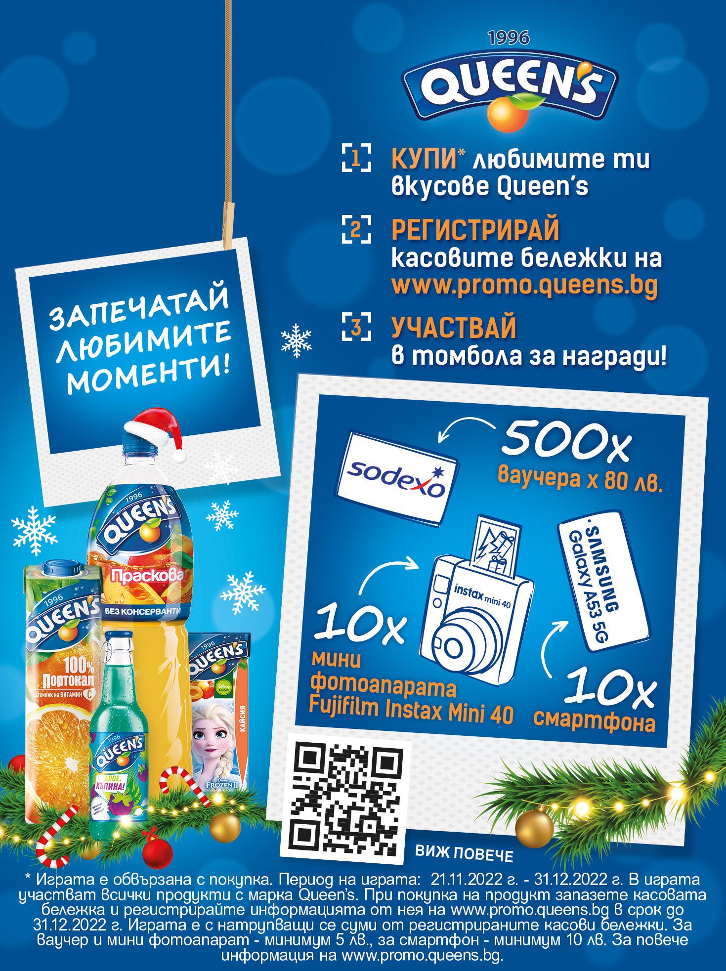 САМО 089 Чушки с боб 100 г 1 кг = 8,90 лв. Сарми постни, зелев лист, 100 г 1 кг = 6,90 лв. -42% 1,19 069 ЗА ПРАЗНИЧНАТА ТРАПЕЗА Кисело зеле 100 г 1 кг = 2,50 лв. -28% 0,35 025 Сушени плодове с марка „QUEEN DIAMOND” 150 - 500 г *не важи за стоки, участващи в други промоции -20% Цените важат за периода на акцията, до изчерпване на наличностите в съответния магазин. Акциите са валидни от 20.12. до 26.12.2022г., освен ако за даден продукт или група продукти не е посочен друг срок. Стоките се продават в количества, обичайни за едно домакинство, ако друго не е изрично посочено до конкретния артикул. Възможно е някои от продуктите да не са налични във всички разновидности. Снимките са с илюстративна цел. Максима България не носи отговорност за допуснати печатни грешки. Всички цени са в български лева и с включен ДДС. 2 -18% 10,99 899 Вино „TCHERGA” различни сортове, 750 мл