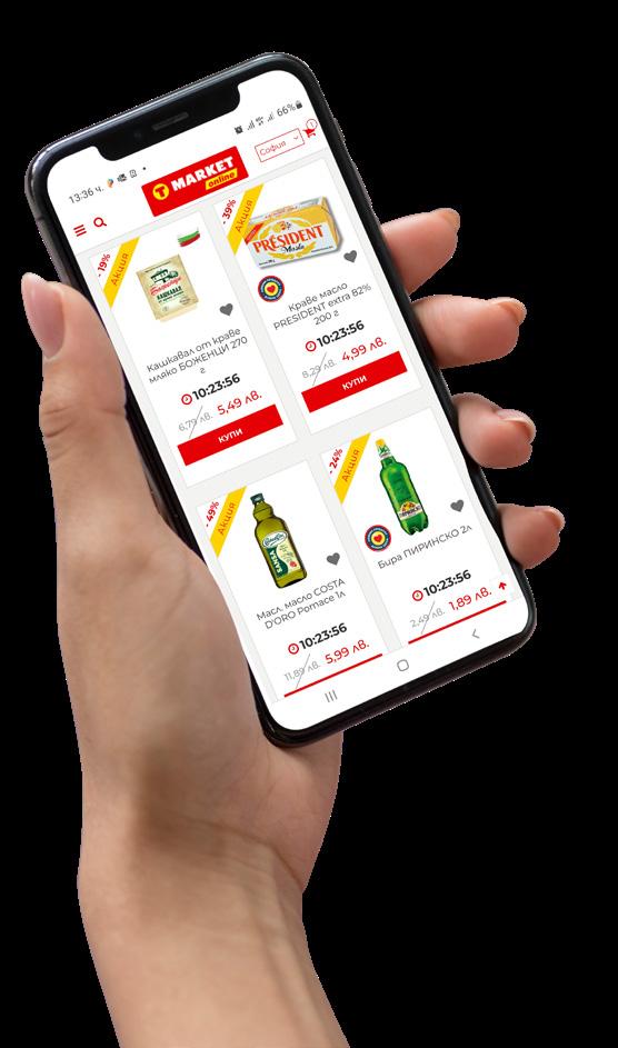 ОТ ВТОРНИК 06.12. до 12.12.2022 Цените важат за периода на акцията, до изчерпване на наличностите в съответния магазин. Акциите са валидни от 06.12. до 12.12.2022 г., освен ако за даден продукт или група продукти не е посочен друг срок. Стоките се продават в количества, обичайни за едно домакинство, ако друго не е изрично посочено до конкретния артикул. Възможно е някои от продуктите да не са налични във всички разновидности. Снимките са с илюстративна цел. Максима България не носи отговорност за допуснати печатни грешки. Всички цени са в български лева и с включен ДДС. *Не важи за магазини Т МАРКЕТ, гр. София: кв. Борово, кв. Редута; гр. Пловдив: ул. Капитан Райчо 32 и бул. Васил Левски 3 -33% 0,89 059 Виж дигиталната ни брошура онлайн на www.tmarket.bg Свинска плешка без кост, кг САМО 699 ОТ НАШАТА ВИТРИНА С ОБСЛУЖВАНЕ Грах „FAVORIT ” 720 мл -18% 2,45 199 С ОГРАНИЧЕНИЕ ДО 6 БР. НА КЛИЕНТ Олио „КАЛИАКРА” слънчогледово, 1 л -18% 5,49 449 Разтворимо кафе „NESCAFE” classic, 250 г Краве сирене „БЕЛИИСА” кг ОТ НАШАТА ВИТРИНА С ОБСЛУЖВАНЕ Коледен календар „FUNDIEZ” 50 г САМО 199 Щолен „KUCHEN MEISTER” САМО 799 Шоколадов Дядо Коледа 60 г САМО 079 Салата Снежанка „ПРЕМИУМ” 100 г 1 кг = 6,90 лв. -40% 1,15 069 -38% 14,49 889 Бира „ЗАГОРКА” кен, 500 мл -31% 1,45 099 Кюфте, кебапче* на скара, бр. Телешка саздърма „ЕКО МЕС” 180 г Цена за 1 бр. = 6,49 лв. -50% 12,98 649 Картофи кг САМО 099 -30% 25,99 1799 Уиски „BALLANTINES” 40%, 700 мл САМО 899 Омекотител „ABC” Sensitive, 5 л, 50 пранета -31% 17,39 1199