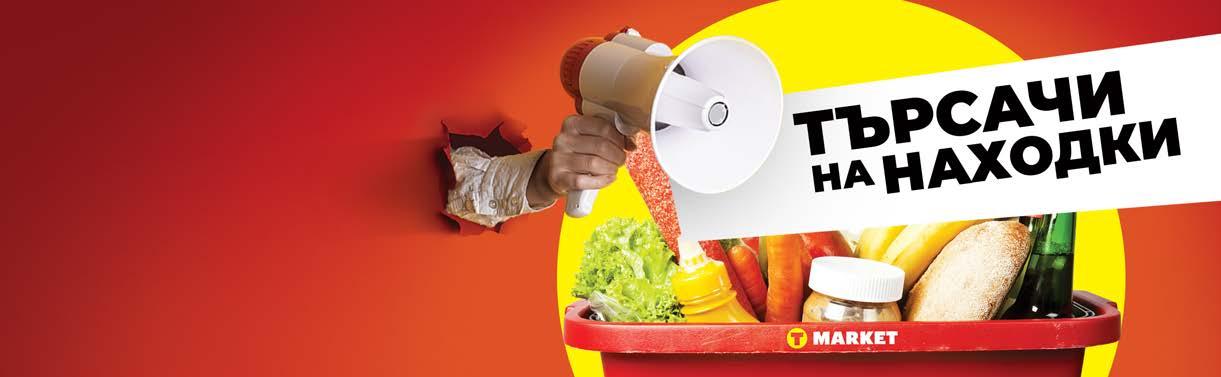 Цените важат за периода на акцията, до изчерпване на наличностите в съответния магазин. Акциите са валидни от 01.11. до 07.11.2022г., освен ако за даден продукт или група продукти не е посочен друг срок. Стоките се продават в количества, обичайни за едно домакинство, ако друго не е изрично посочено до конкретния артикул. Възможно е някои от продуктите да не са налични във всички разновидности. Снимките са с илюстративна цел. Максима България не носи отговорност за допуснати печатни грешки. Всички цени са в български лева и с включен ДДС.2 СПЕЦИАЛНИ ДНИ НА СПЕЦИАЛНИ ДНИ НА СПЕСТИ МАКАРОНЕНИ ИЗДЕЛИЯ, ВАРИВА И ПОДПРАВКИ* ПАКЕТИРАНИ КРОАСАНИ И ВАФЛИ* Пазарувай за минимум 30 лв. и включи в покупката си поне един продукт със знак “НАХОДКА”. Регистрирай касовия си бон на www.tmar ket.bg/page/tombola-tyrsachi-na-nahodki и участвай в игра за спечелване на един от 5 ваучера за пазаруване, всяка седмица, само във верига магазини Т МARKET и Т MARKET online. С една касова бележка можеш да спечелиш един ваучер. Участващите в играта продукти ще бъдат обозначени в брошура, на регал в магазина и на T MARKET online. Период на играта: от 20.09.2022 до 05.12.2022 г. Виж повече на https://tmarket.bg/page/tombola-tyrsachi-na-nahodki и във физическите ни магазини. -26% 1,29 095 -27% 2,19 159 Бонбони „СЕЗОНИ” различни видове, 160 г 05 - 06.11 събота и неделяс карта “благодаря“ ВСИЧКИ ВИДОВЕ СИРЕНА* *не важи за стоки, участващи в други промоции *не важи за стоки, участващи в други промоции *не важи за стоки, участващи в други промоции Брускети