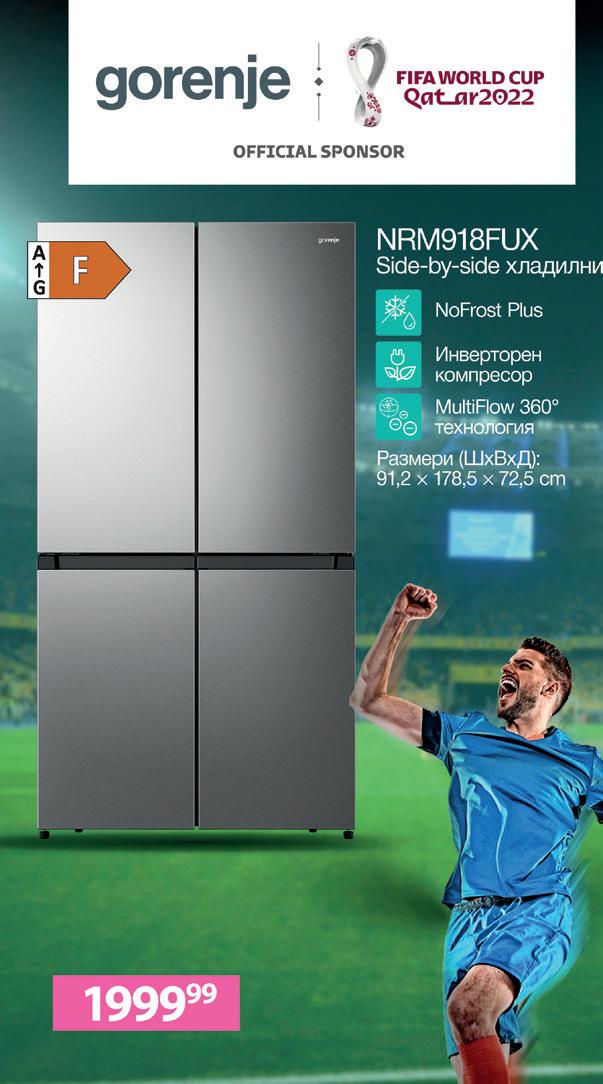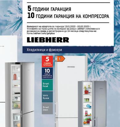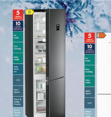 179 см Хладилник с фризер • Обем: 635 л (416/219) • Енергиен клас: Е No Frost • Kонсумация (kWh/година): 350 Външен дисплей • Инверторен компресор с 10 години гаранция • Диспенсер за студена вода • Външен ледогенератор • Размер: 179х91,3х74,5 см • Цвят: Инокс 2899.99 E A G 635л. kWh годин 350 no frost дисплей 91,3 см 186 см Хладилник с фризер Обем: 340 л (233/107) Енергиен клас: Е • No Frost Kонсумация (kWh/година): 267 • Външен дисплей Инверторен компресор с 10 години гаранция ThinQ - WiFi функция за връзка със смартфон Диспенсер за студена вода Размер: 186х59,5х68,2 см Цвят: Инокс 1199.99 E A G 59,5 см 340л. kWh годин 267 no frost дисплей no frost kWh година 390 456л. дисплей 190 см 70 см Хладилник с горна камера Обем 456 л (355/101) No Frost • Енергиен клас: F Kонсумация (kWh/година): 390 • Бързо замразяване и охлаждане Поставка за бутилки LED осветление Размер: 190х70х70 см Цвят: Инокс 1169.99 kWh година 254 344л. no frost дисплей 185 см Хладилник с фризер • Обем: 344 л (230/114) • Енергиен клас: E • Kонсумация (kWh/година): 254 No Frost • Инверторен компресор с 20 години гаранция • LED осветление • Размер: 185,3х59,5х65,8 см • Цвят: Инокс 1049.99 E A G 186 см 201 см Хладилник с фризер • Обем: 371 л (267/104) Енергиен клас F • Kонсумация (kWh/г): 317 • No Frost • LED осветление • Дисплей в хладилната част • Размер: 201х60х67,6 см • Цвят: Сив 959.99 371л. kWh годин 317 no frost F A G Хладилник с фризер Обем: 335 л (231/104) • Енергиен клас F No Frost Kонсумация (kWh/година): 315 • LED осветление Ниво на шум 40 dB Размери: 191х60х68 см Цвят: Инокс 879.99 kWh годин 315 335л. no frost 186 см F A G 186 см Хладилник с фризер Обем: 331 л (230/101) No Frost • Енергиен клас: F Kонсумация (kWh/година): 313 LED осветление в хладилната част Размер: 186х59,5/65 см Цвят: черно стъкло 849.99 kWh годин 313 331л. no frost години гаранция ЧЕРНО СТЪКЛО F A G kWh годин 301 334л. Хладилник с фризер • Oбем: 334 л (223/111) • Енергиен клас: F • Kонсумация (kWh/година): 301 • Aвтoмaтичнo paзмpaзявaнe нa xлaдилнaтa чacт • Диспенсер за студена вода • LED осветление • Размер: 189х60х65 см • Цвят: Сив 799.99 185 см F A G 186 см 59,5 см Хладилник с фризер • Обем 295 л (207/88) No Frost • Kонсумация (kWh/г): 299 • Вентилатор в хладилната част • Външен дисплей* • Размер: 186х59,5х60 см • Цвят: Бял* 689.99 F A G kWh година 299 295л. no frost години гаранция kWh годин 280 288л. години гаранция Хладилник с фризер • Обем 288 л. (204/84) • Консумация 280 kW/год • Енергиен клас F • Стъклени полици в хладилната част • Размер: 180х54x60 см 619.99 180 см 54 см F A G Хладилник с фризер • Oбем: 268 л (184/84) Kонсумация (kWh/година): 277 • Енергиен клас: F • Стъклени полици и рафтове • LED осветление • Wine Rack Odour free • Размер: 170х54х60 см 549.99 170 см kWh годин 277 268л. години гаранция F A G 180 см kWh годин 280 270л. no frost диспенсър 55 см Хладилник с фризер • Обем 270 л (195/75) • No Frost Енергиен клас: F • Kонсумация (kWh/година): 280 • Стъклени полици и рафтове • Диспенсер за студена вода: • Размер: 180х54х59,5 см Цвят: Инокс 679.99 години гаранция F A G 180 см kWh годин 263 269л. Хладилник с фризер Обем: 269 л (198/71) Енергиен клас: F Kонсумация (kWh/година): 263 CrispZone LED осветление Размер: 180x55х55,7 см 639.99 F A G Хладилник с фризер • Обем: 142 л (87/55) • Kонсумация (kWh/година): 233 kWh • Саморазмразяване на хладилната част • Механично управление • Стъклени полици • Размери 144х48х53 см kWh годин 193 140л. 144 см F A G 419.99 Валидни от 13.01. до 02.02.2023 kWh година 235 302л. no frost Хладилник с фризер • Обем: 302 л (215/87) • Енергиен клас: E • NO FROST • Kонсумация (kWh/година): 235 • No Frost • Вентилатор в хладилната част • LED осветление • Perfect Fit • Multi Airflow • Размер: 186х60х66 см • Цвят: Инокс 999.99 E A G 20 x 145,00 лв. 11 x 109,09 лв. 20 x 58,49 лв. 11 x 95,45 лв. 11 x 87,27 лв. 11 x 79,99 лв. 11 x 77,27 лв. 11 x 72,72 лв. 8 x 86,25 лв. 8 x 85,00 лв. 8 x 77,50 лв. 8 x 68,75 
