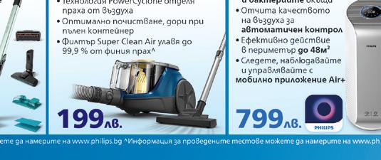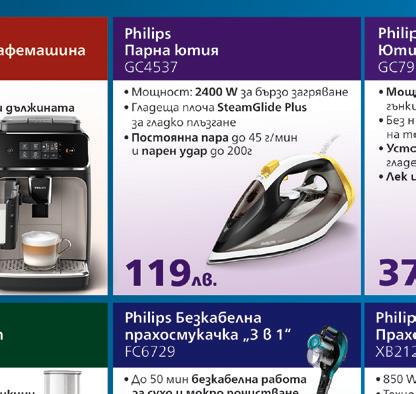 203VFEN-NEW* Готварска минипечка Две чугунени плочи Статична фурна: 38 л Енергиен клас: A Двойно стъкло с над 20% видимост Размери: 39х56х50,2 см Цвят: бял/черен* 329.99 Готварска минипечка • Малък котлон: 1000W Голям котлон: 1500W • Долен нагревател: 700W • Горен нагревател: 600W • Полезен обем на фурната: 42 л • Размери: 33х52х38,5 см 179.99 Микровълнова фурна Мощност: 1150W • Oбем: 25 л 900W грил LED дисплей Smart Inverter магнетрон с 10 години гаранция Диаметър на чинията 292 мм Цвят: бял 259.99 Микровълнова фурна • Мощност: 700W Грил 800 W • Обем: 20 л • Метални ръкохватки Лесна за почистване • Без въртяща се чиния • Керамично дъно • Компактен корпус • Функция размразяване 239.99 Микровълнова фурна Oбем: 23 л • Мощност: 800W 6 нива на мощност Вътрешно керамично покритие Диаметър на чинията 28,8 мм Размер: 275х489х274 мм 199.99 Микровълнова фурна Обем 20 л. Грил Мощност микровълни 700W 5 степени на мощност Дигитално управление Цифров дисплей 149.99 Микровълнова фурна • Мощност: 800W • Oбем: 20 л • Touch control • 8 програми за автоматично готвене/ размразяване • Защита от деца • 11 степени 149.99 CDMO-2091GR* Микровълнова фурна Обем 20 л. Мощност: 700W Грил* Механичен контрол 6 степени на мощност Фукция размразяване 139.99 149.99* CB-5066 Блендер 4999 • Мощност: 500 W • Вместимост: 1,5 л • 5 скорости • Функция “Пулс • Стъклена кана • Остриета от неръждаема стомана • Гумени крачета против приплъзване • Отвор на капака за поставяне на продукти по време на работа CWD-1925 Pure Диспенсер 16999 • Мощност при подгряване: 420W • Капацитет при охлаждане: 90° C, 5.0 L/h • Мощност при охлаждане: 65W • Капацитет при охлаждане: <15° C, 1.0 L/h • Водосъдържател от неръждаема стомана • Електронно охлаждане CBM-6562 Хлебопекарна 11999 • Мощност: 850 W • Обем: 750/1000/1250 гр. • Сензорен панел • 12 програми • Две бъркалки MTO-10 Минифурна 5499 • Полезен обем на фурната: 10 L • Нагревател от неръждаема стомана • Механично управление • Механичен таймер • Двойно стъкло на вратата CEM-1523 Кафемашина 9999 • Мощност: 850 W • Функция за приготвяне на капучино или друга топла напитка • Защита от прегряване • 1.5 л подвижен резервоар за вода • Филтър за перфектен каймаккрема диск • Регулируема пара за улеснена работа • Функция за приготвяне CDF-303IX Фритюрник 4999 • Мощност: 2000 W • Терморегулатор • Вместимост: 3 л • Регулируем термостат • Прозрачно прозорче за наблюдение • Вадещ се контейнер за мазнина CAF-3214M Кукър 9999 • Мощност: 1400W • Вместимост: 3,7 л • Терморегулатор • Таймер • Защита против прегряване • Светлинни индикатори CMHB-3077 Миксер с купа 3999 • Мощност: 200 W • Вместимост: 3,4 л • Въртяща се купа • 5 скорости и турбо • Хромирани бъркалки • 2 Бъркалки за яйца • 2 бъркалки за тесто • Бутон за изваждане на бъркалките с предпазител FCH-2727CP Прахосмукачка с контейнер Мотор: 800 W "HEPA 13" филтър Капацитет на контейнера: 3 л Дължина на кабела: 4 м Метални телескопични тръби 1,5м маркуч Комбинирана четка за под 99.99 VC07M31B0HN/GE Прахосмукачка с контейнер Мотор: 700W • Капацитет на контейнера: 2 л • Управление на мощността от дръжката Допълнителна четка за паркет Максимална всмукателна мощност 190W Ниво на шум [dB]: 80 Дължина на кабела: 6 м Тегло 4,5 кг Цвят: Зелен BeSpoke VS20A95943N Вертикална прахосмукачка • Цифров инверторен с максимална консумирана мощност 580V Kонтейнер: 0.5 л. Ниво на шум [dB]: 86 Капацитет за отпадък на станцията 2 л. • Накрайник за домашни любимци 25,2V литиевойонна батерия 2 батерии 179.99 1499.99 ROBOT PRO-777WIFI Прахосмукачка робот за сухо и мокро почиства
