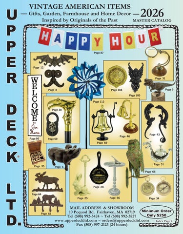 MAIL ADDRESS & SHOWROOM Minimum Order 10 Pequod Rd. Fairhaven, MA 02719 Only $250 Tel (508) 992-5424 ~ Tel (508) 992-3827 www.upperdeckltd.com ~ orders@upperdeckltd.com Index Page 2 Fax (508) 997-2123 (24 hours)