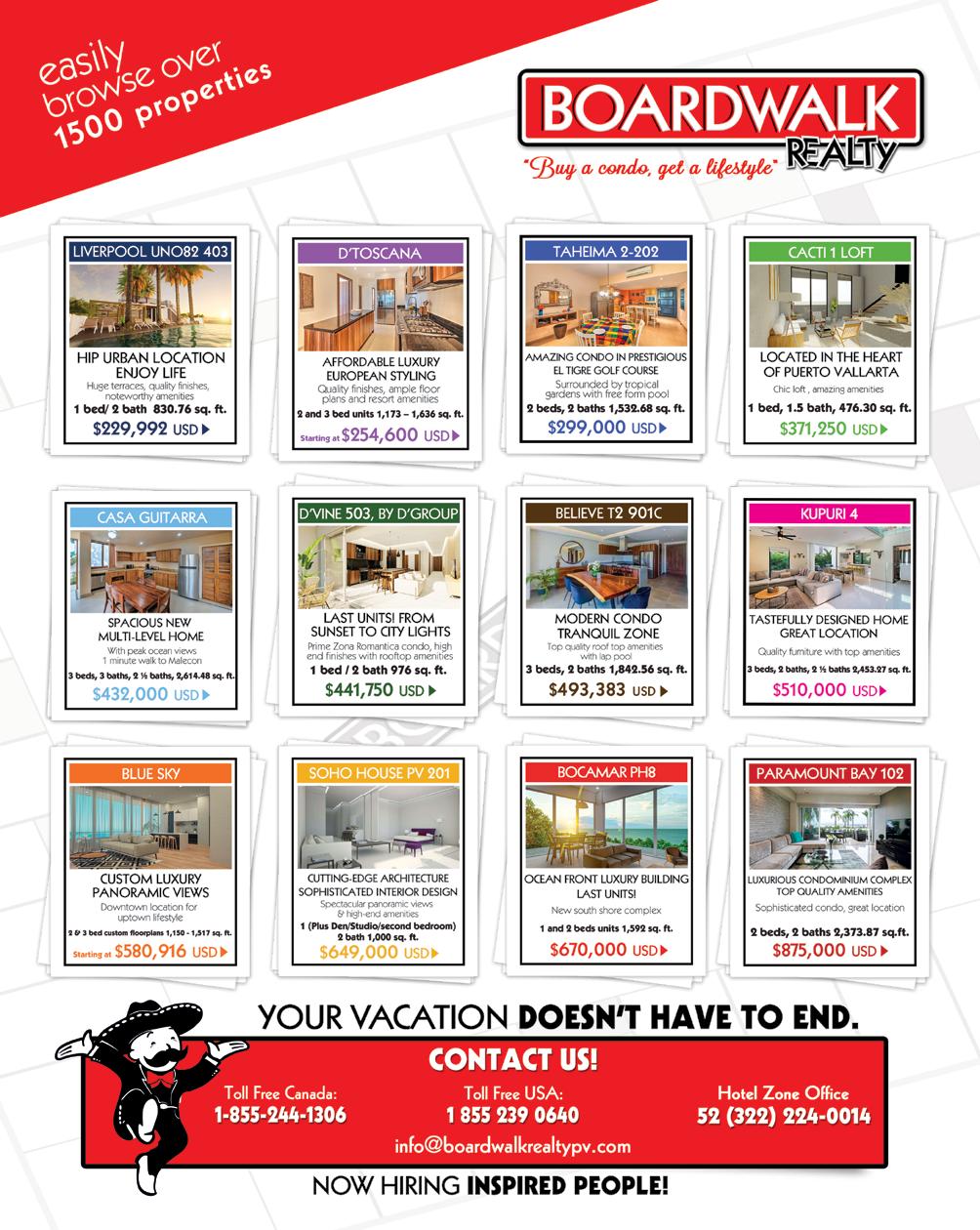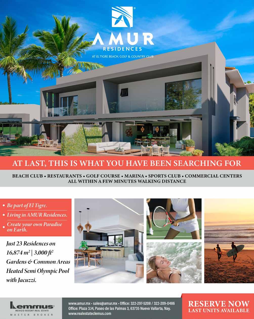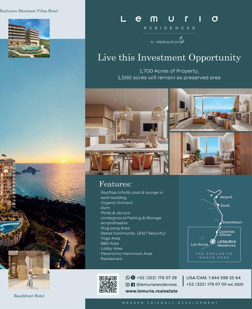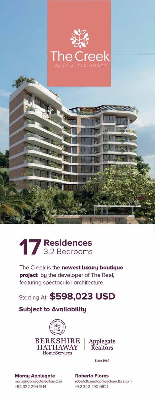 Ocean, Town, & Jungle Views Surfboard Storage Elevators Valet & Parking Lot Rooftop Bar & Lounge Family Area Lobby Concierge Saltwater Infinity Pool Rooftop Gym & Yoga Wastewater Management Plant Solar Panels & Energy-Efficient Materials BY: Tessa Stobbe / +52 1 322 150 7556 / tessa@mexhome.com Toll Free: +1 866 271 6887 / www.mexhome.com Caivamá’s 26 stunning condos stand tall at a privileged location in Sayulita, only 2 blocks away from the beach. IT’S TIME TO CONQUER HIGHER WAVES STARTING AT: $370,900 USD caivama.com | wearestately.com /caivamasayulita 50% SOLD *The developer reserves the right to modify colors, features, amenities, floor plans, prices, conditions, and services at any time without notice. *El desarrollador se reserva el derecho de modificar colores, materiales, amenidades, planos, precios, condiciones y servicios en cualquier momento sin previo aviso.