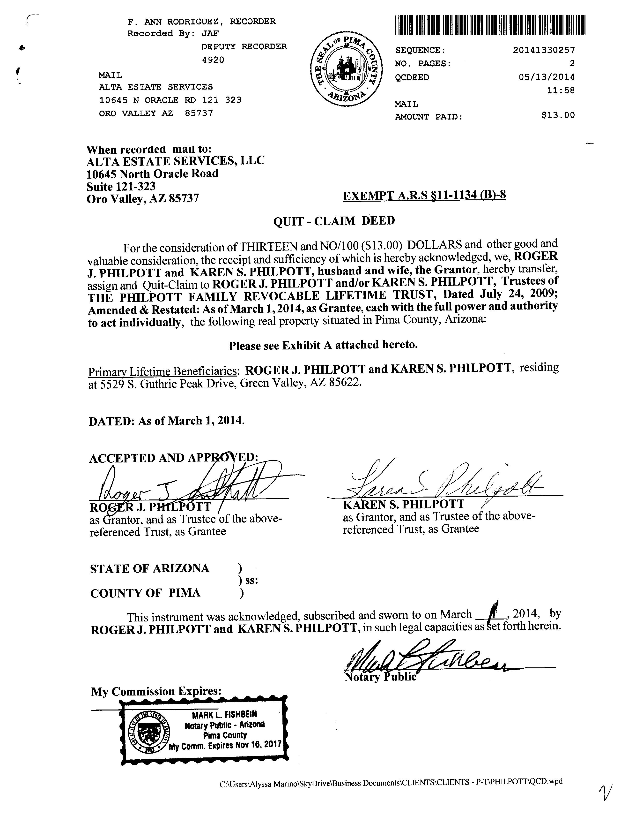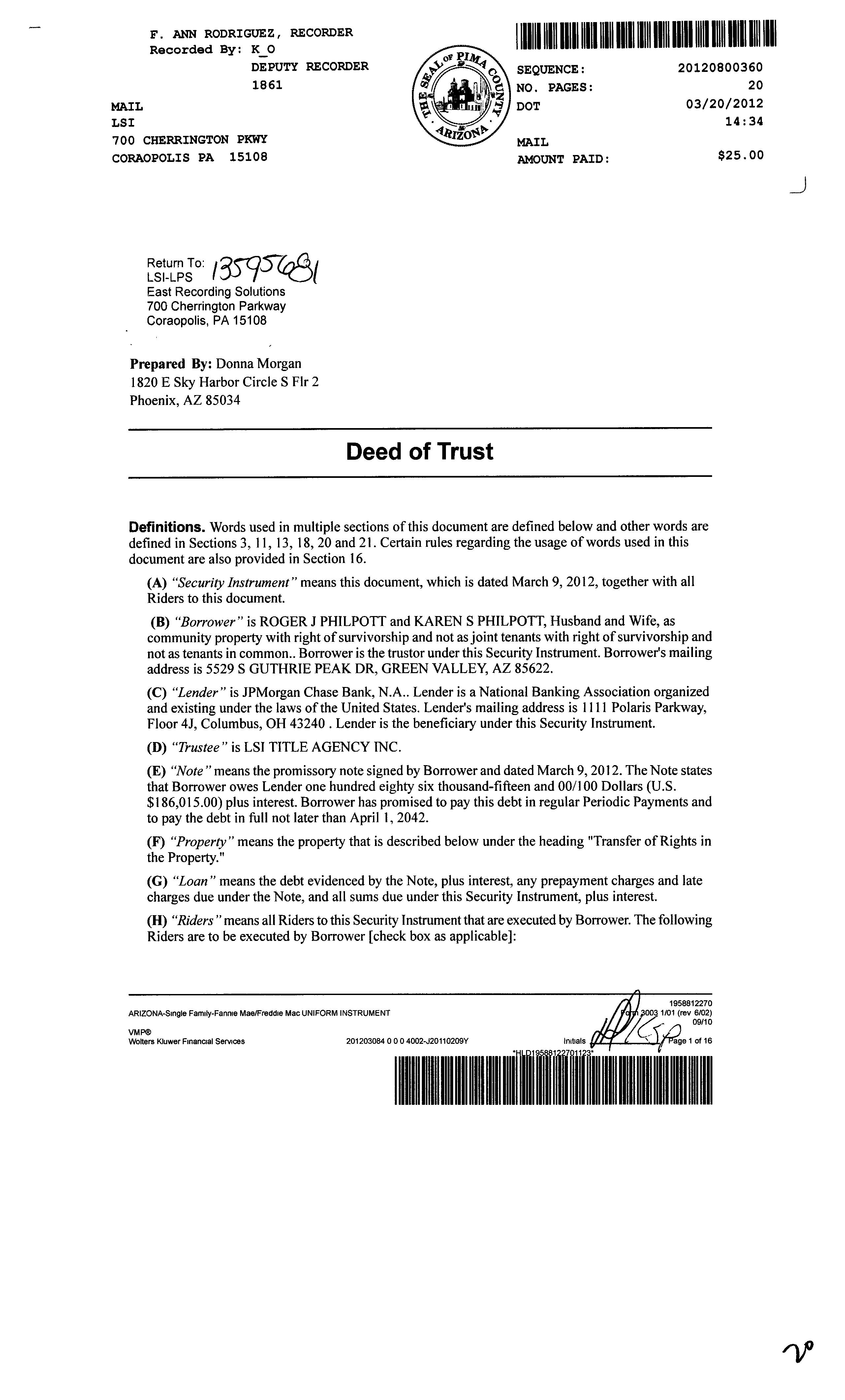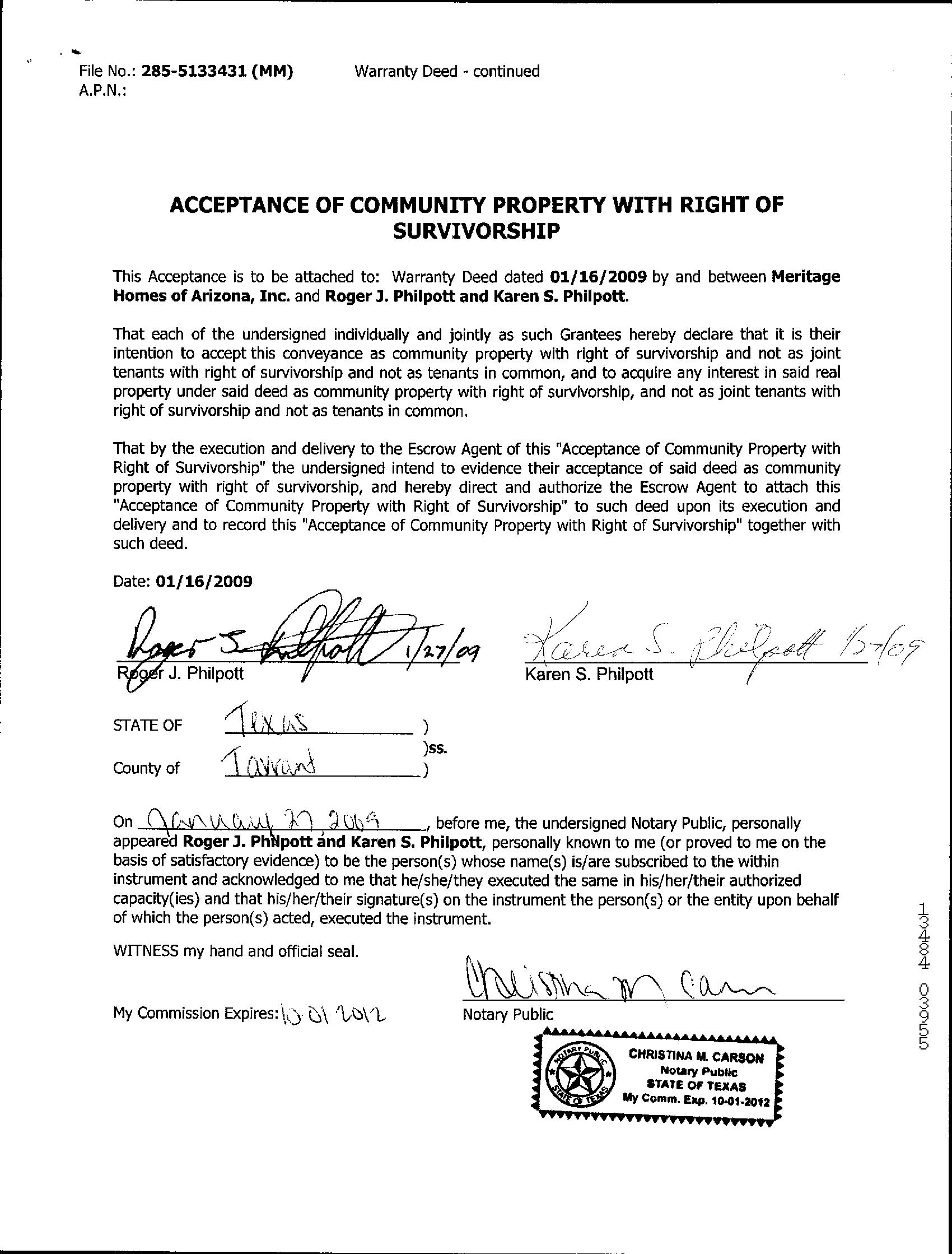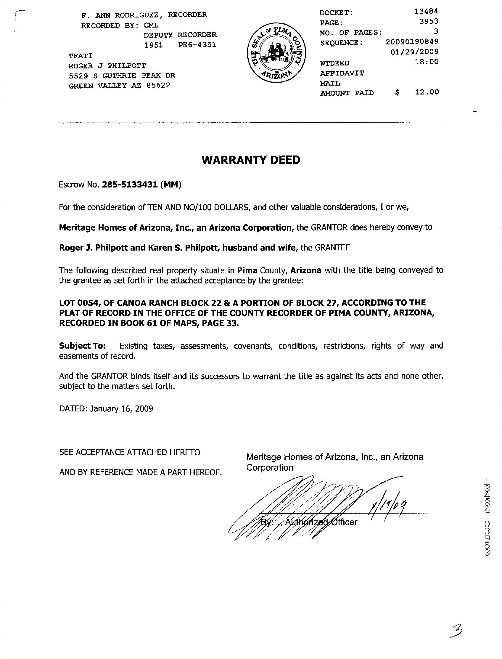 OWNER: PHILPOTT ROGER J & KAREN S CP/RS 13484 3953 01/29/2009