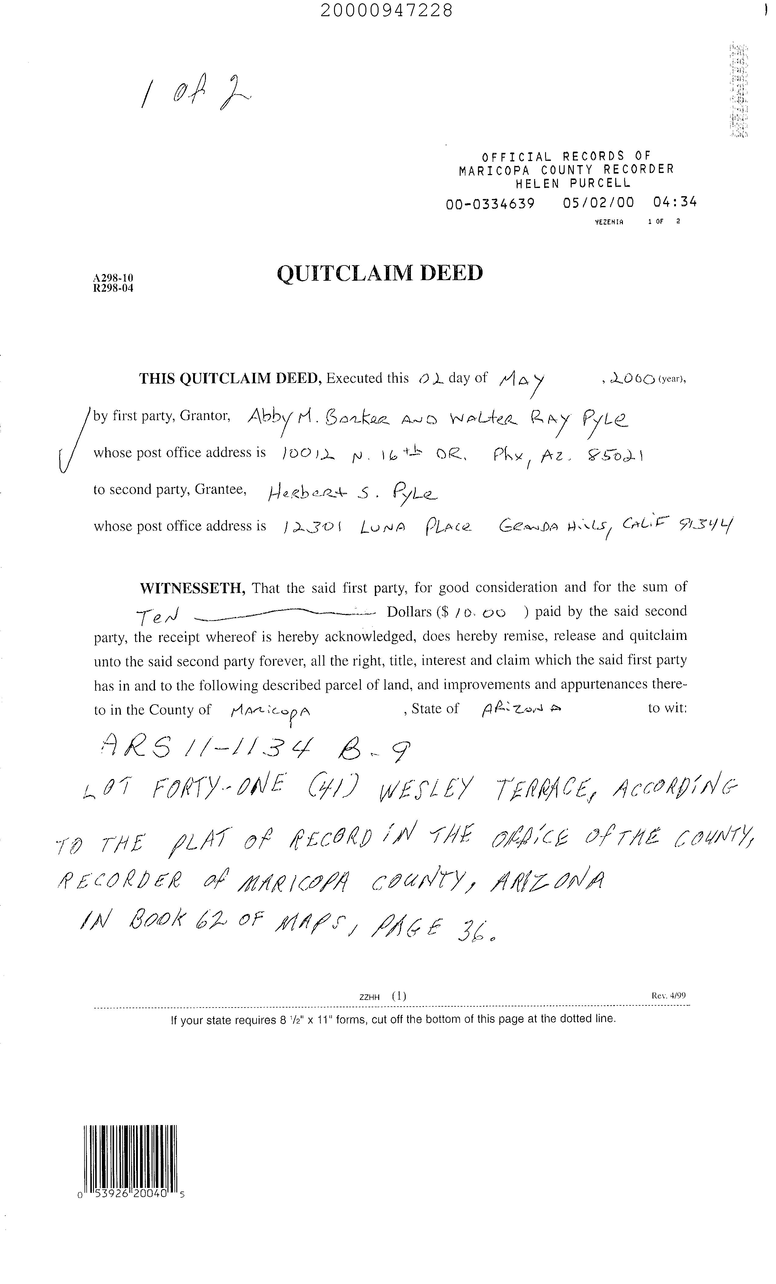 OWNER: PYLE HERMAN G 2017 128152 02/22/2017
