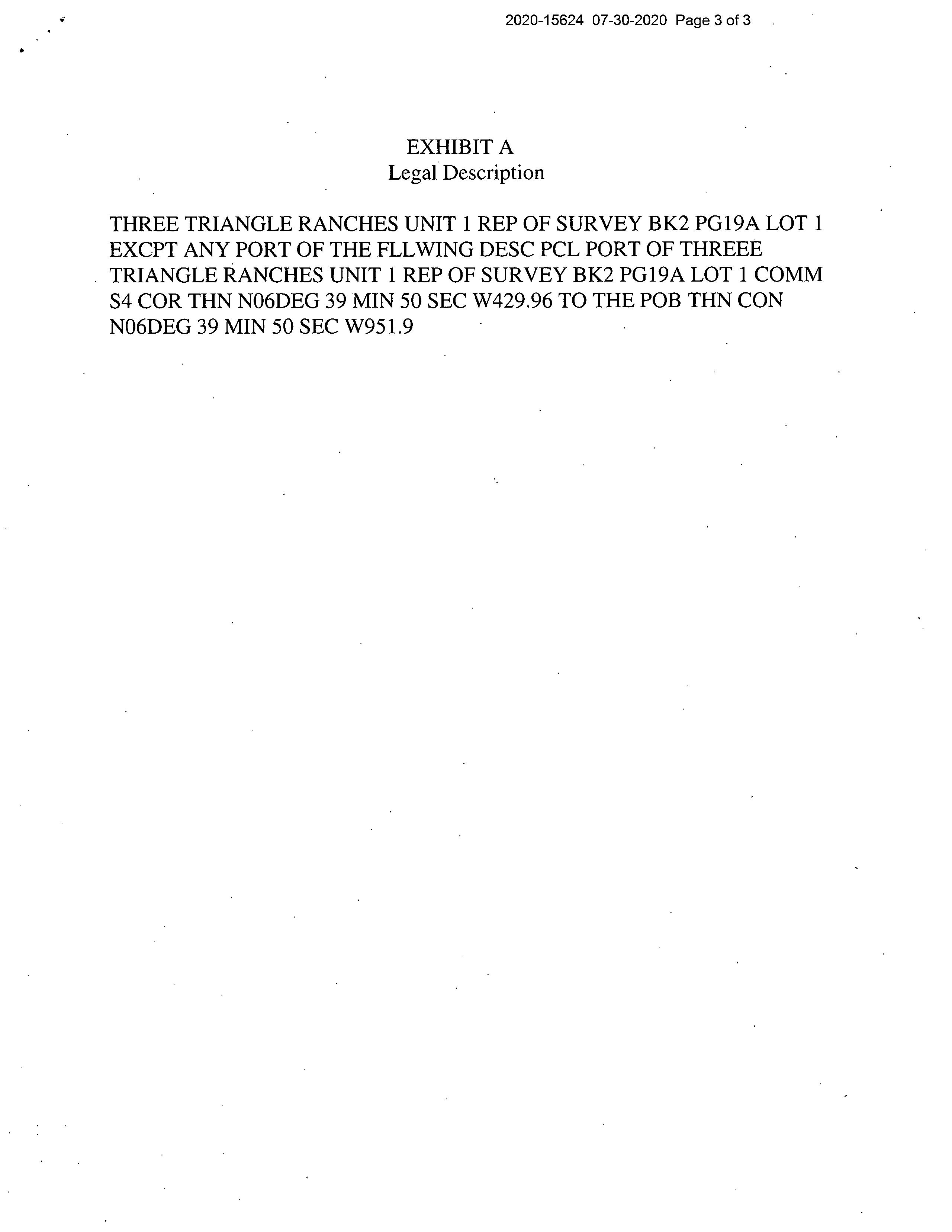 Legal Description : Three Triangle Ranches Unit 1 Rep Of Survey Bk2 Pg19a Lot 1 Excptany Port Of The Fllwing Desc Pcl Port Of Three Triangle Ranchesunit 1 Rep Of Survey Bk2 Pg19a Lot 1 Comm S4 Cor Thn N06deg 39min50sec W429.96 To The Pob Thn Con N06deg 39min 50sec W951.92' N89deg 58min 57sec E955.34' S22deg 53min 00sec W971.01' S83deg 44min 56sec W470.08' To The Pob And Excpt Any Port Ded In Fee# 2015-04495 Sec 25 17 31 32.649ac