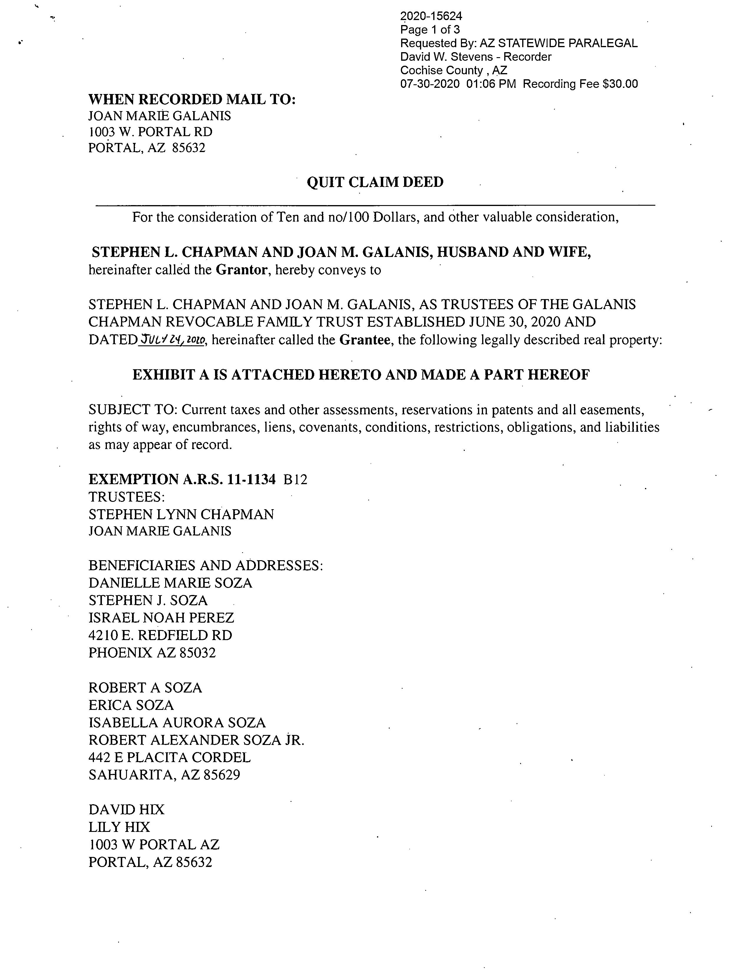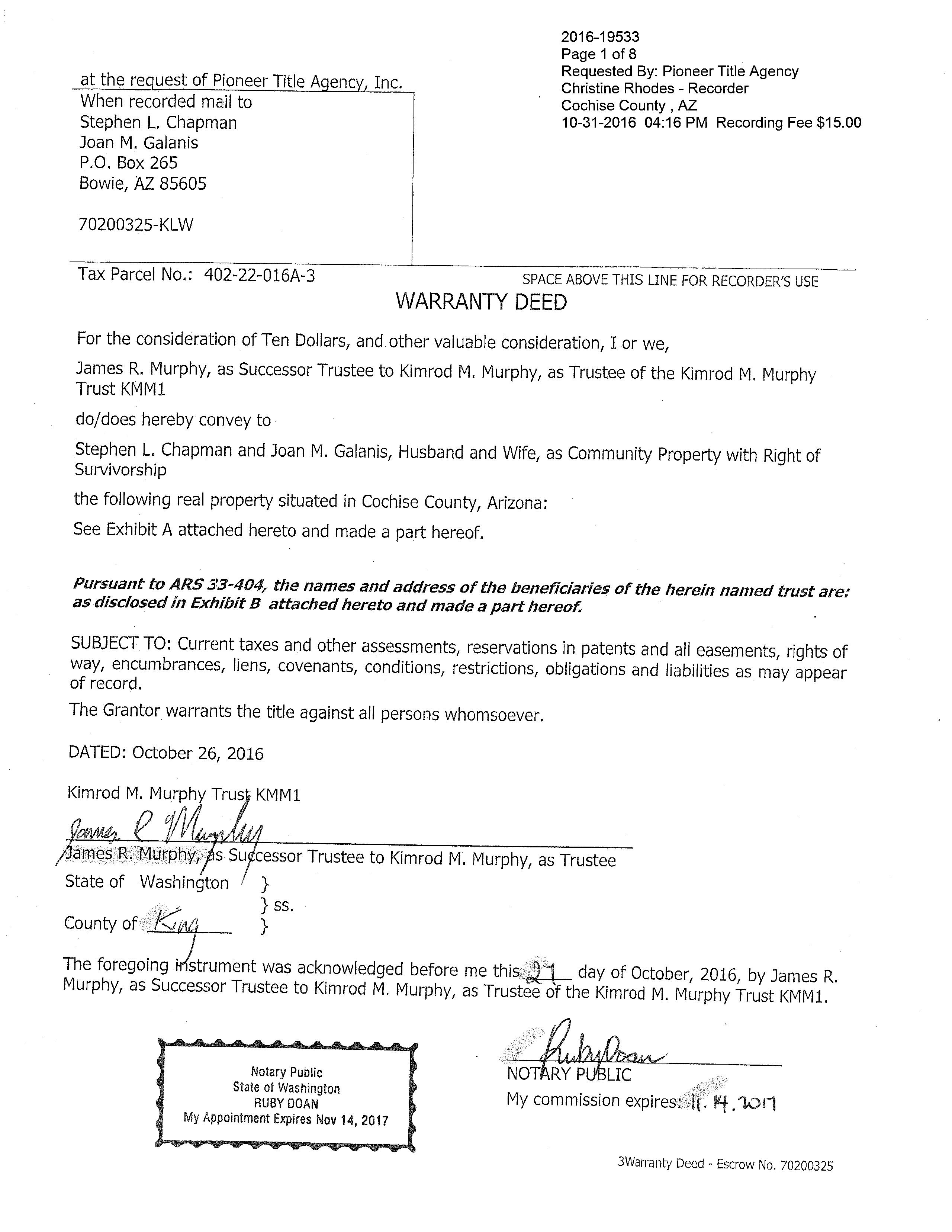 Subject Property: 1003 W Portal Rd San Simon Az 85632