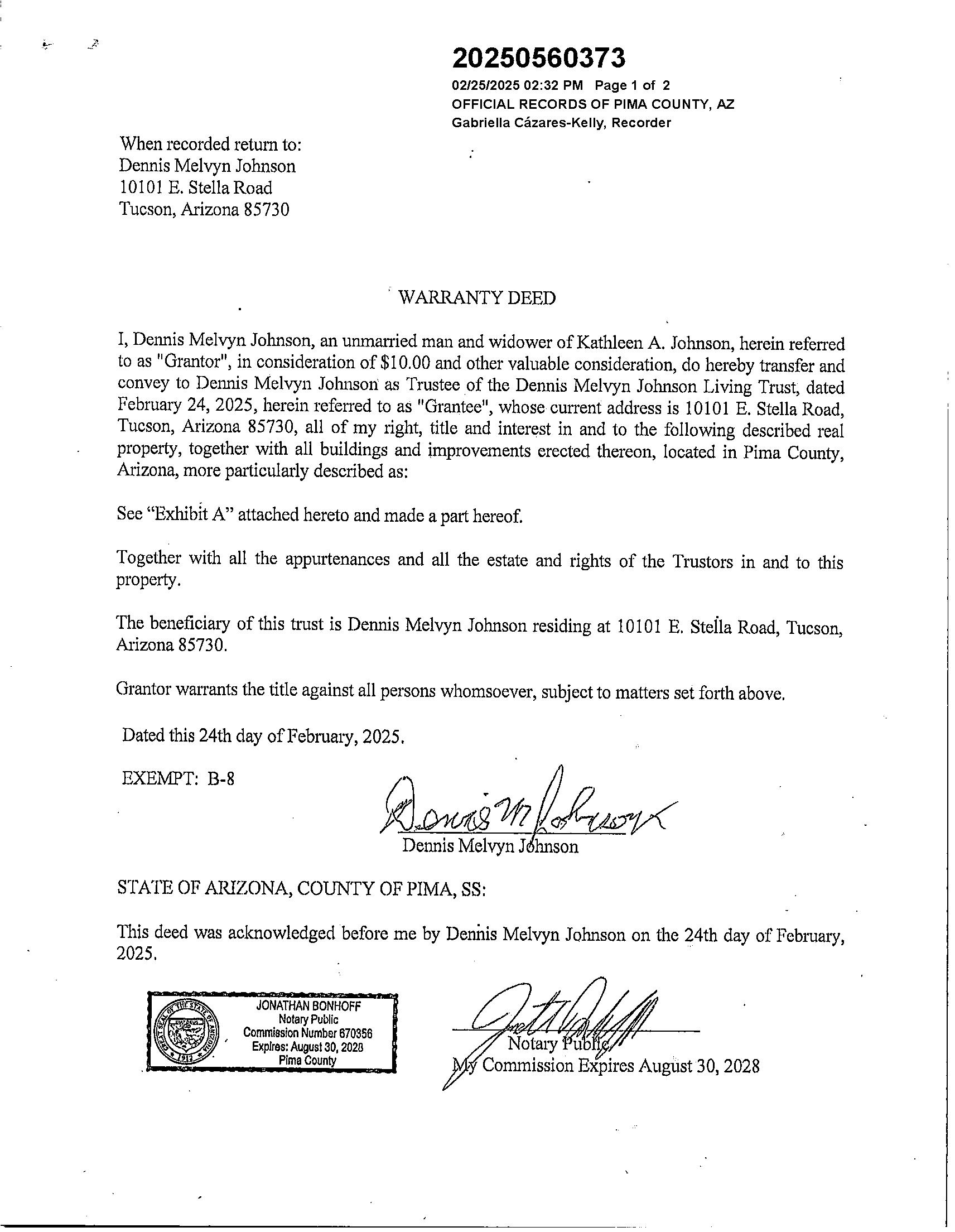 OWNER: DENNIS MELVYN JOHNSON LIVIN AFFIDAVIT 2025 560373 02/25/2025