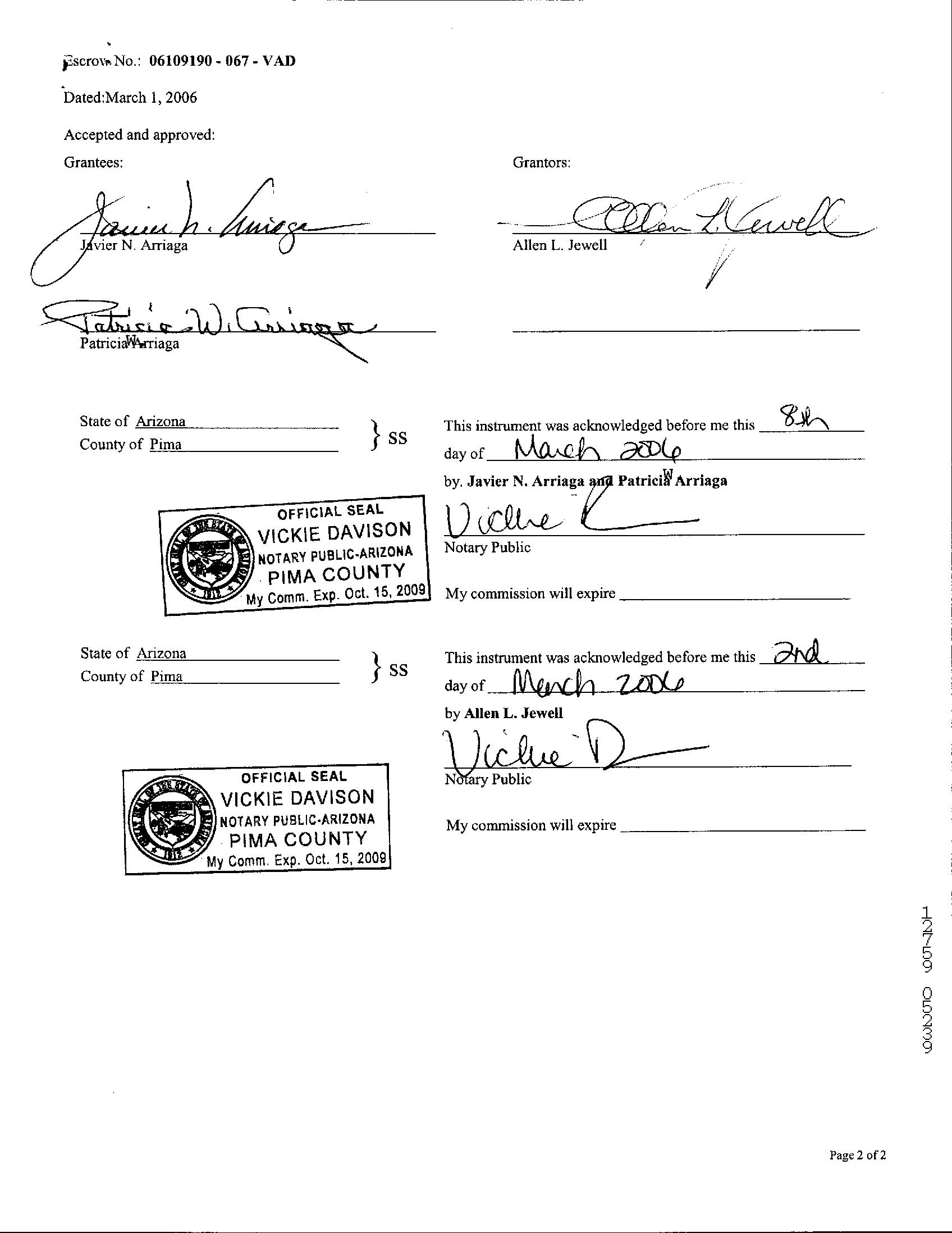 OWNER: ARRIAGA JAVIER N & PATRICIA JT/RS 12759 5238 03/13/2006