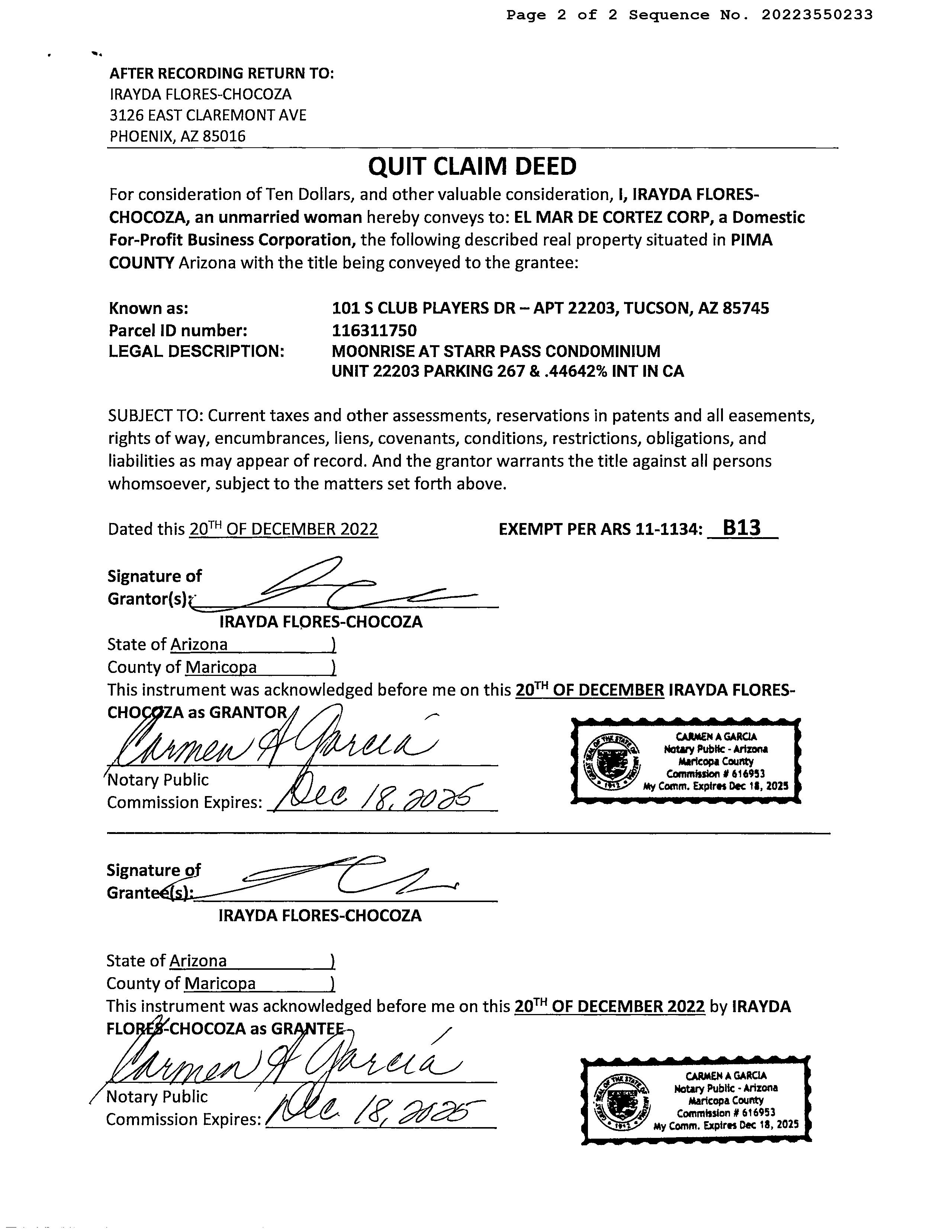 Date : 12/21/2022 / 12/20/2022 Deed Type : Quit