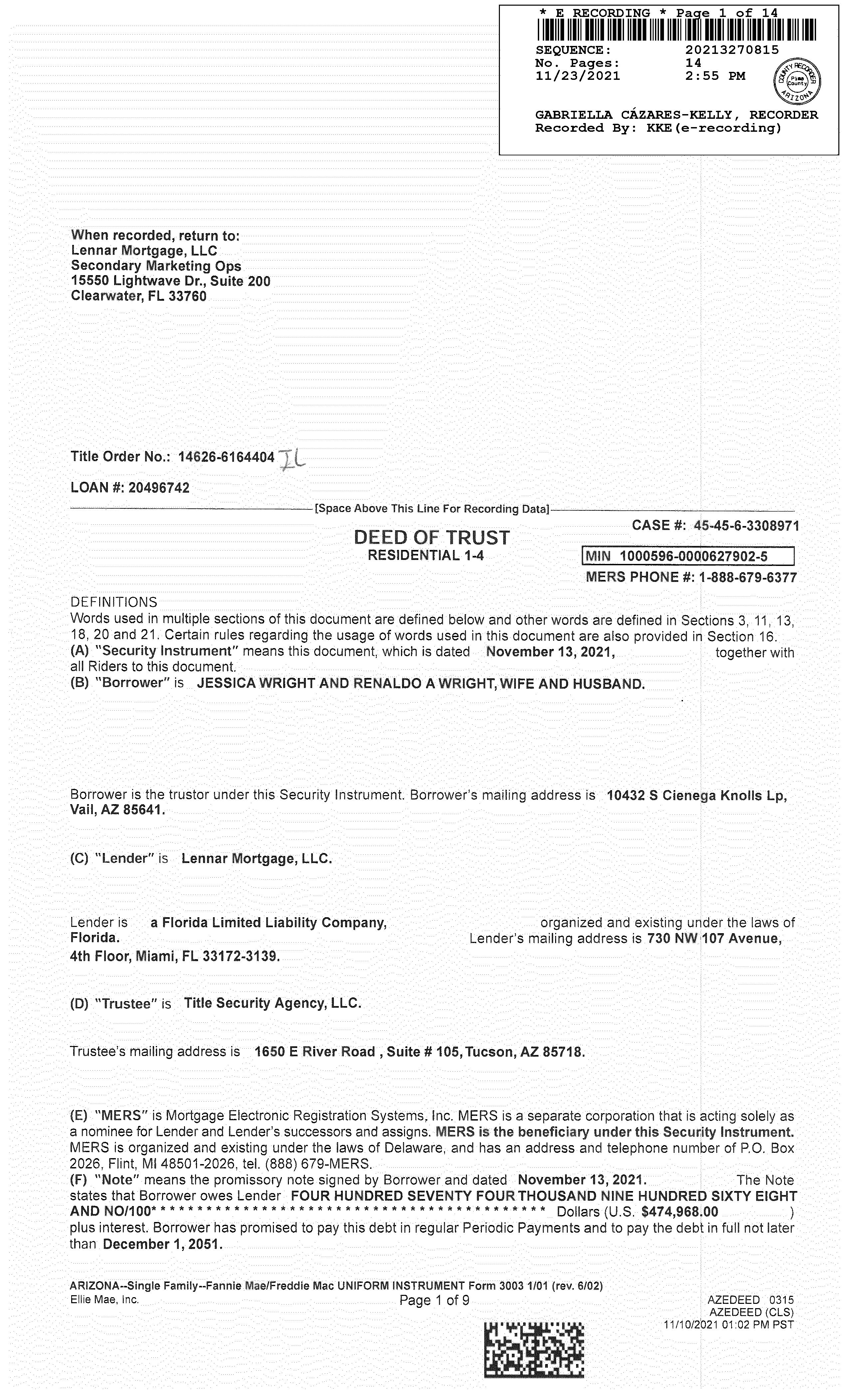 Know that our wiring instructions do not change so any communication is suspect. Our banking institution is First American Trust.