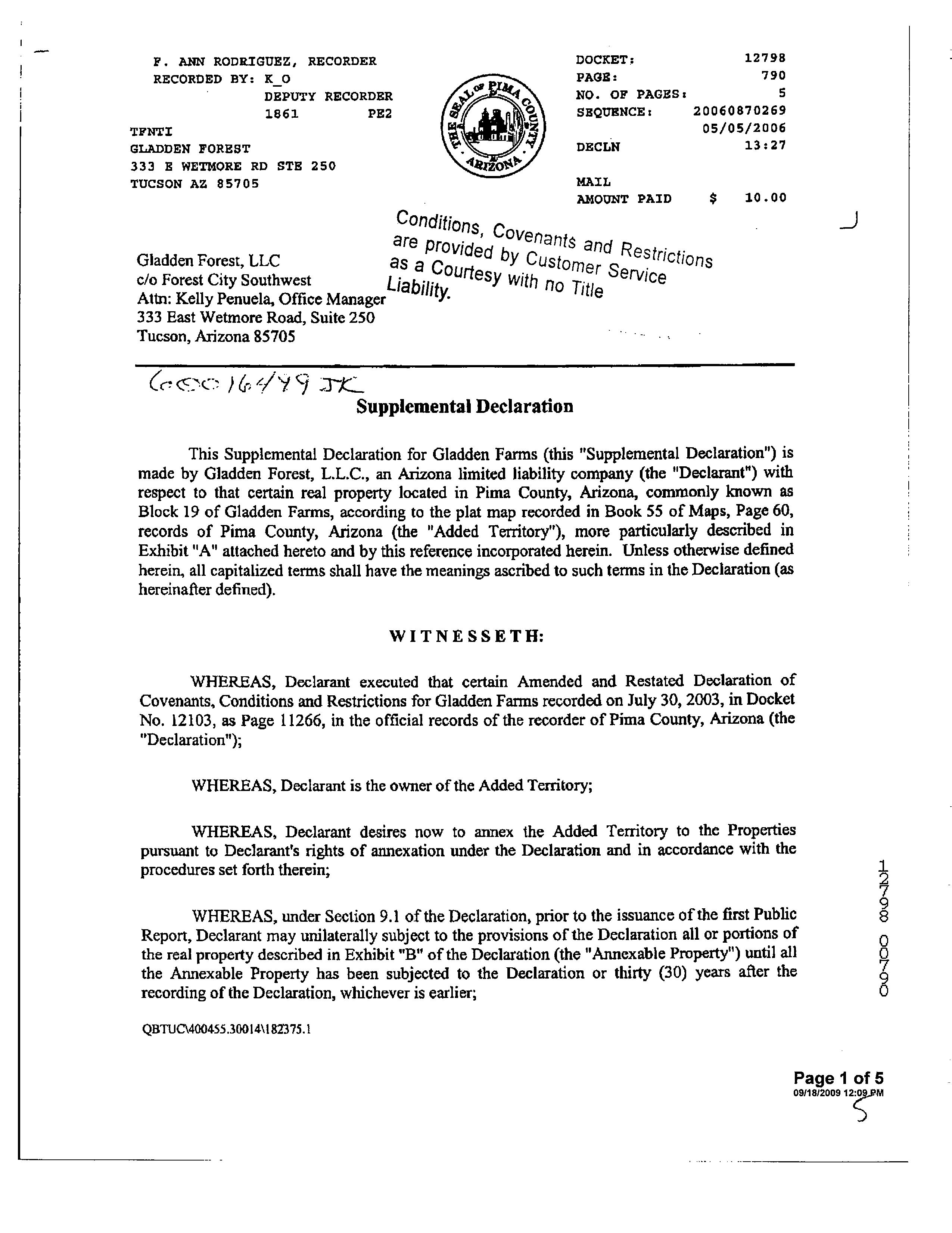 This information is furnished without fee and without benefit of a complete title search. No liability is assumed by First American Title. If it is desired that liability be assumed, you may apply for a policy of title insurance with First American Title Insurance Company.