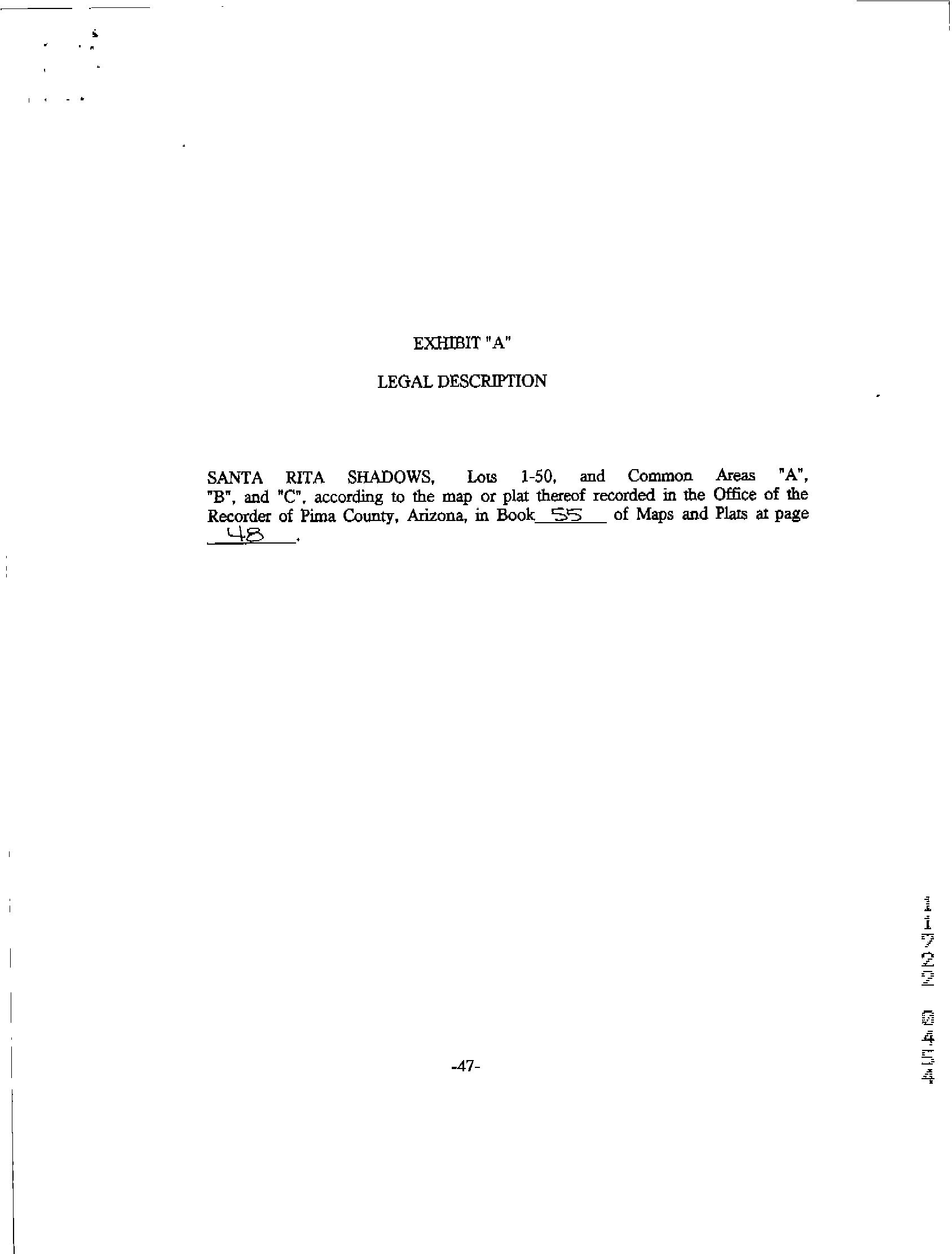 LegalDescriptionDetails LotNumber:46District:SANTARITAFCity,Municipality,Township:SANTARITARANCHSINGINGVALSubdivisionName:SANTARITASHADOWS Sec/Twn/Rng/Mer:SEC13TWN17SRNG15EBriefDescription:SANTARITASHADOWSLOT46Recorder'sMapRef:PLAT:48