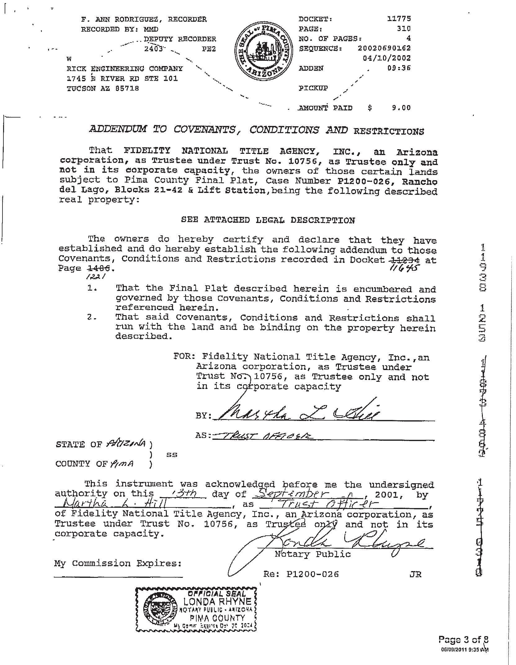 This information is furnished without fee and without benefit of a complete title search. No liability is assumed by First American Title If it is desired that liability be assumed, you may apply for a policy of title insurance with First American Title Insurance Company.