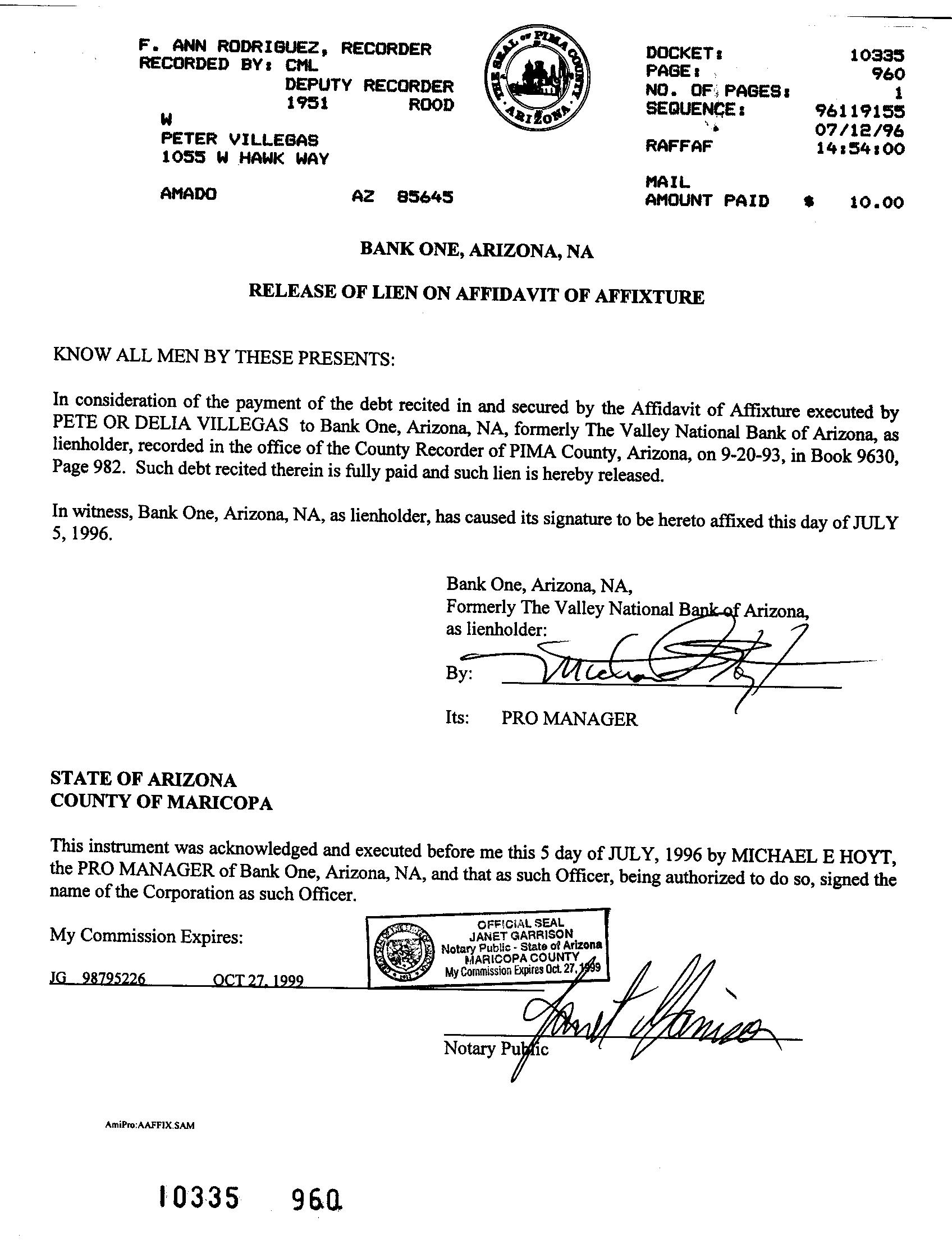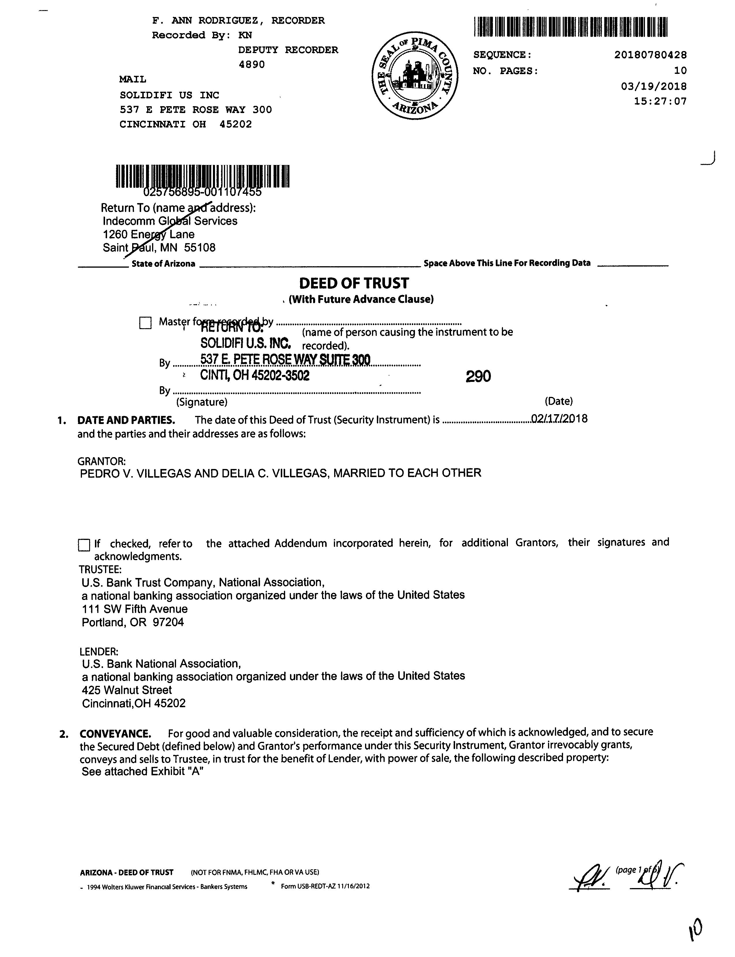 OWNER: VILLEGAS PEDRO V & DELIA C JT/RS     7339 389 08/03/1984