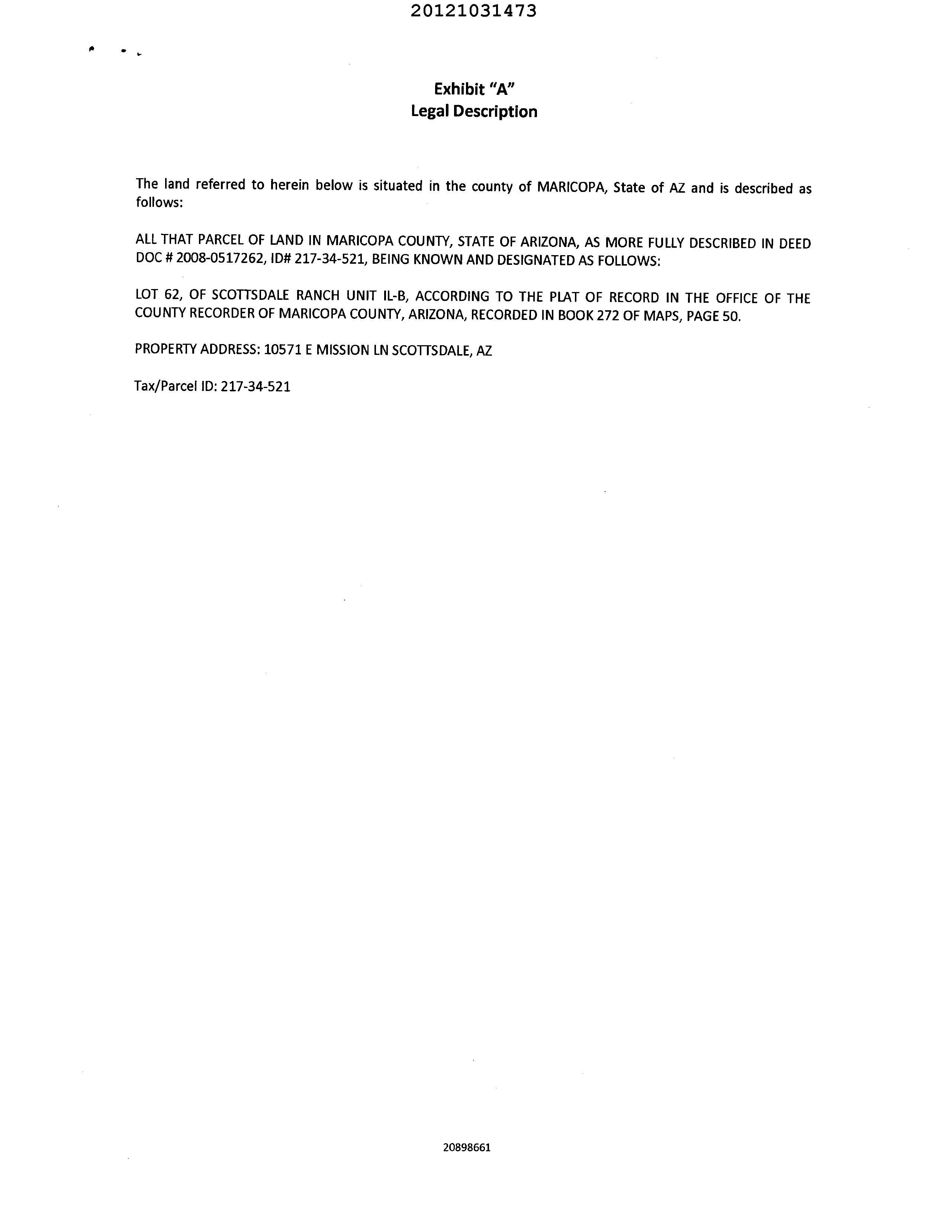 LegalDescriptionDetails LotNumber:62Unit:11-BSubdivisionName:SCOTTSDALERANCHUNIT11-BSec/Twn/Rng/Mer:SEC28TWN3NRNG5EBriefDescription: SCOTTSDALERANCHUNIT11-BMCR272-50Recorder'sMapRef:MB27250