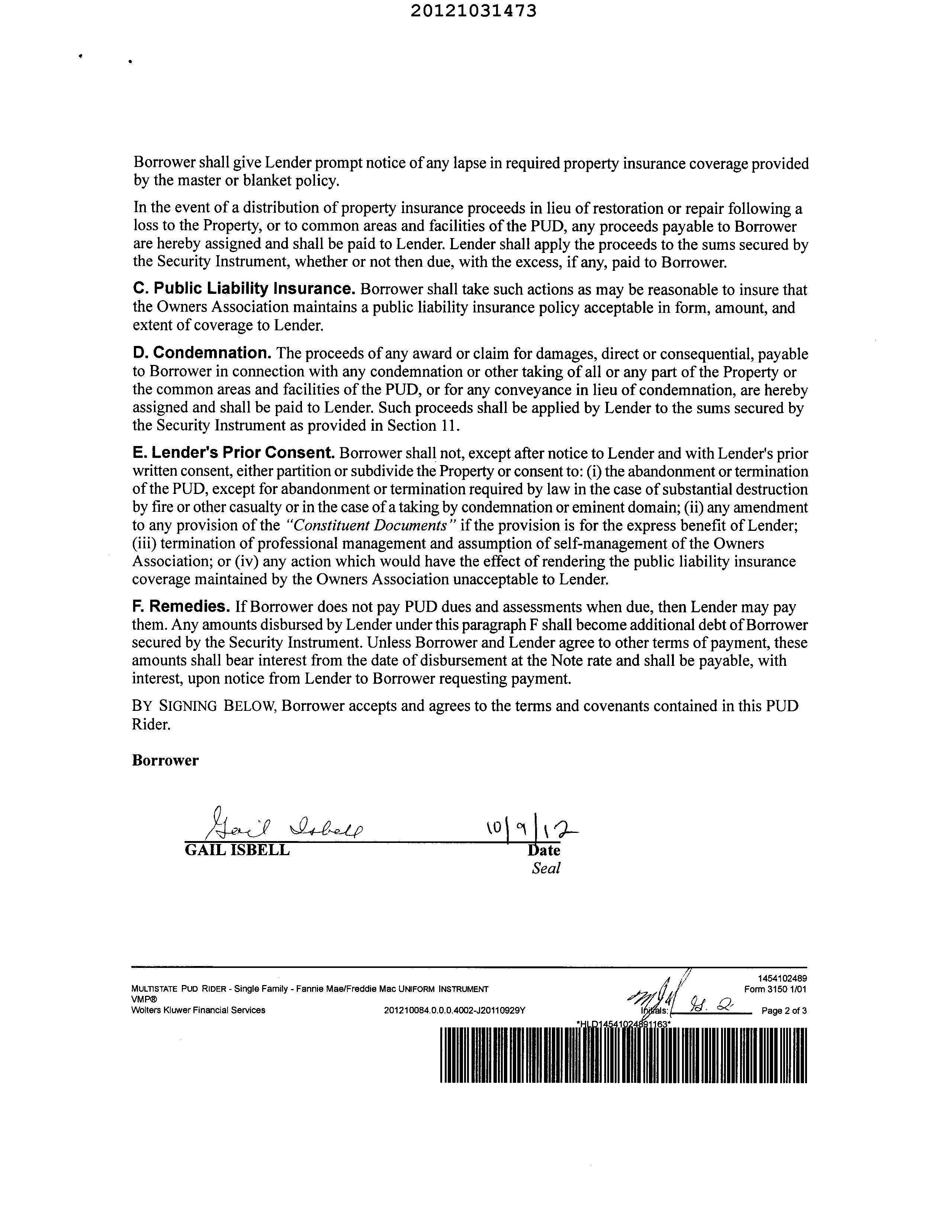 PrimaryOwnerName(s) GAILGWENDOLYNISBELLREVOCABLELIVINGTRUST Vesting RevocableLivingTrust