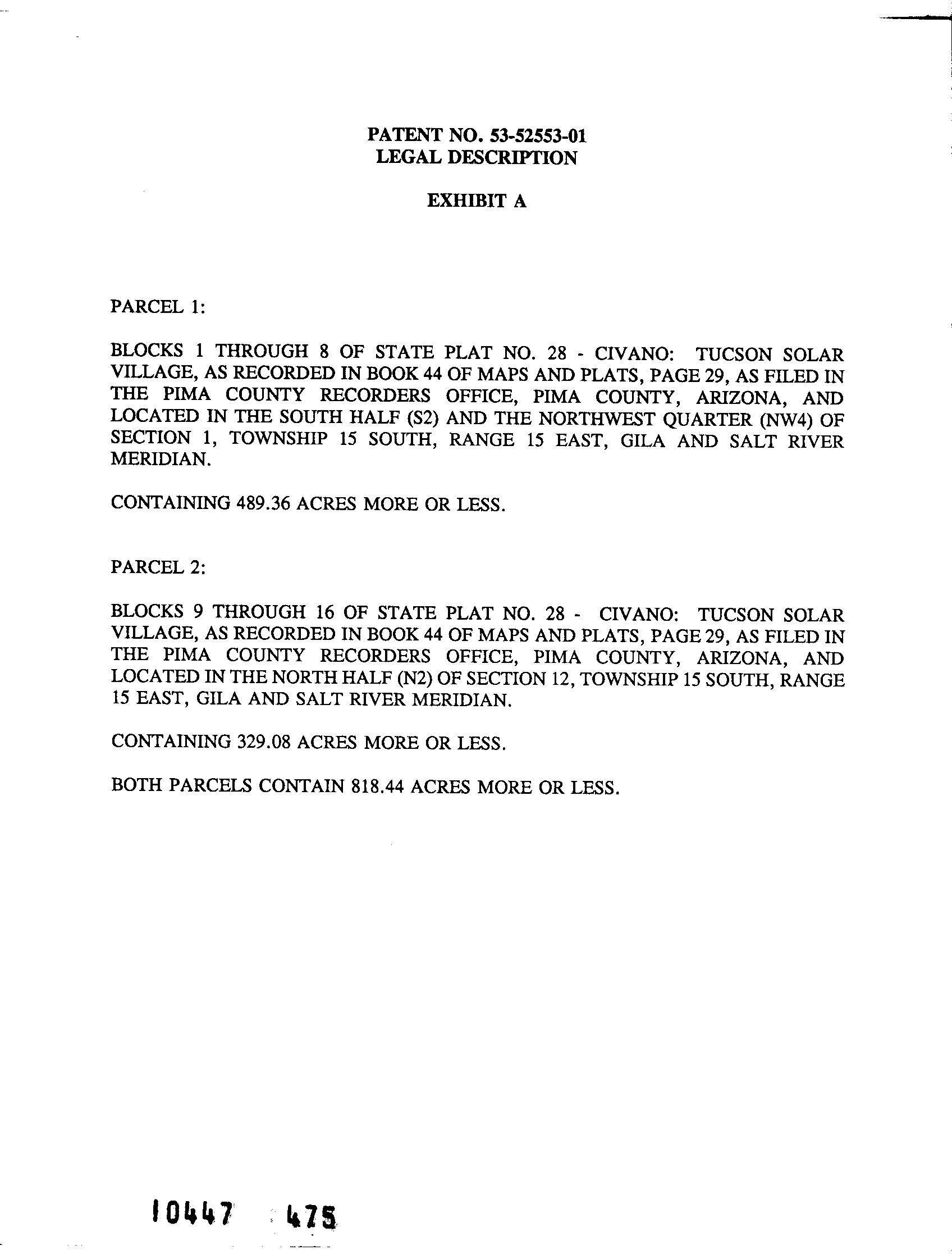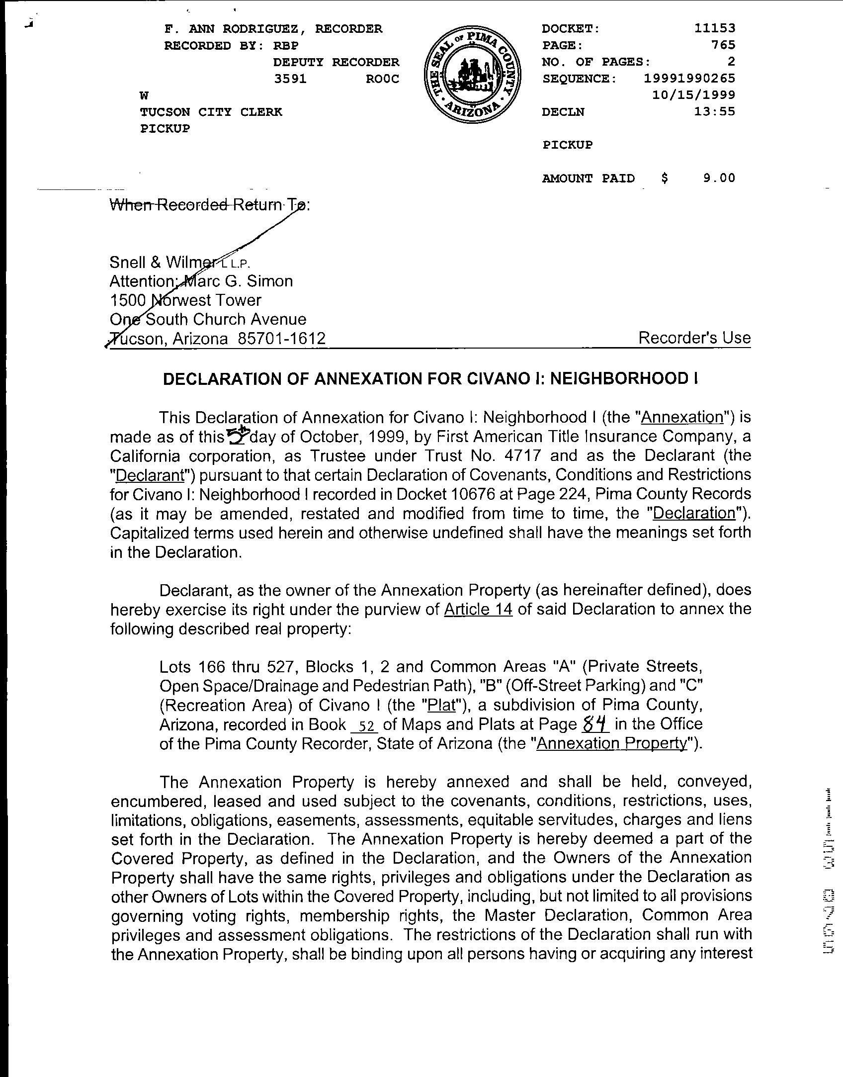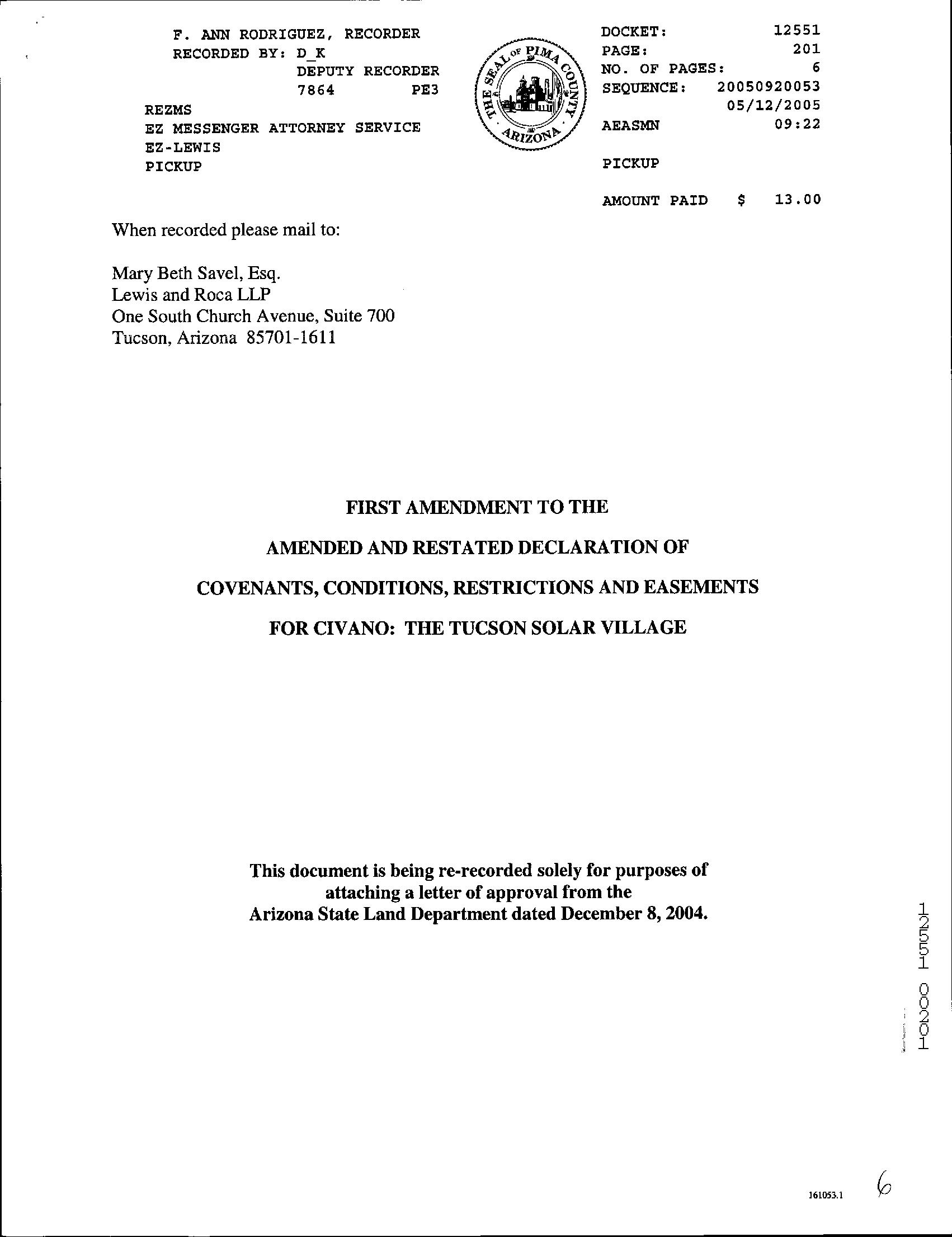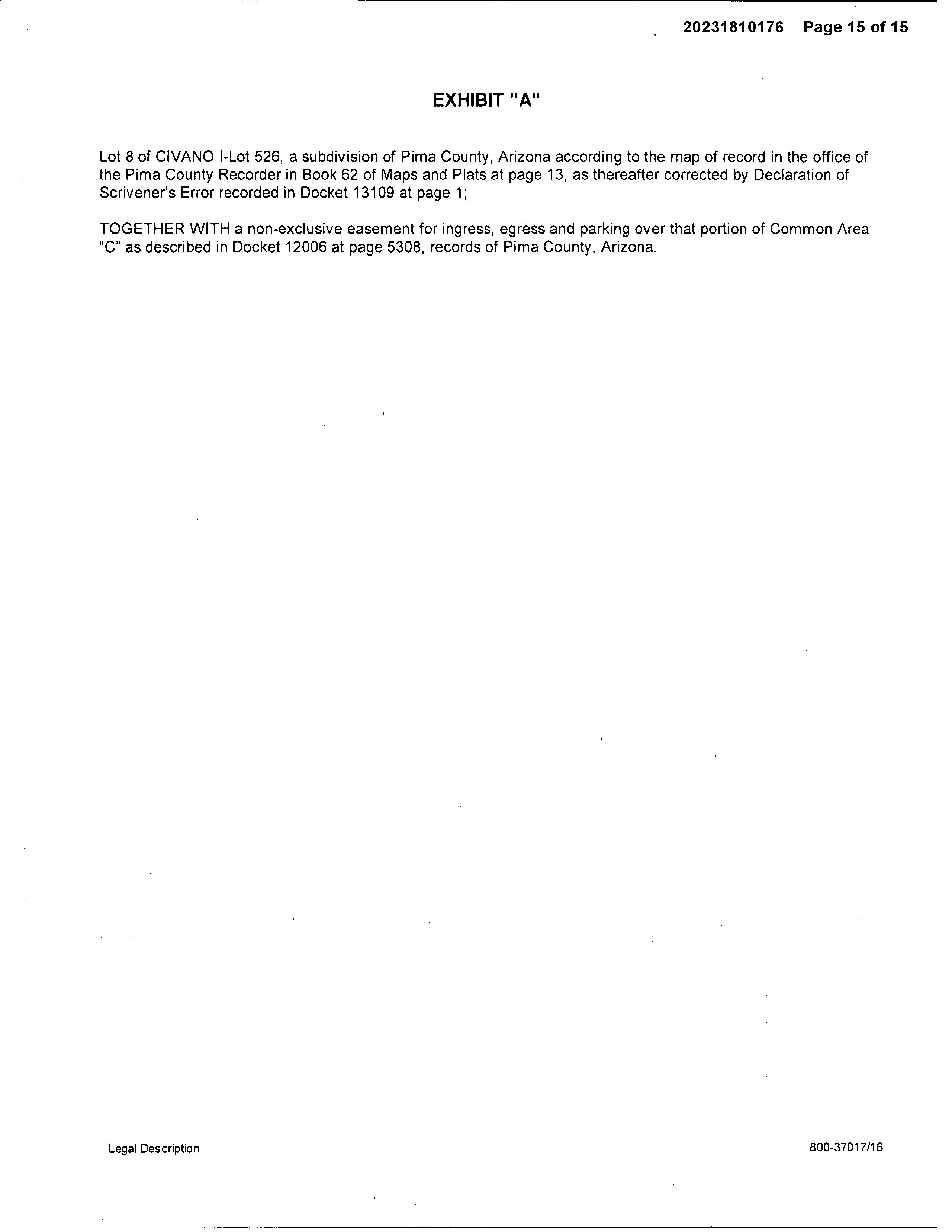 Legal Description : Civano I Lot 526 Resub Lot 8
