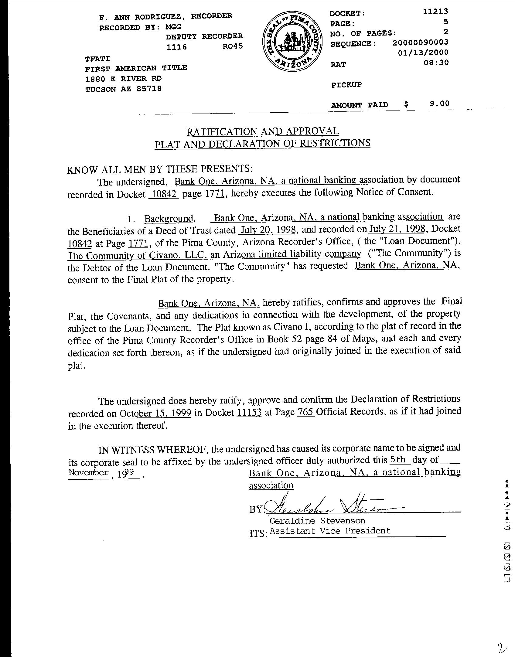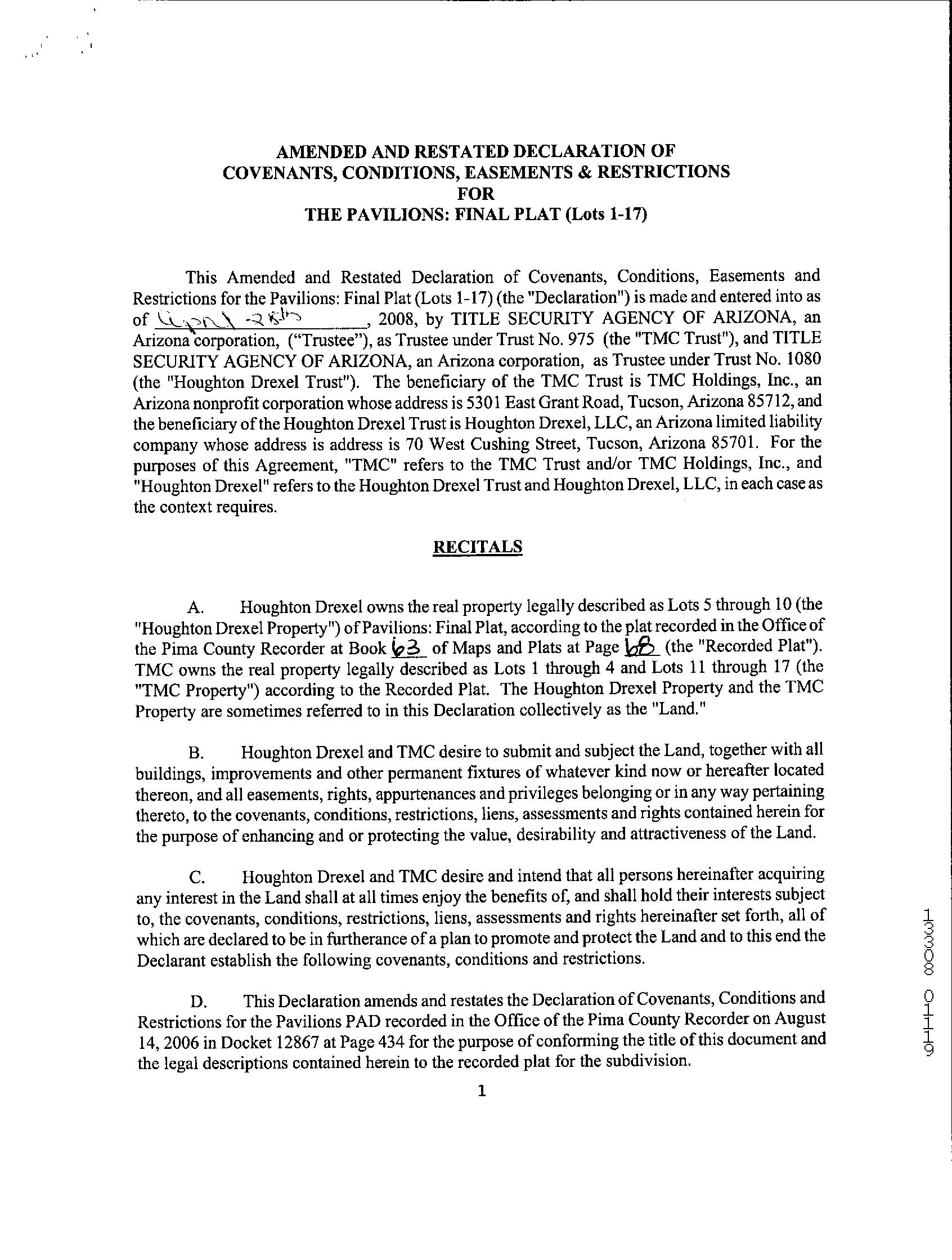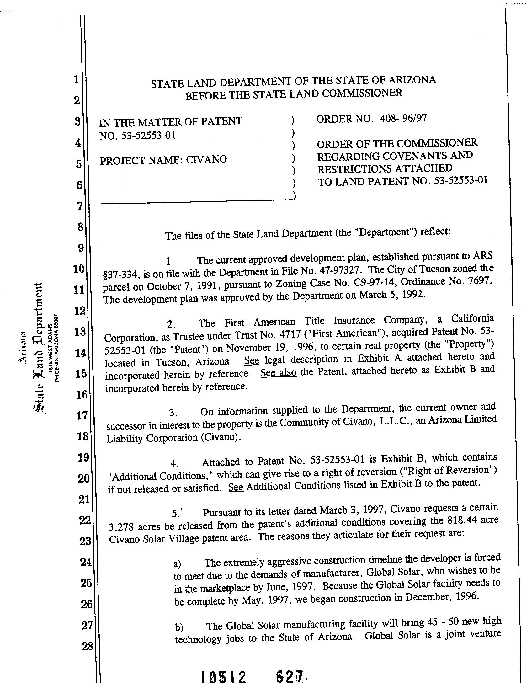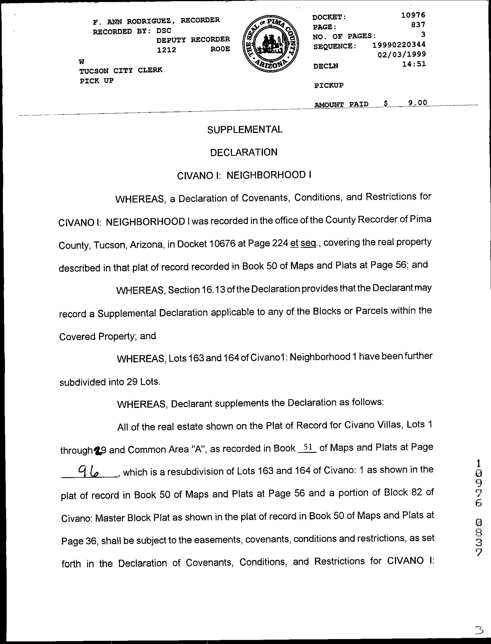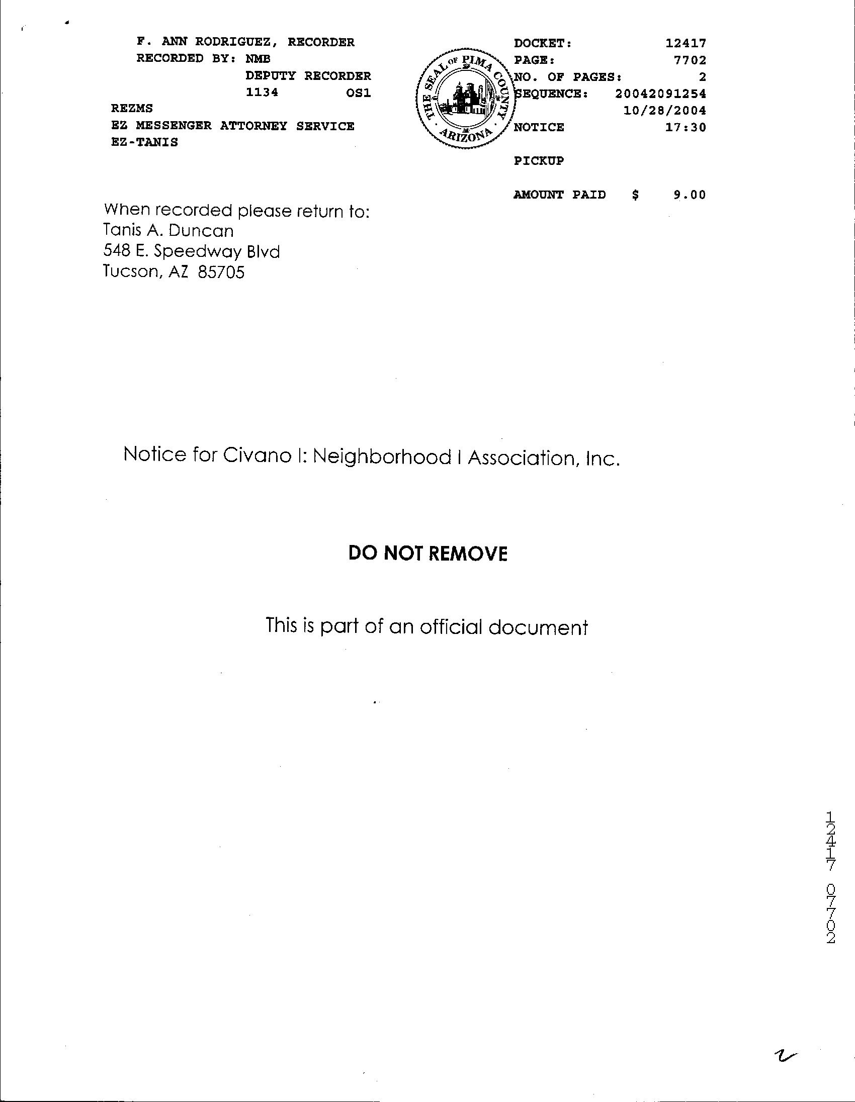 Legal Description : Civano I Lot 526 Resub Lot 8