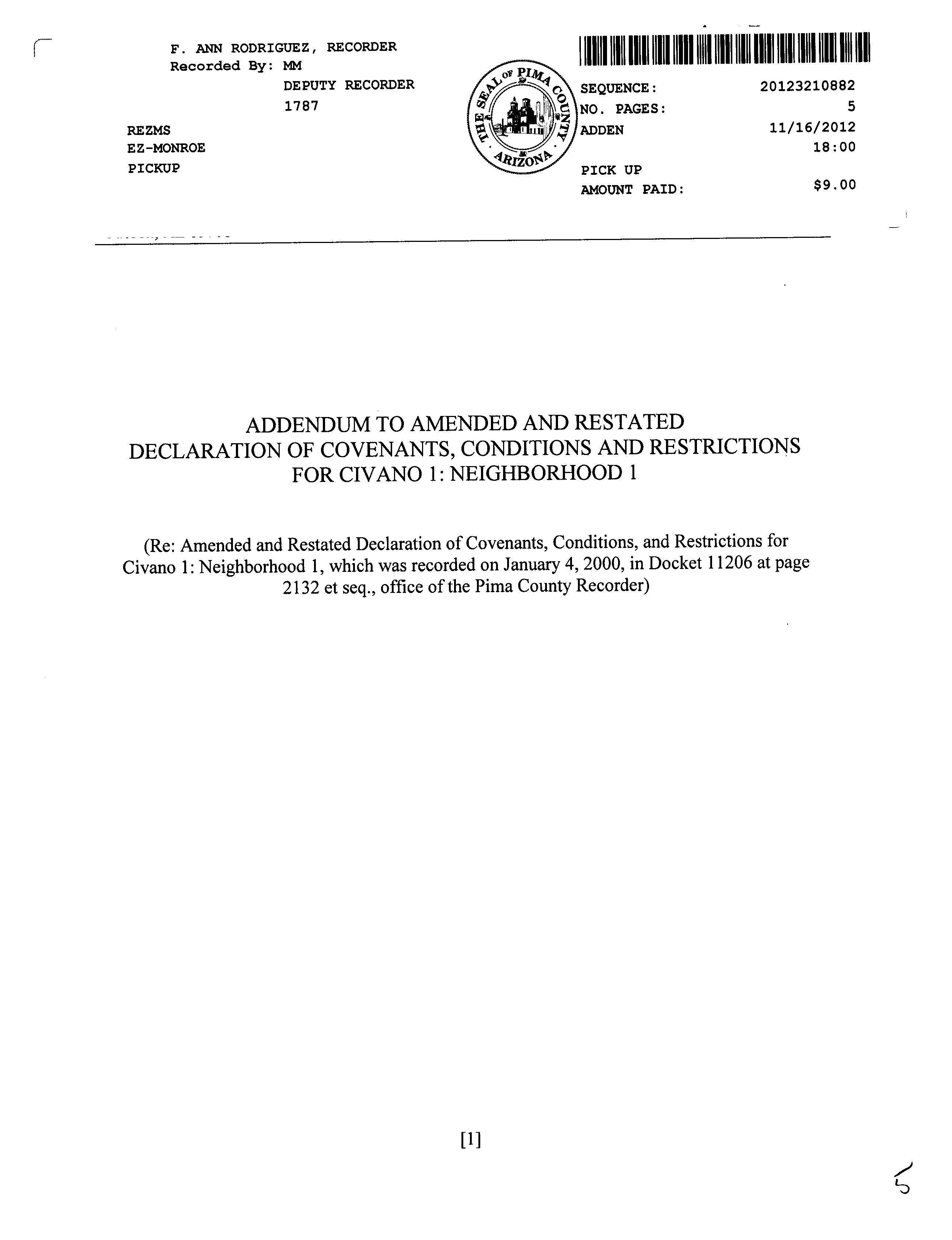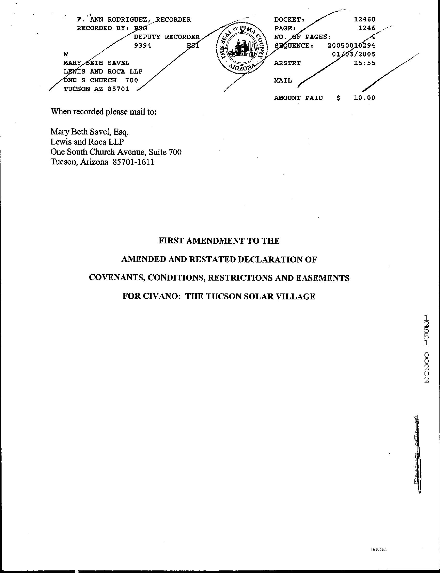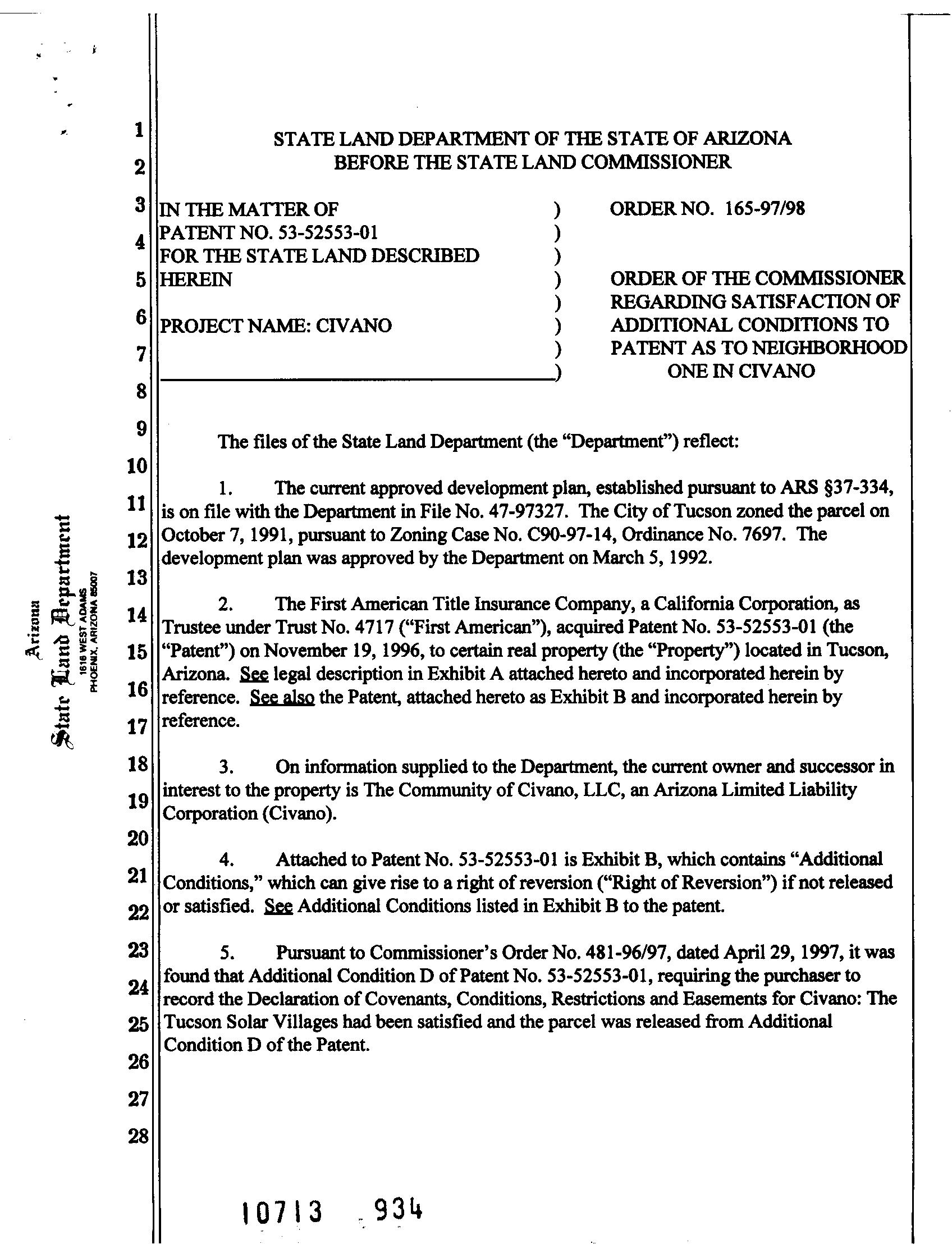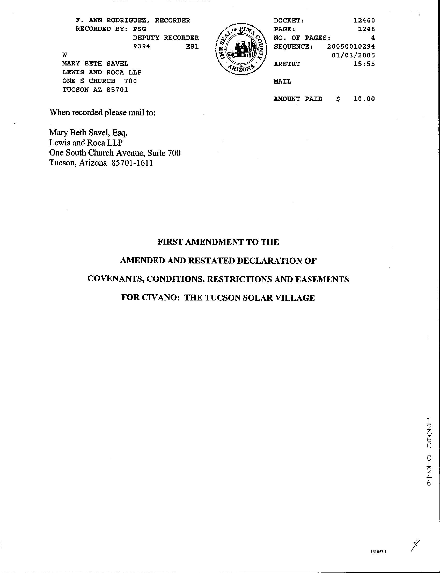 Legal Description : Civano I Lot 526 Resub Lot 8