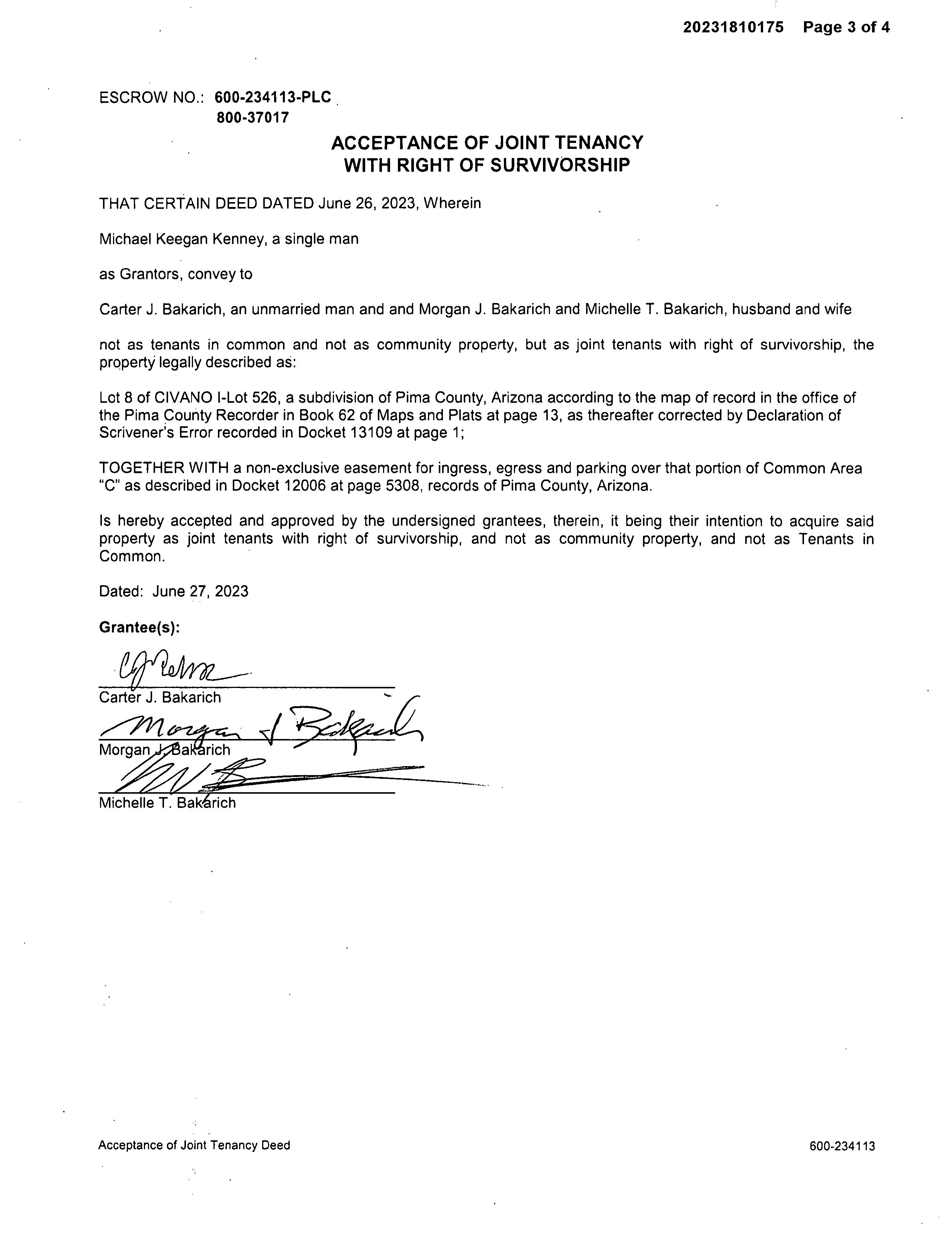 Owner Name : Bakarich Carter J & Morgan J / Bakarich Michelle T