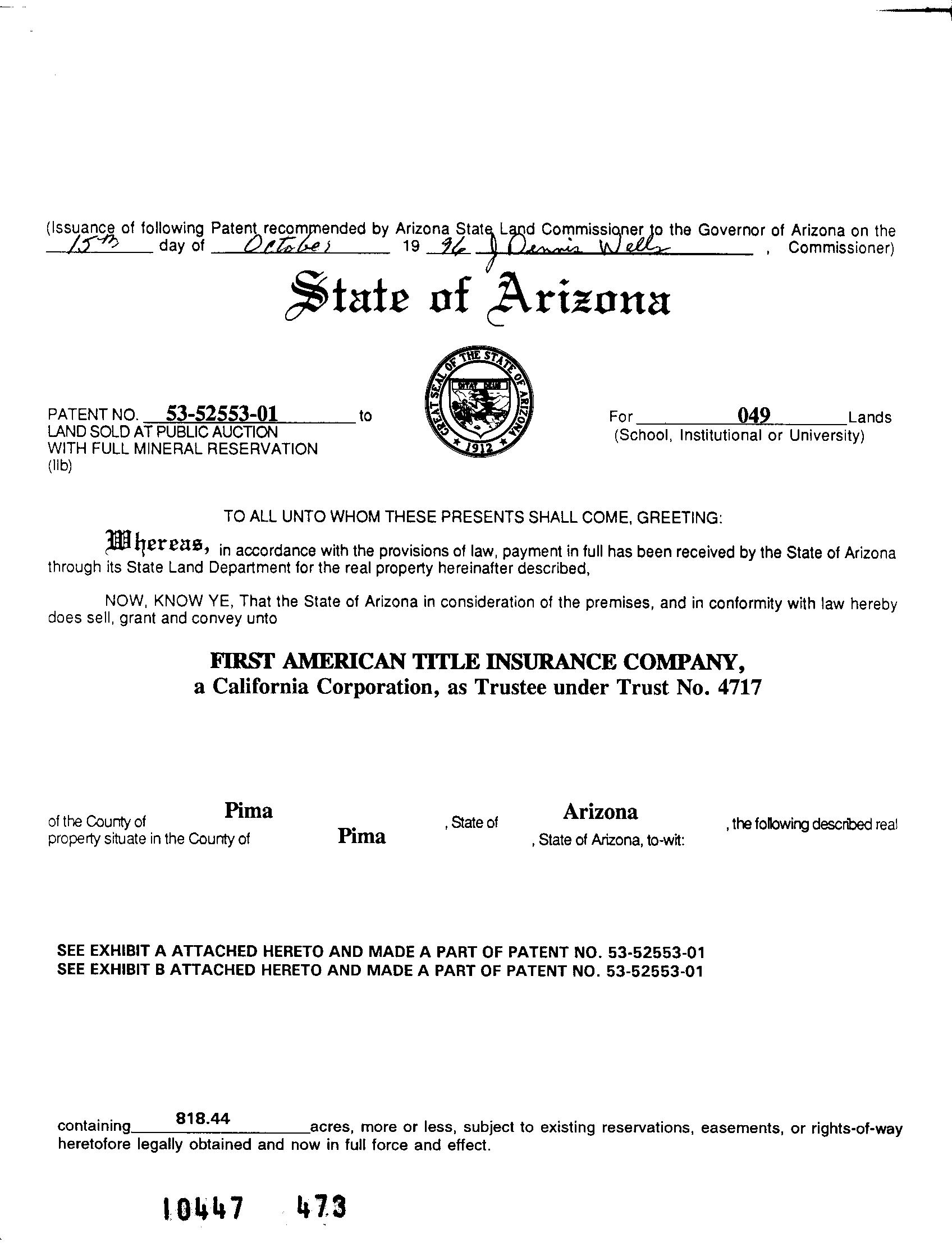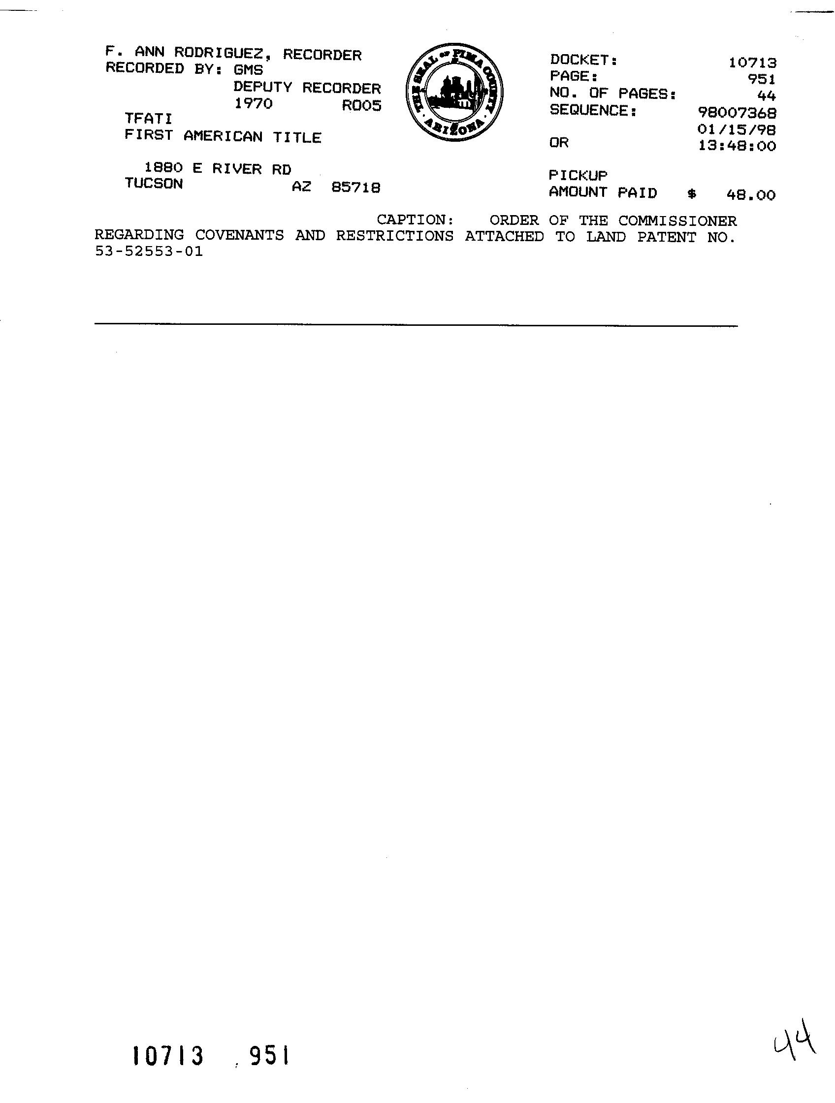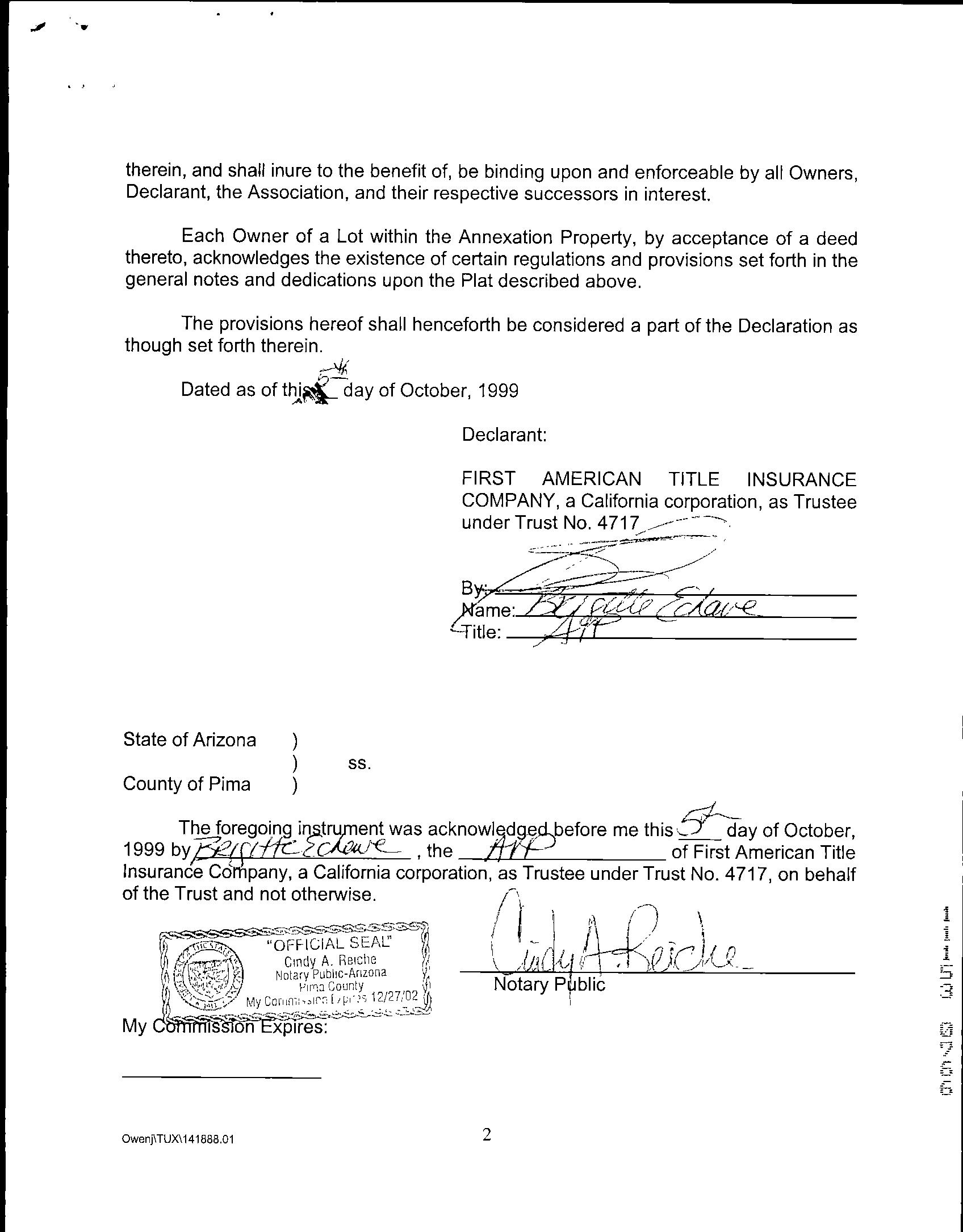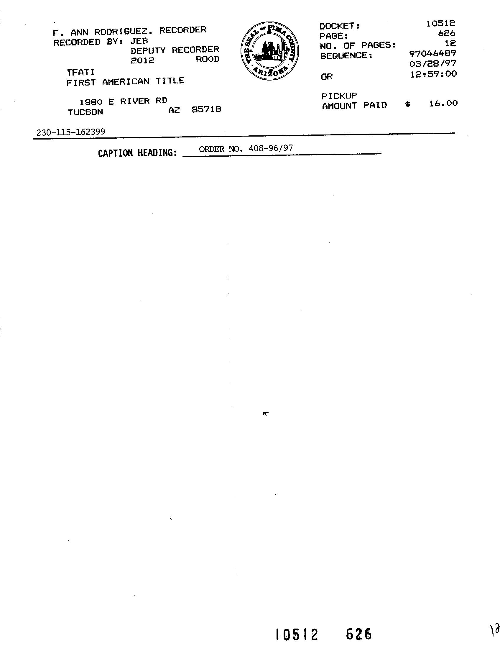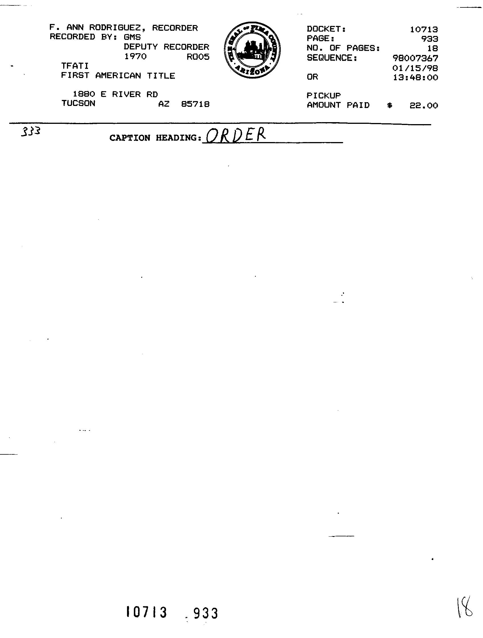 Mailing Address : 2331 N Tanque Verde Pl, Tucson AZ 85749-9246 R034