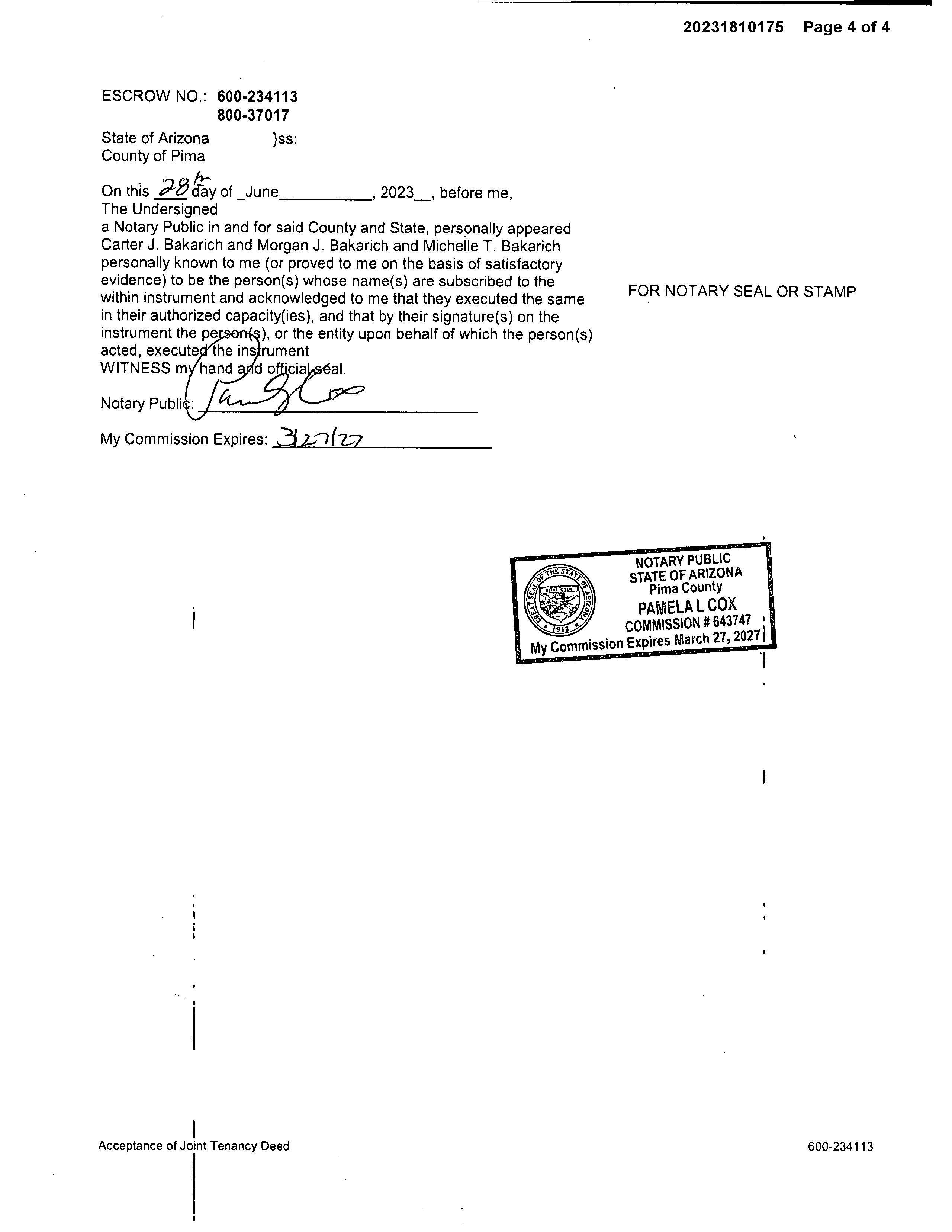 OWNER: BAKARICH CARTER & MORGAN  AFFIDAVIT    2023 1810175 06/30/2023