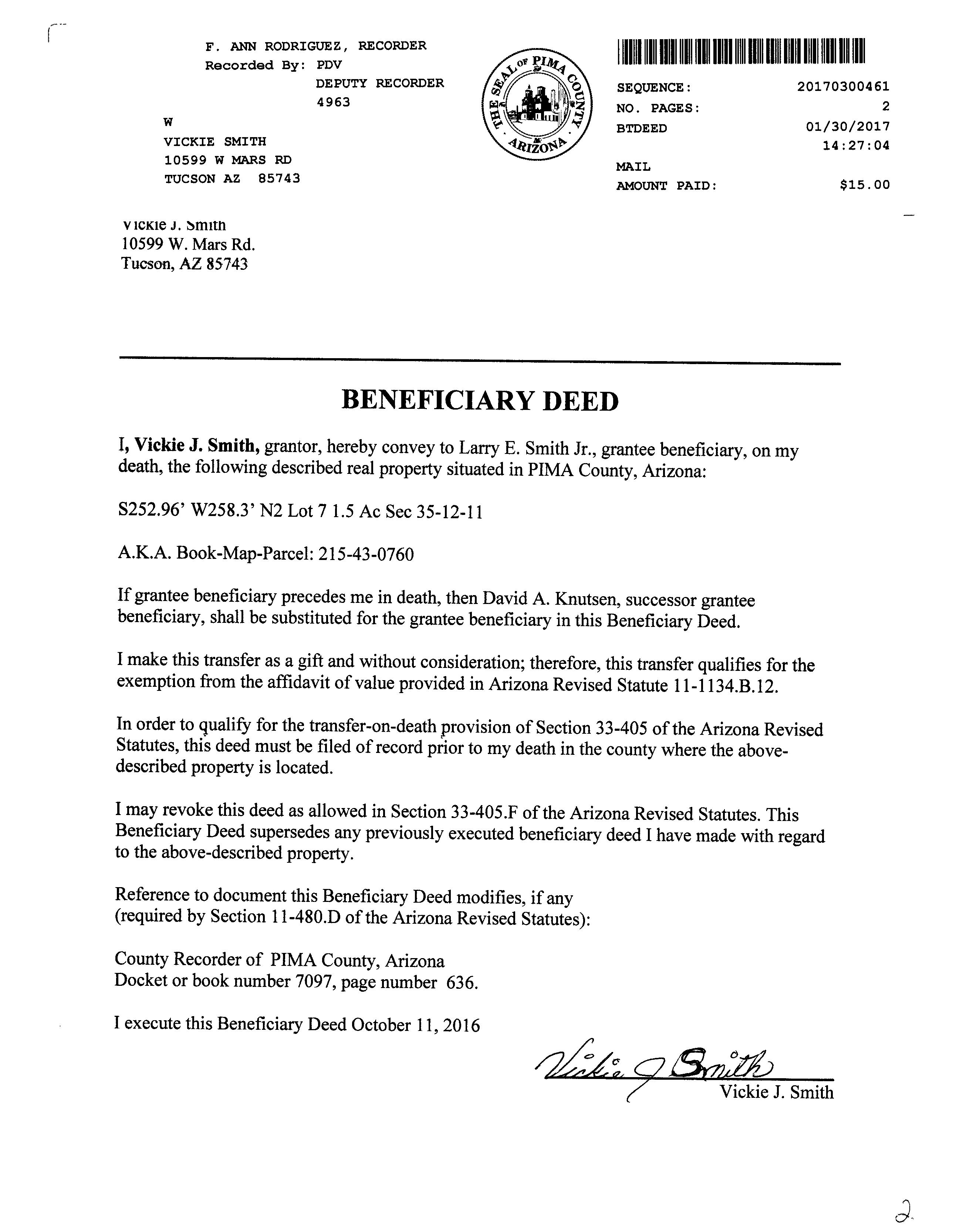 Mailing Address : 10599 W Mars Rd, Tucson AZ 85743-8731 R028
