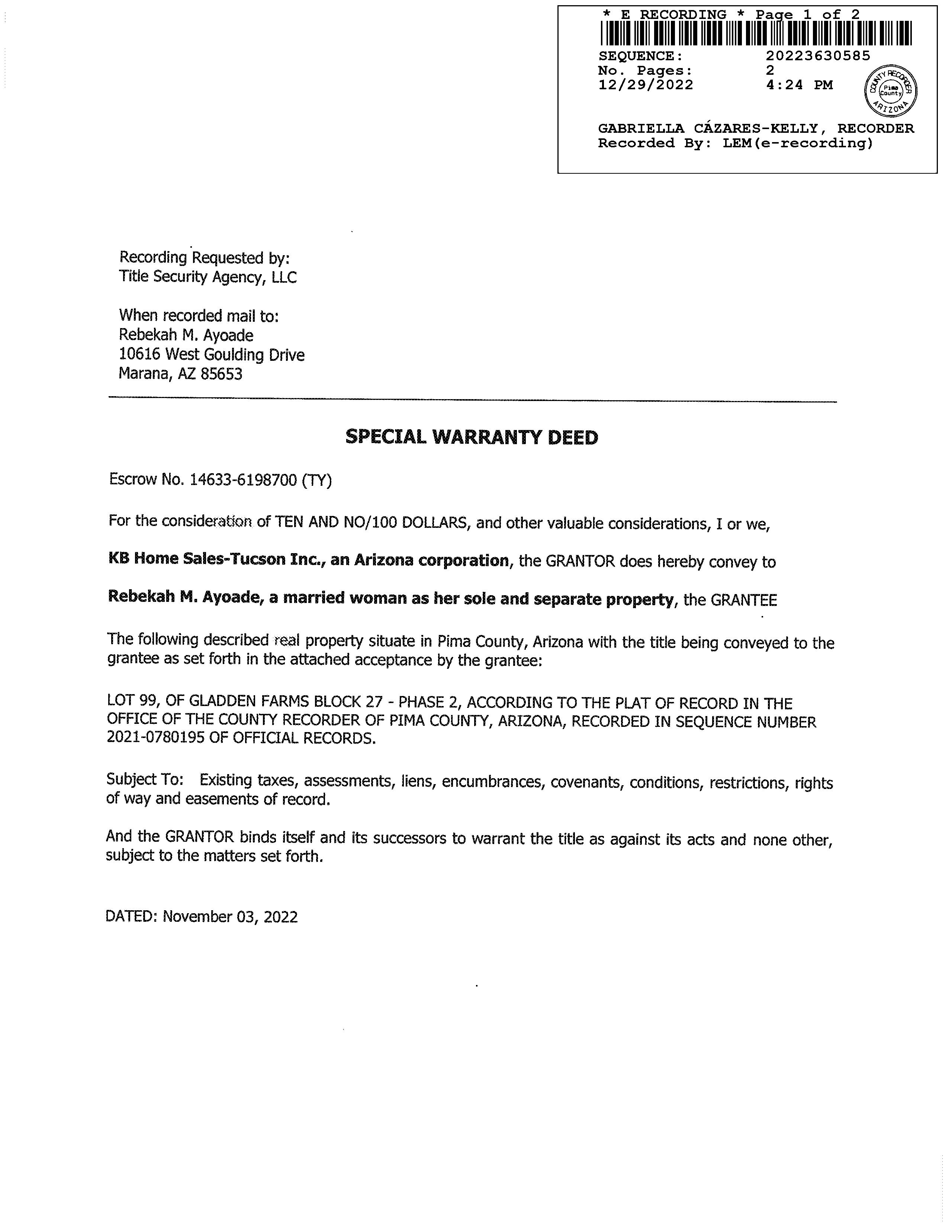 Subject Property : 10616 W Goulding Dr Marana AZ 85653