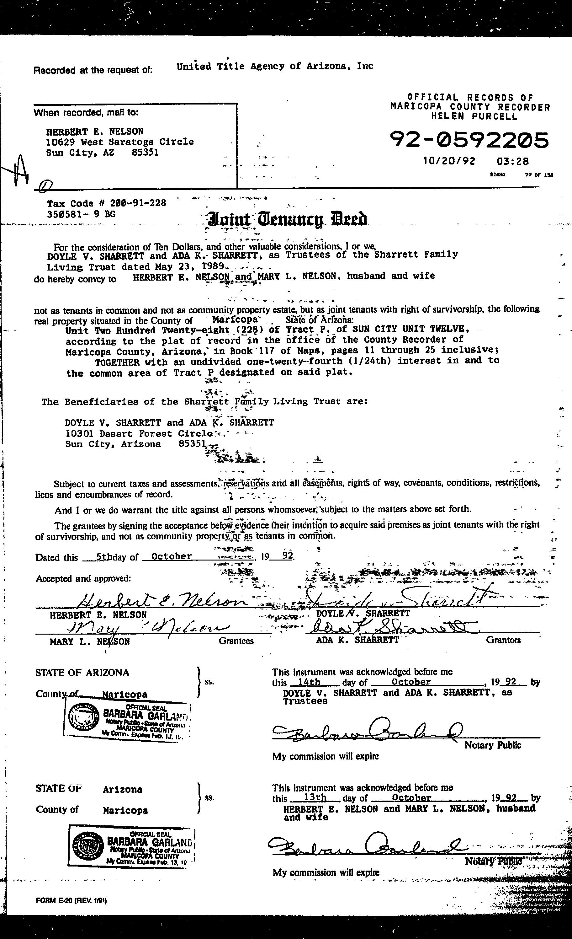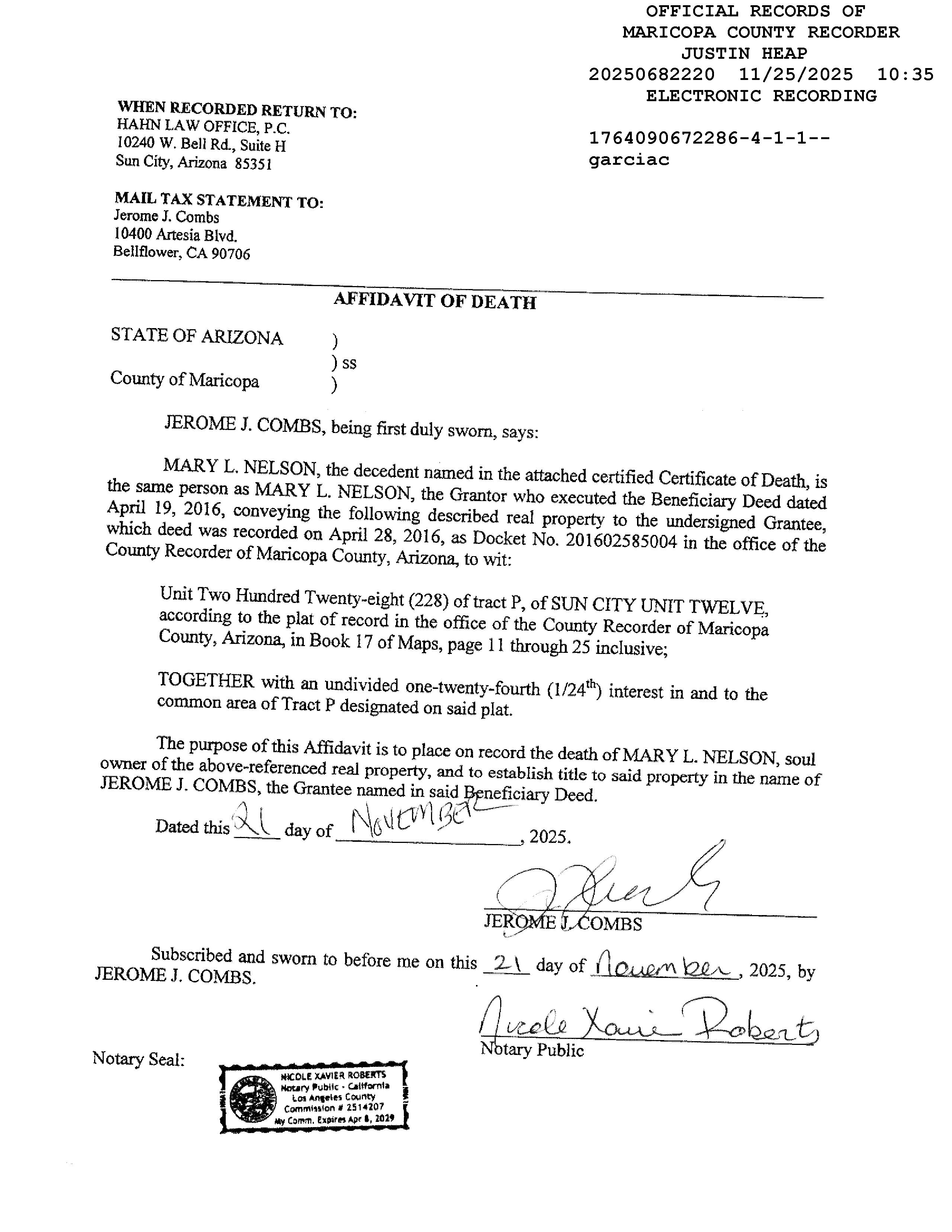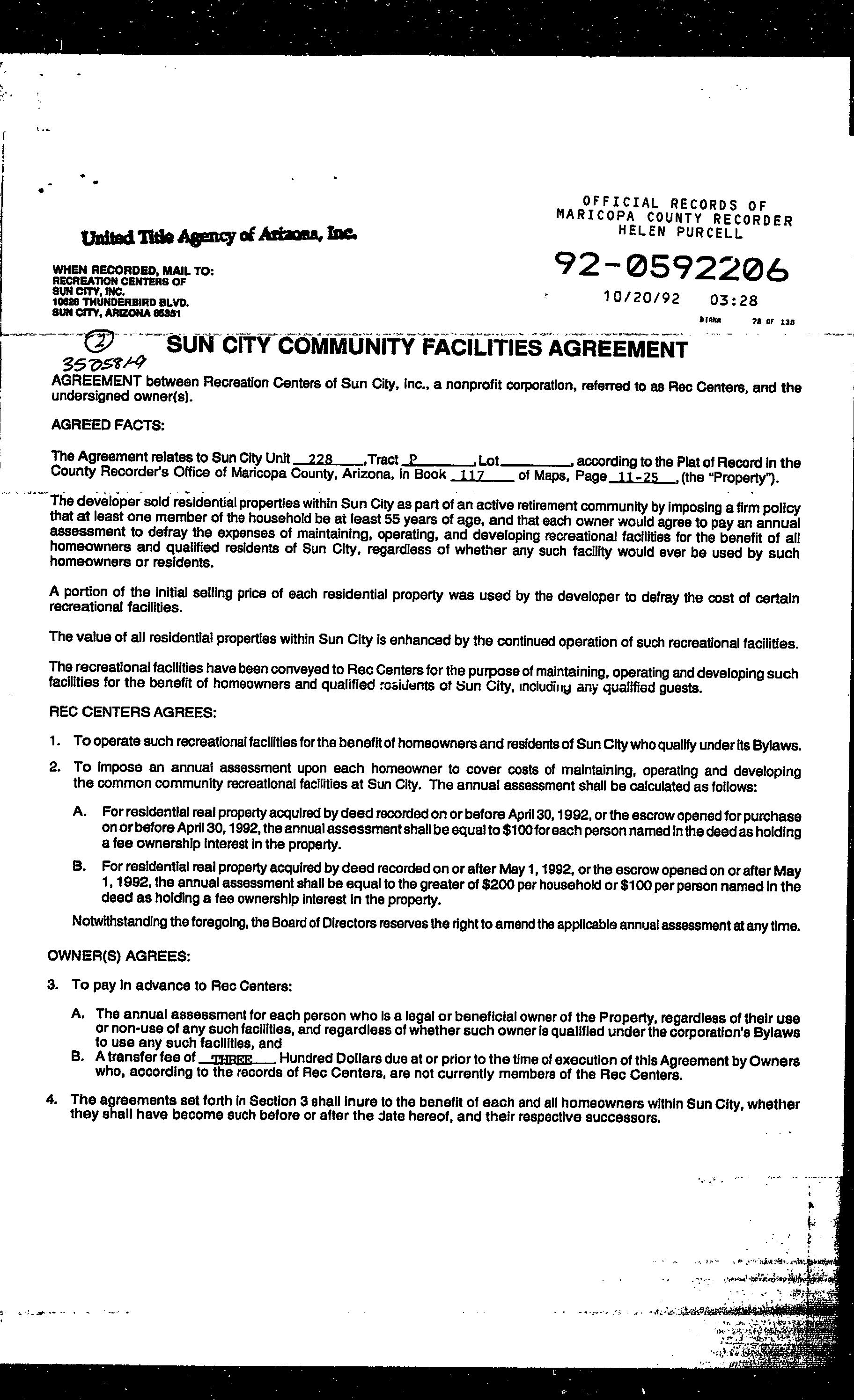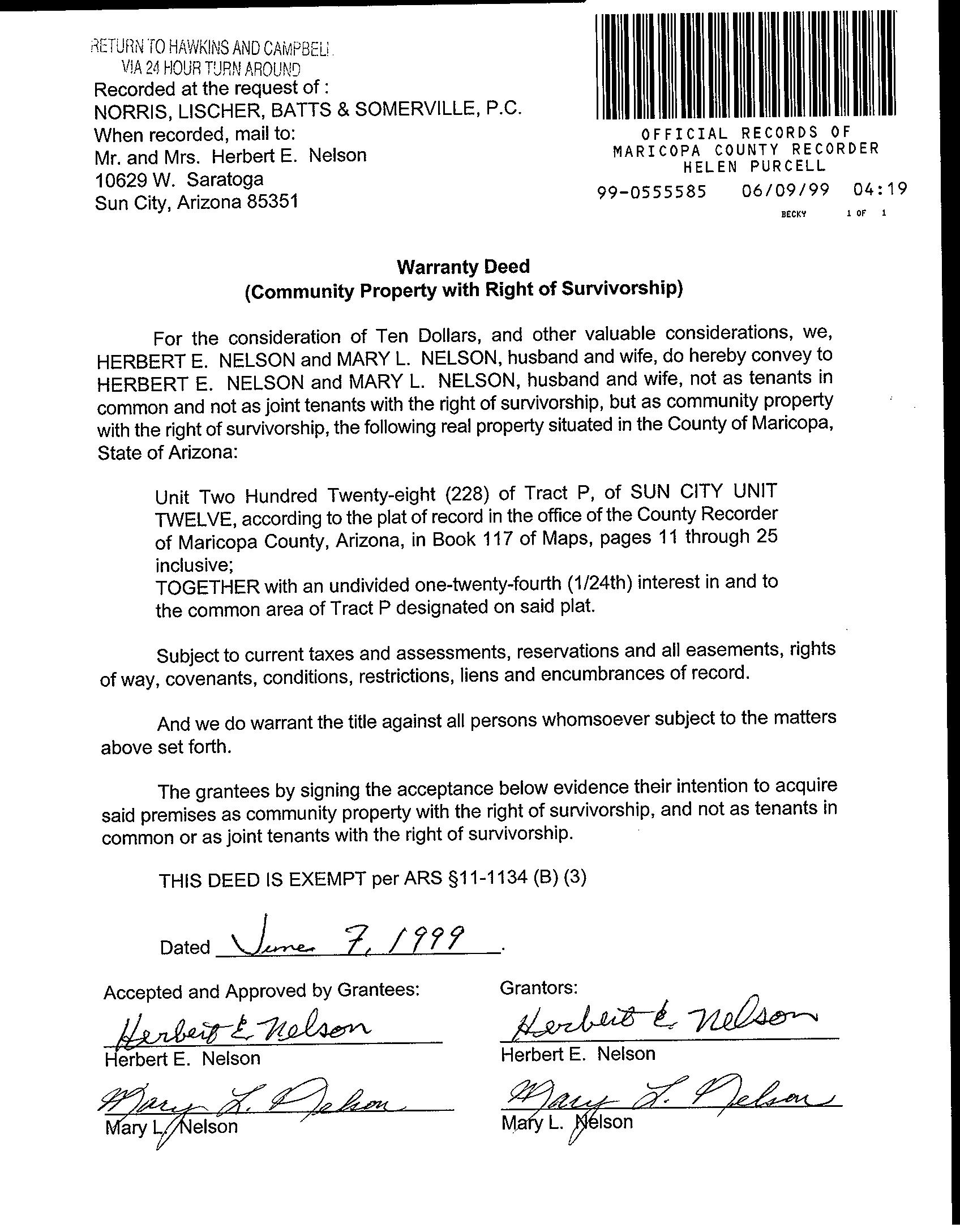LegalDescriptionDetails LotNumber:228Unit:12SubdivisionName:SUNCITYUNIT12TractNo:PSec/Twn/Rng/Mer:SEC8TWN3NRNG1EBriefDescription:SUNCITYUNIT TWELVEUNIT228TRACTPTOGWITHANUND1/24INTIN&TOCOMAREARecorder'sMapRef:MB11725 CurrentOwnershipInformation