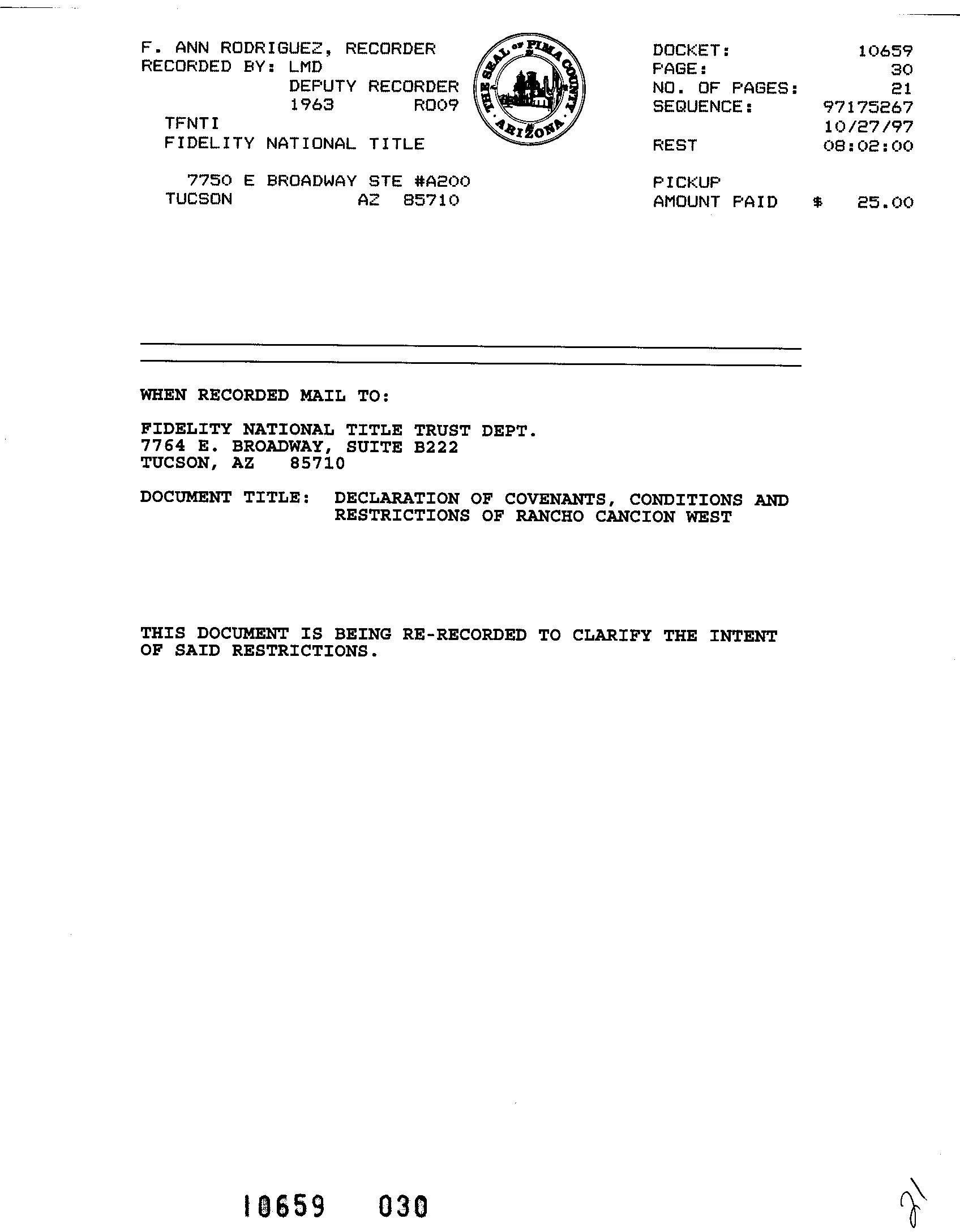 Mailing Address : 10679 E Placita Guajira, Tucson AZ 85730-5815 C067