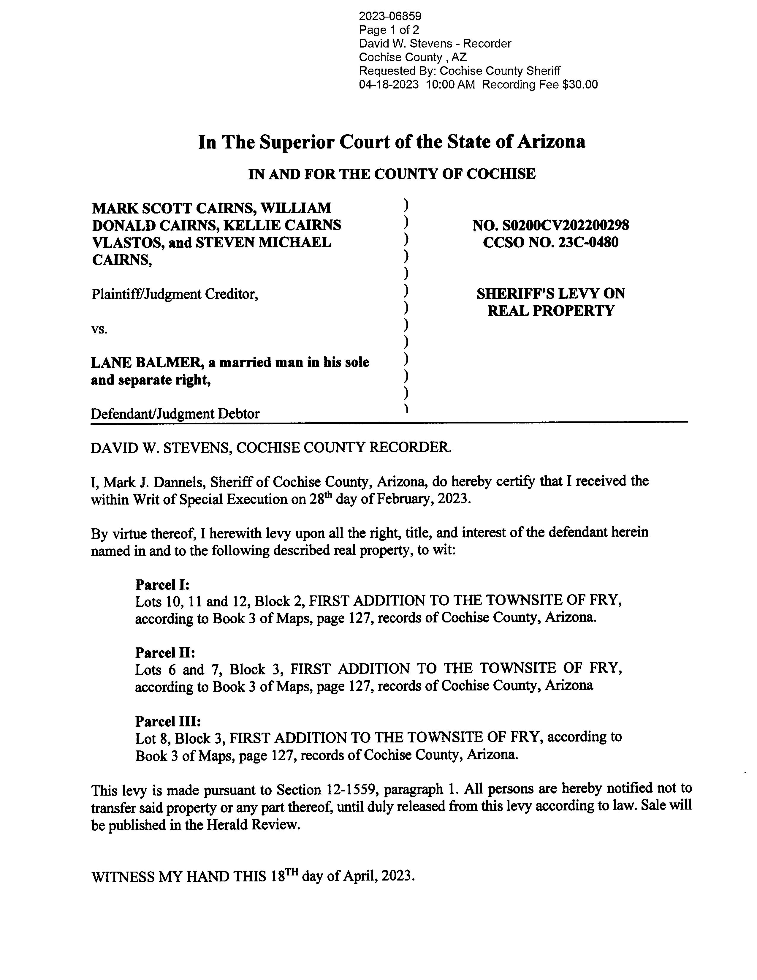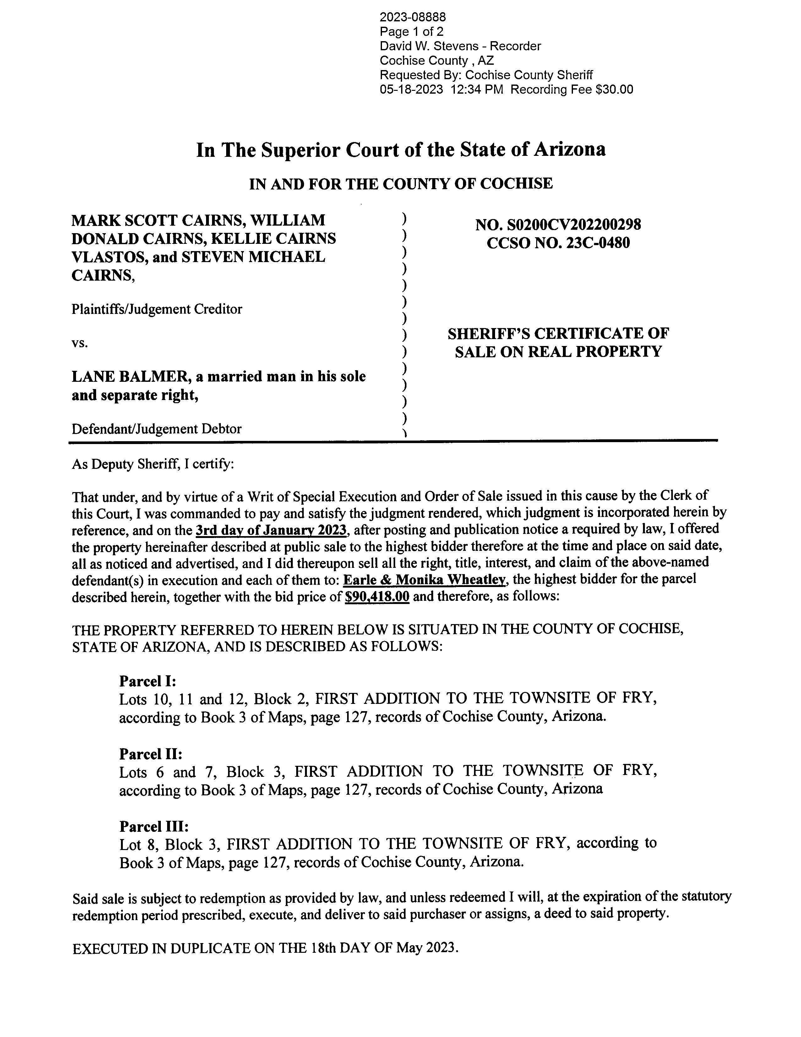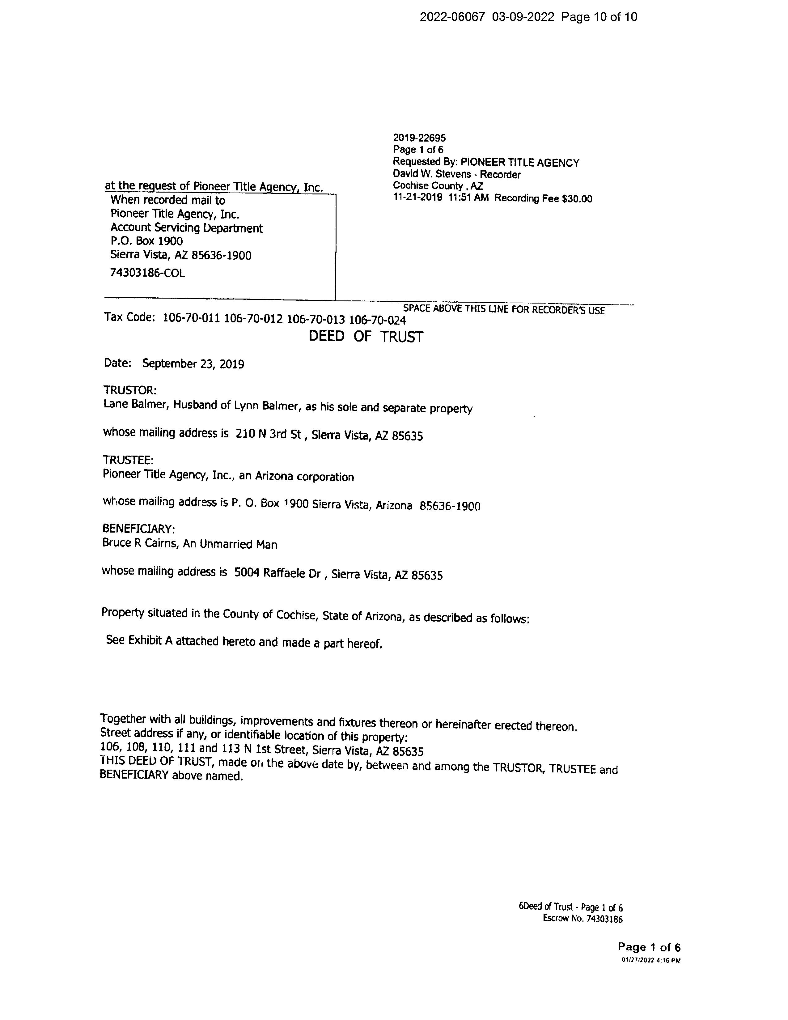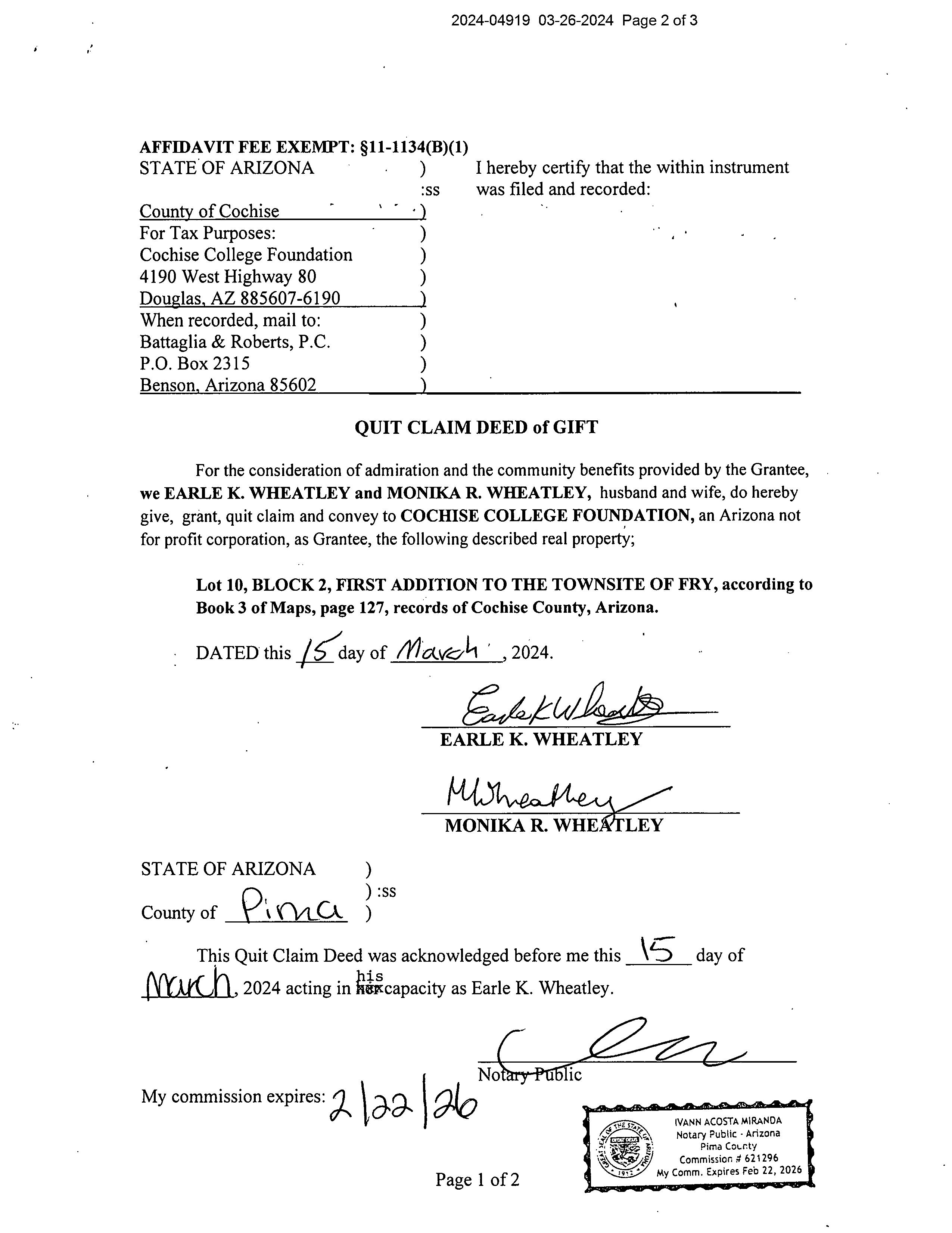 CURRENT OWNER(S) COCHISE COLLEGE FOUNDATION