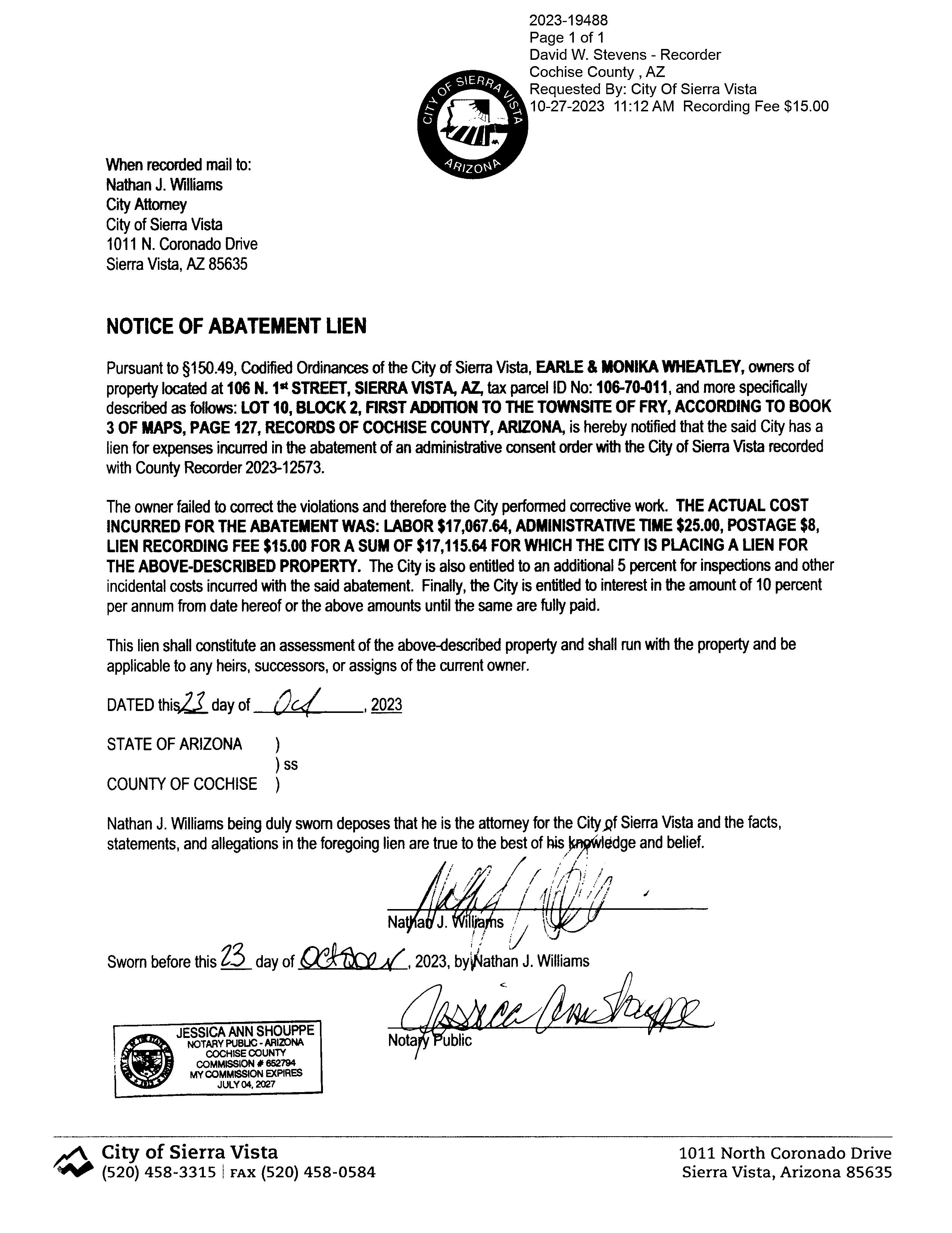 SITUS: 106 N 1ST ST SIERRA VISTA 85635-1941
