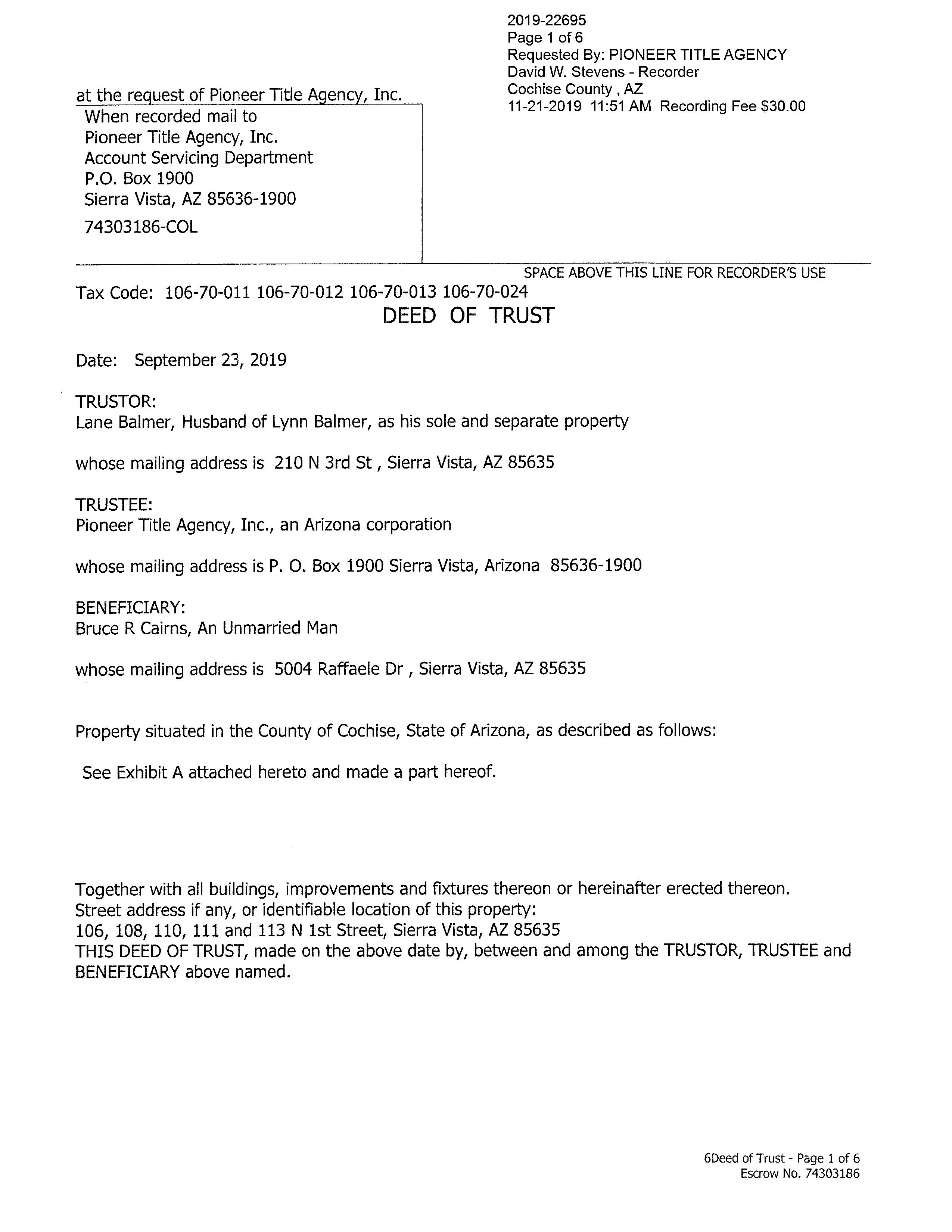 Subject Property : 106 N 1st St Sierra Vista AZ 85635
