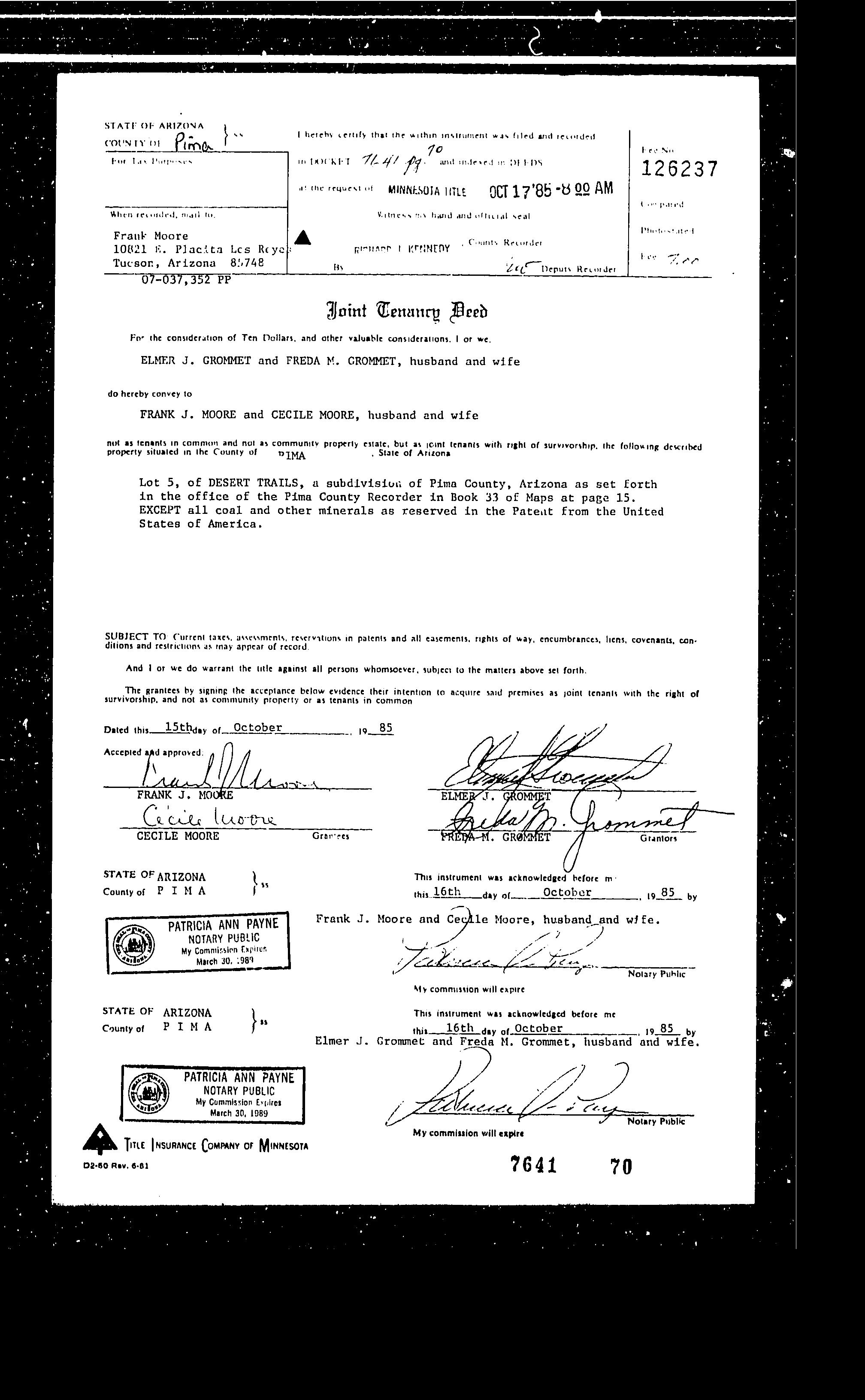 LEGAL: DESERT TRAILS LOT 5