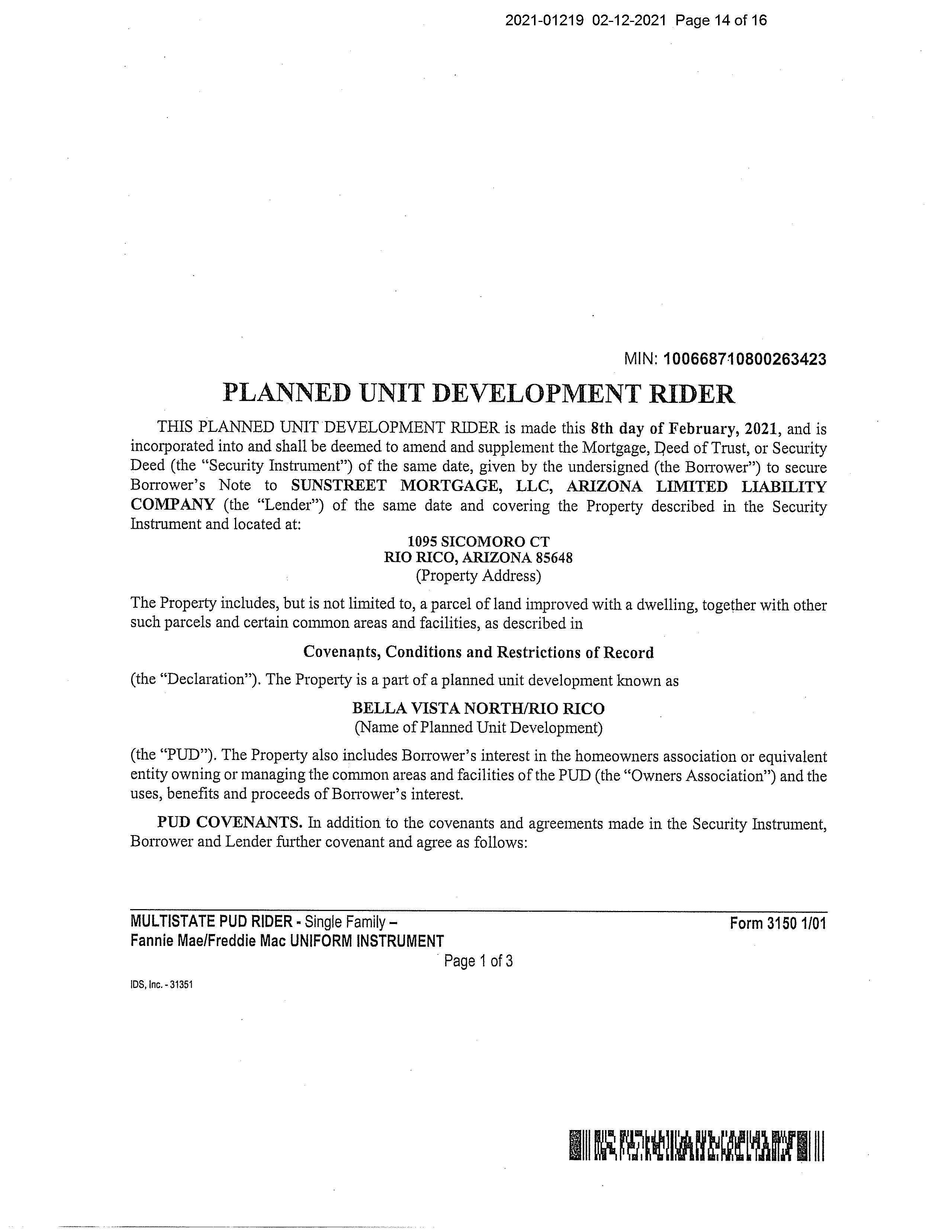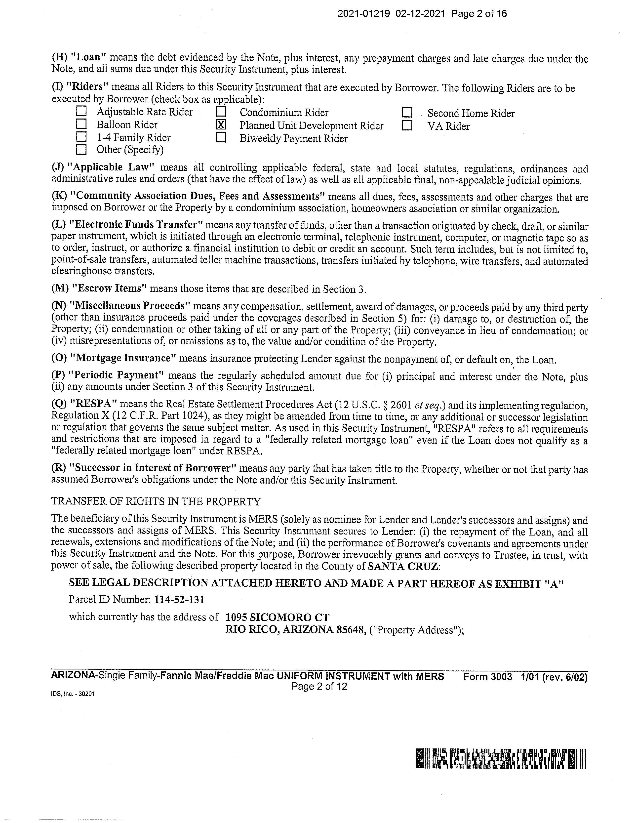 SITUS: 1095 SICOMORO CT RIO RICO 85648-1696