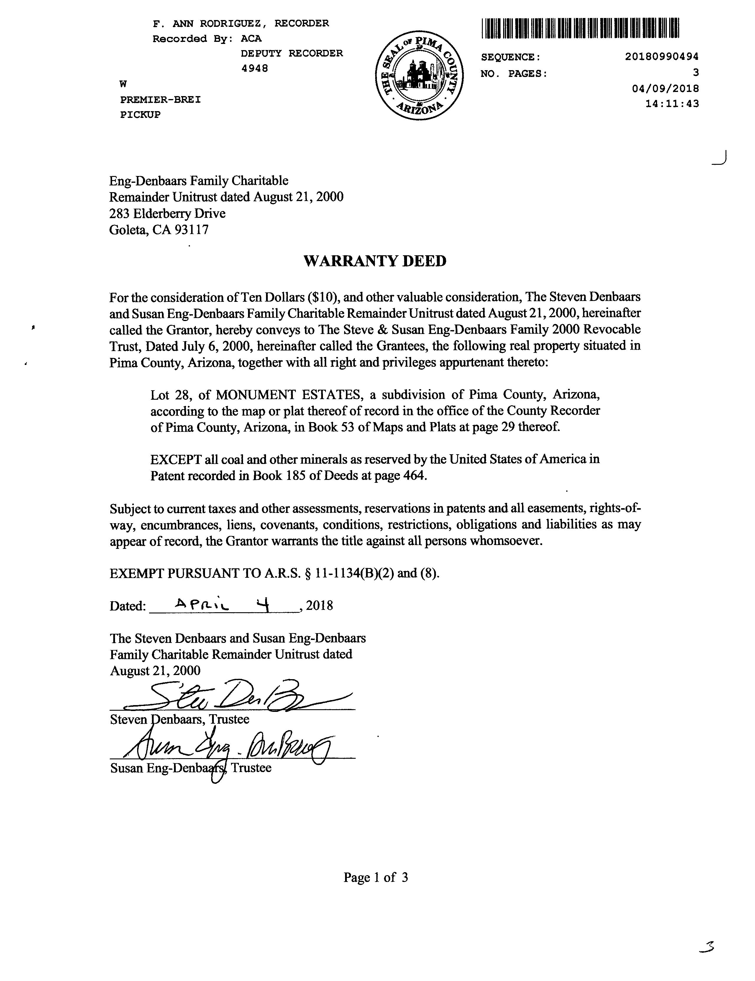 Recording/Sale Date : 04/09/2018 / 04/04/2018 Deed Type : Warranty Deed