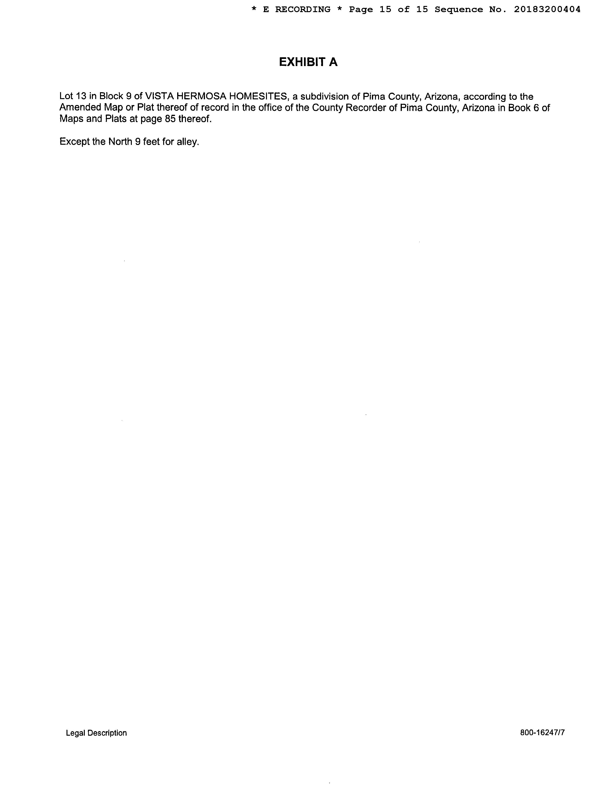 LEGAL: VISTA HERMOSA HOMESITES LOT 13 EXC N9' ALLEY BLK 9