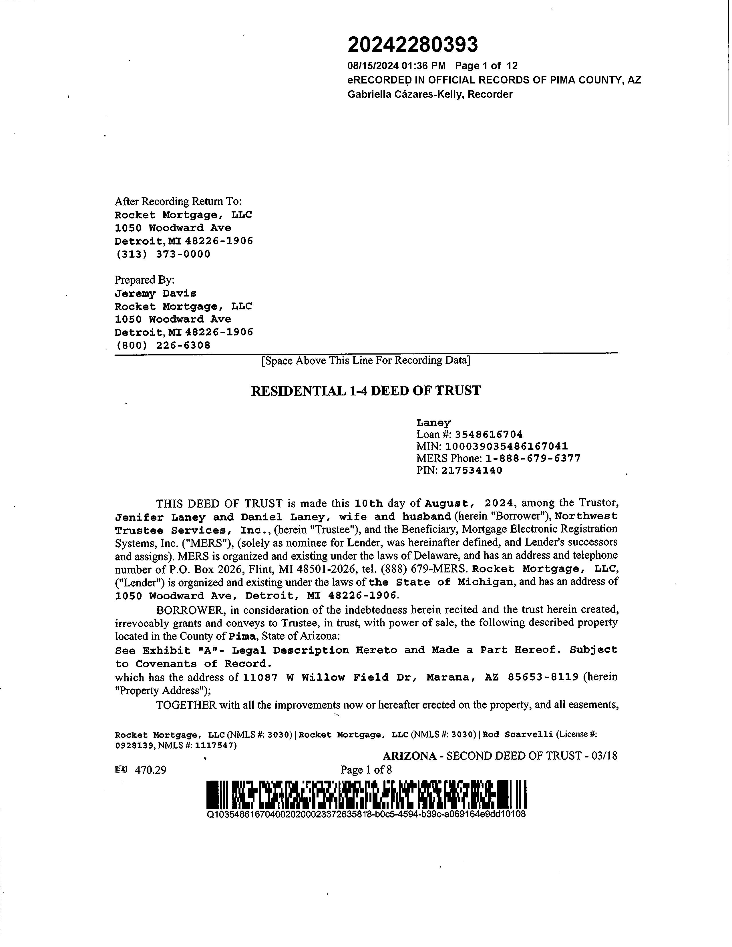 Mailing Address : 11087 W Willow Field Dr, Marana AZ 85653-8119 R003