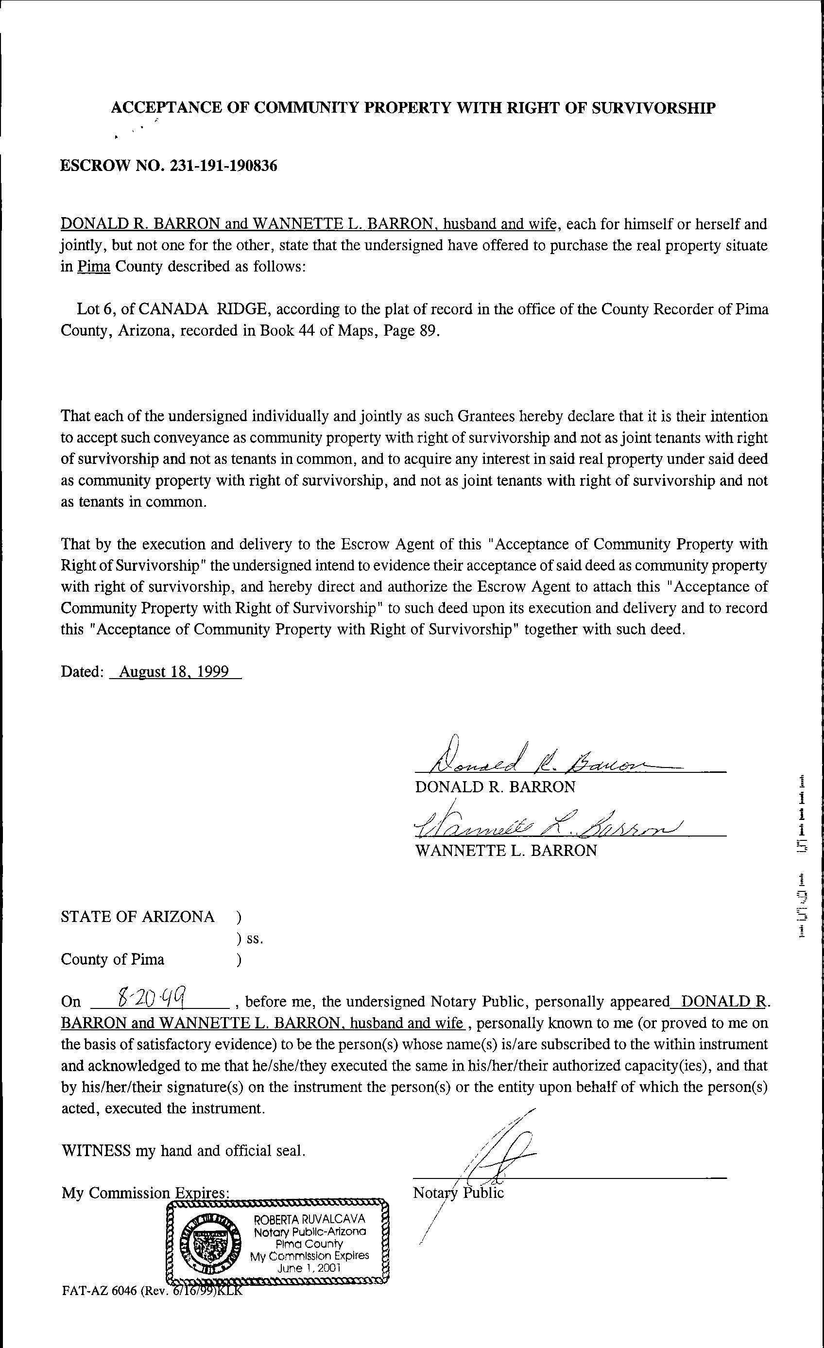 MAIL: ATTN: DONALD R & WANNETTE L BARRON TR 11092 N EAGLE CREST DR TUCSON AZ 85737-8524