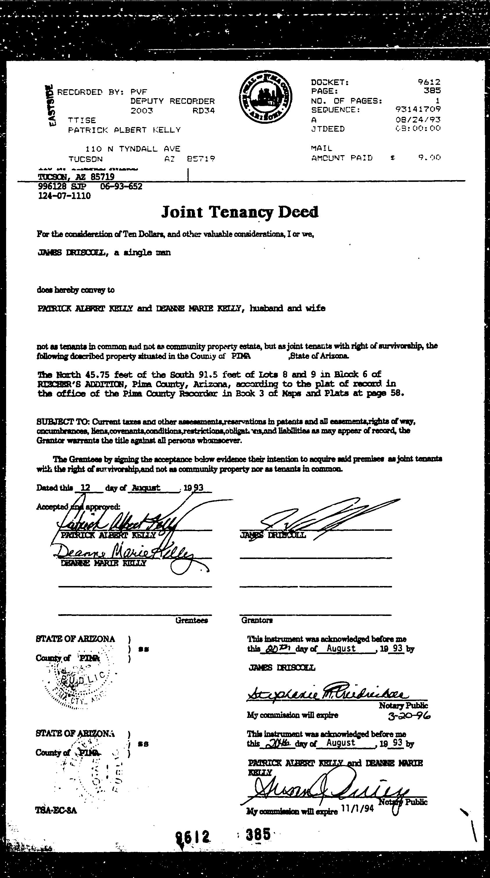 Mailing Address : 110 N Tyndall Ave, Tucson AZ 85719-5744 C035